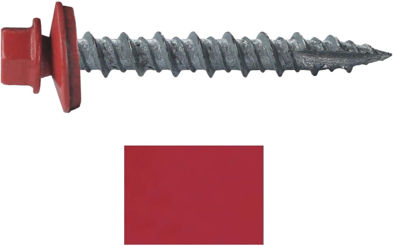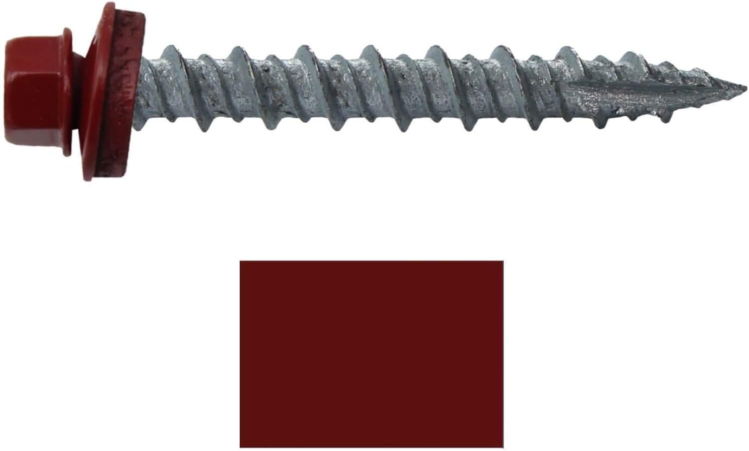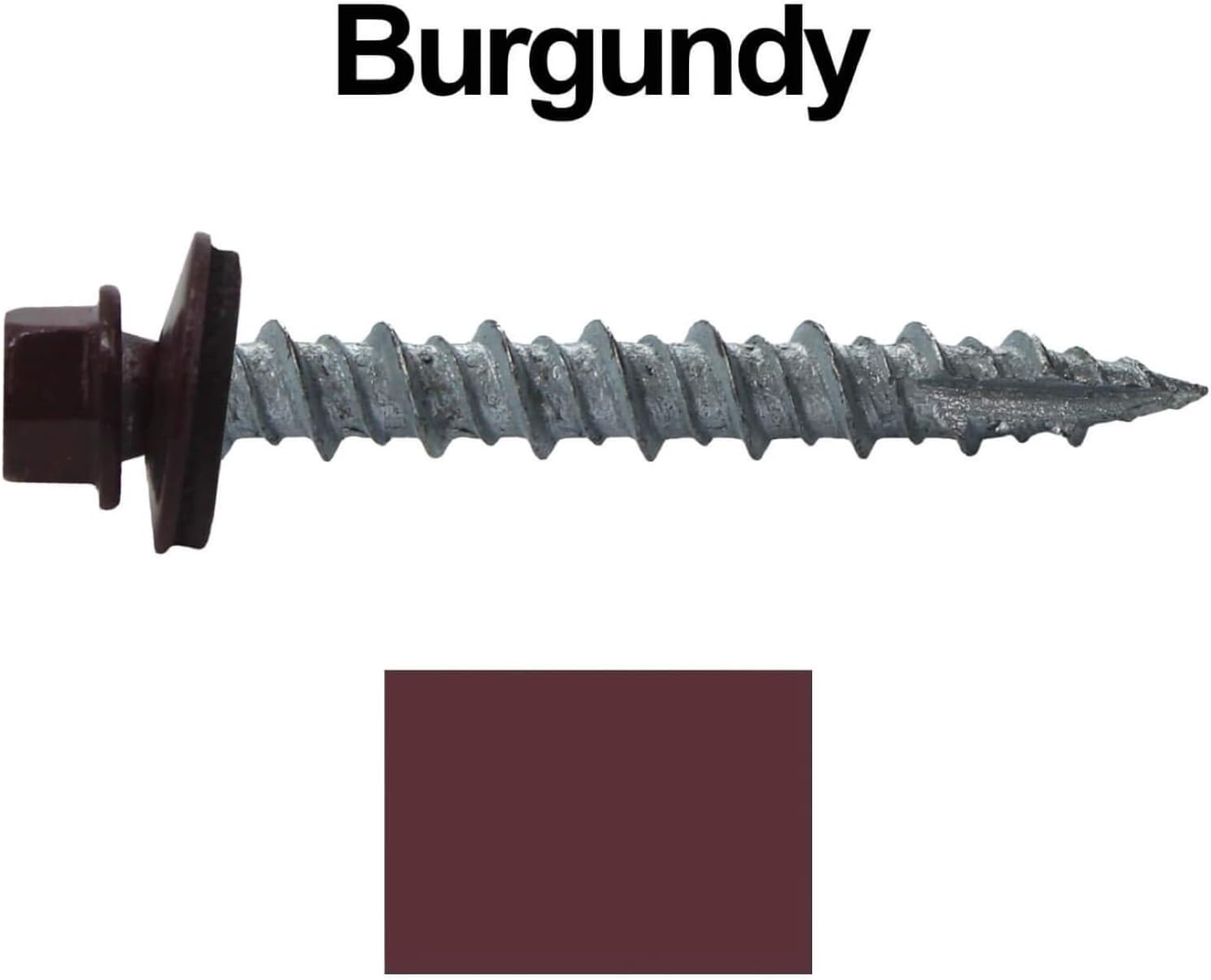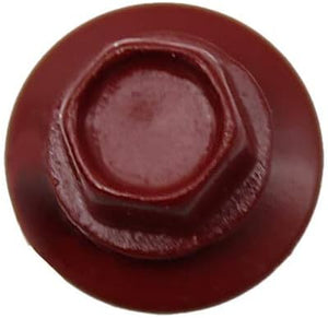 - BURGUNDY coated roof screw head is painted to closely match many brands of metal roofing.