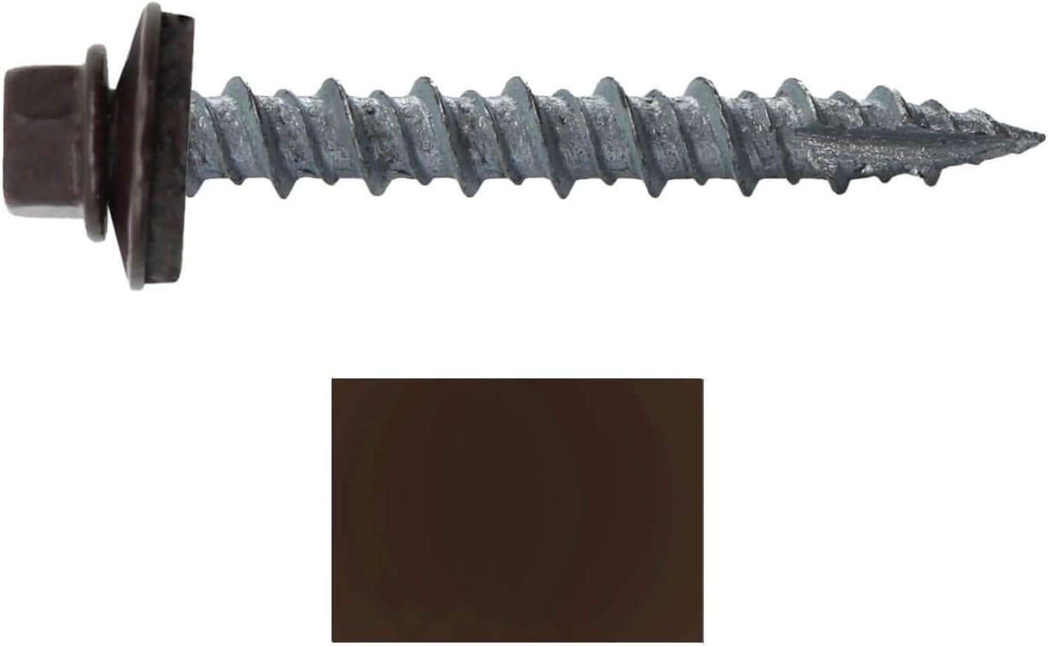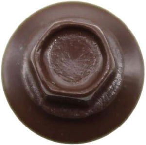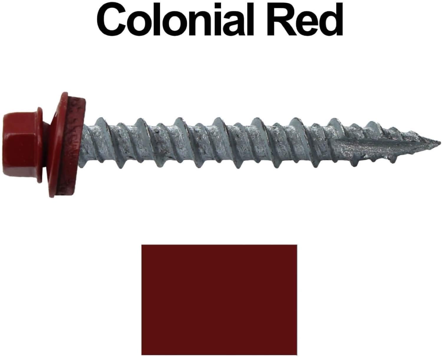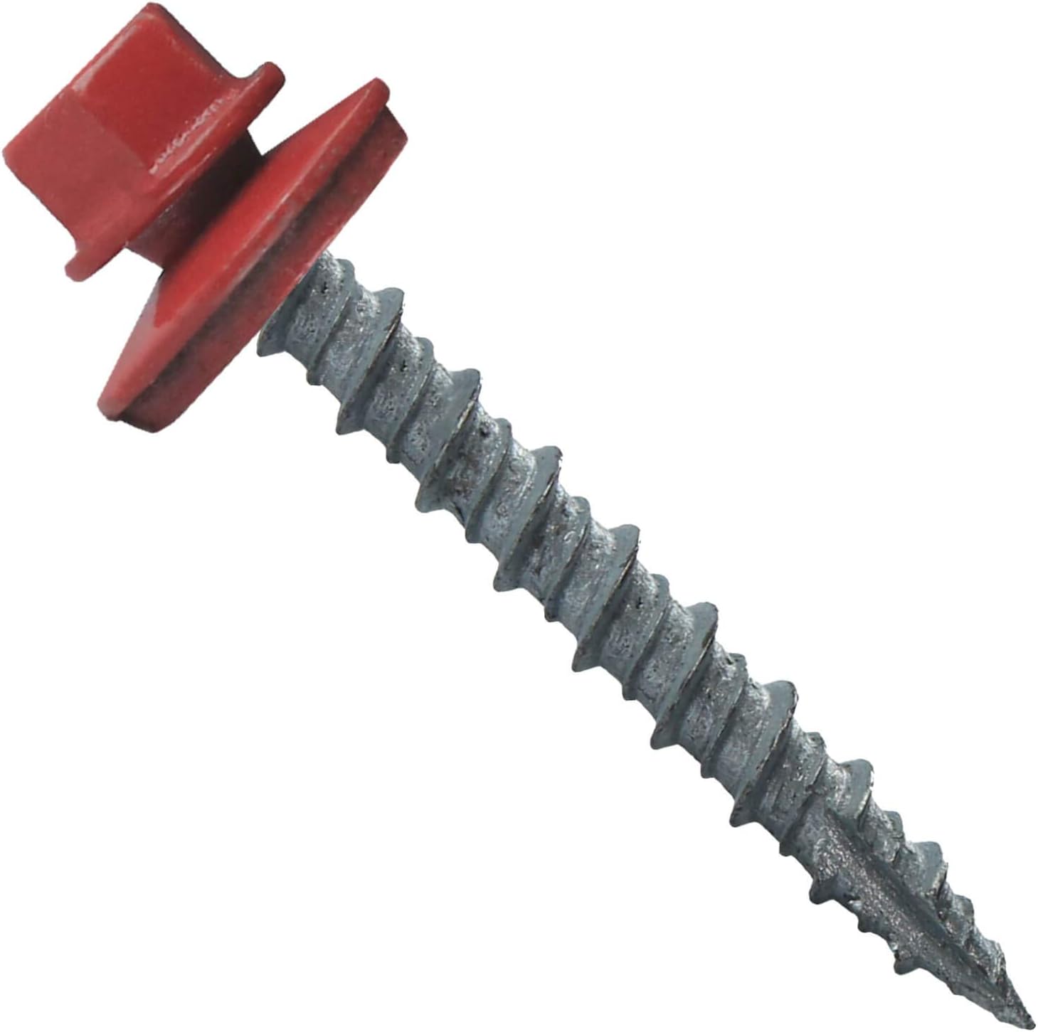 - BURGUNDY coated roof screw head is painted to closely match many brands of metal roofing.