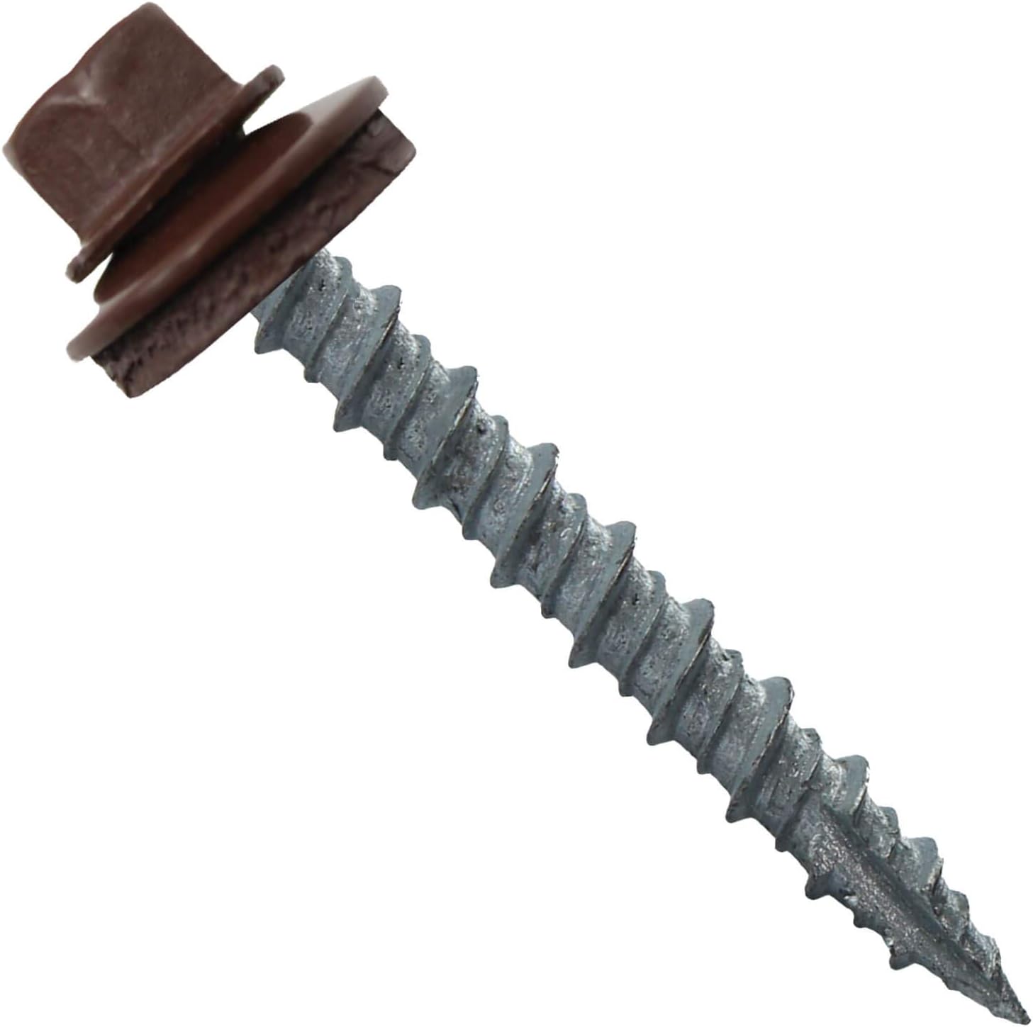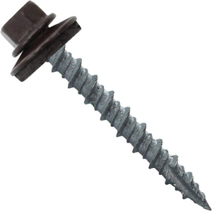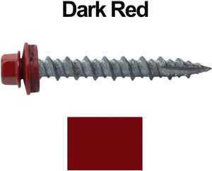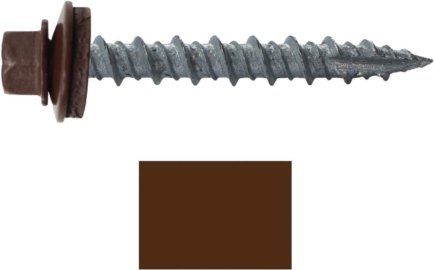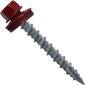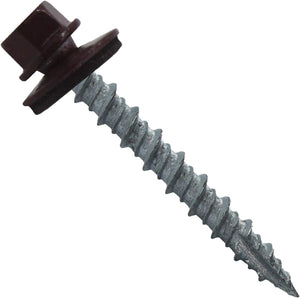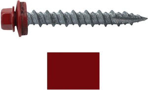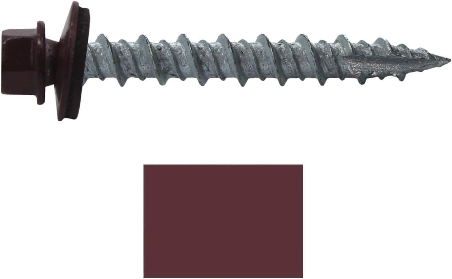 #10 BURGUNDY x 1 1/2 Inch Long Sheet Metal Roofing Screws (1000 Count) with hex washer head.
