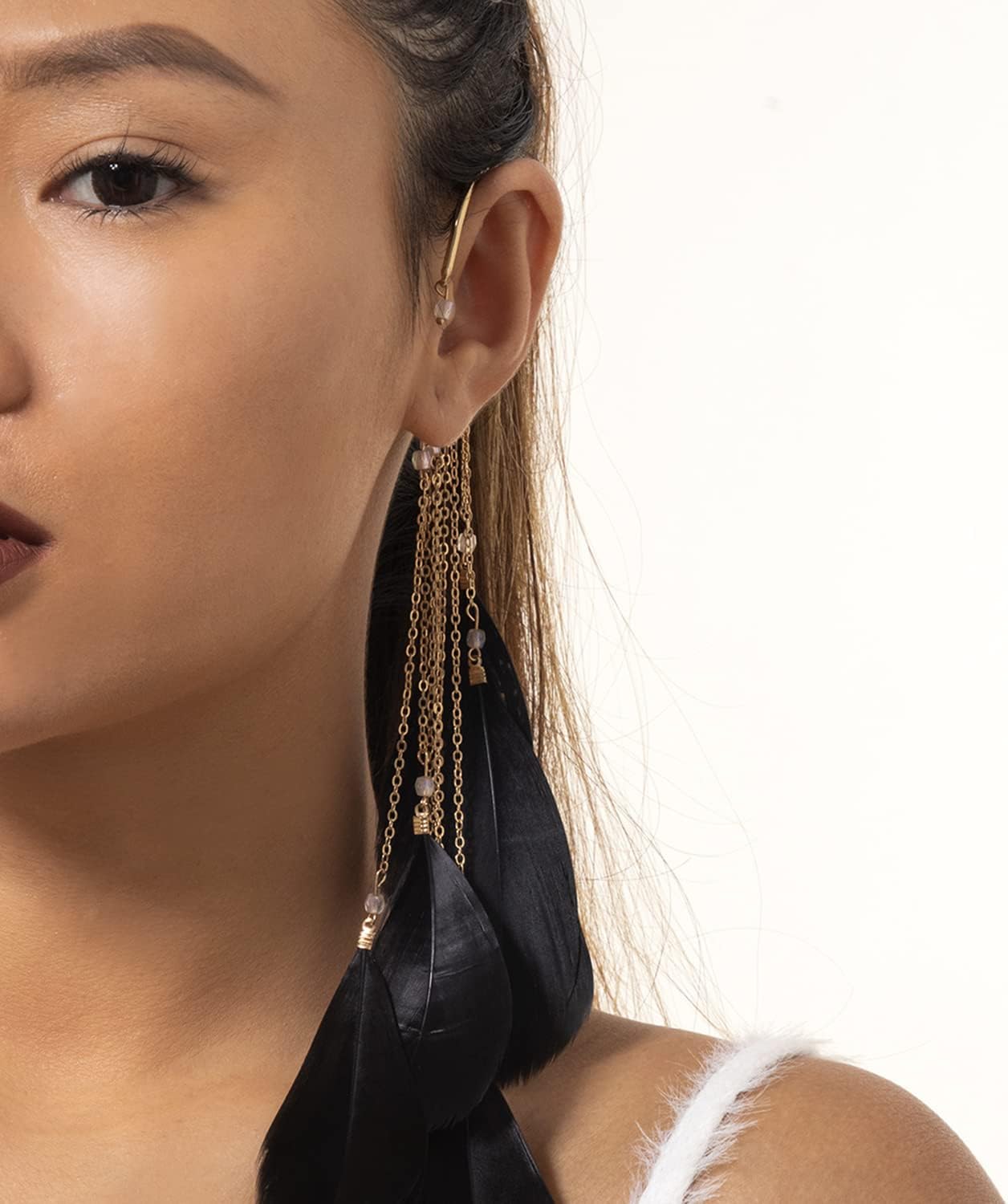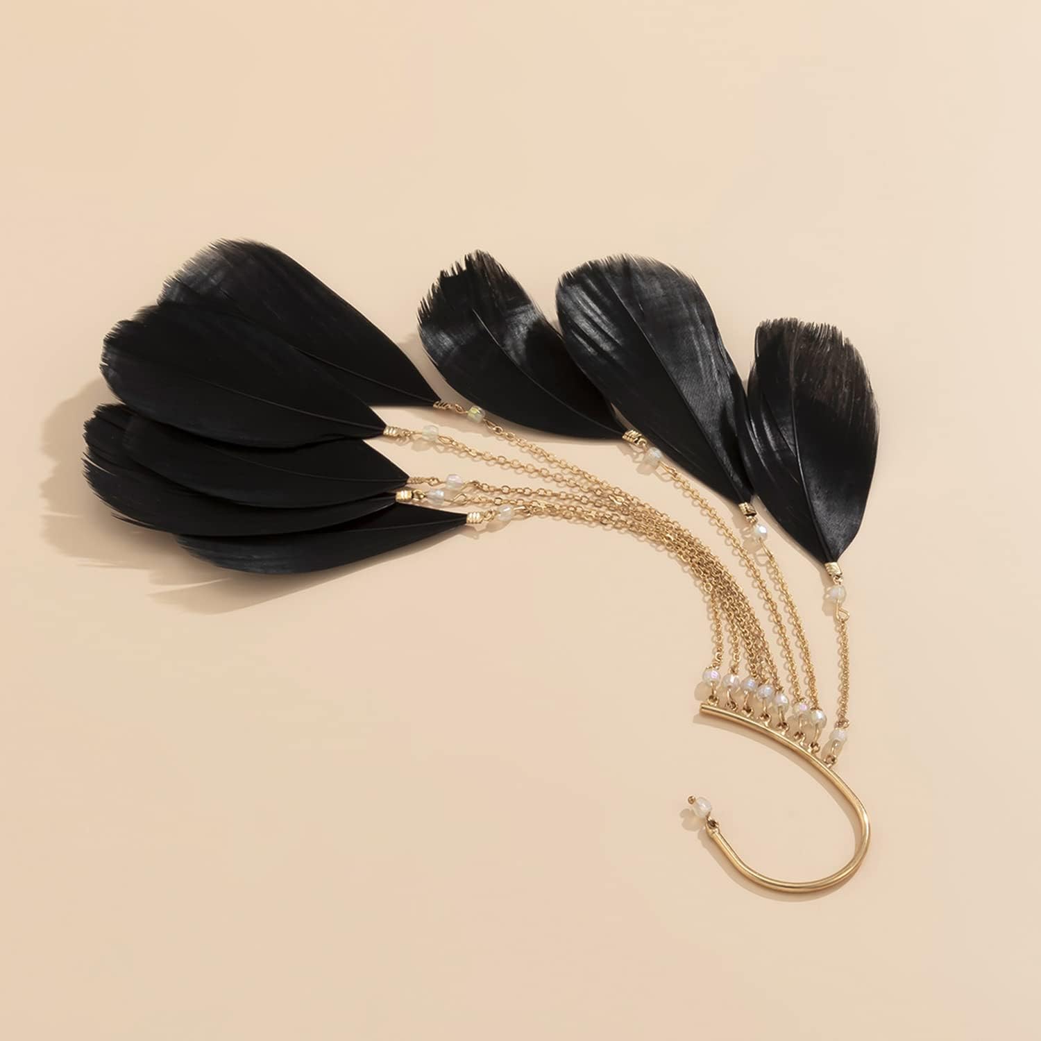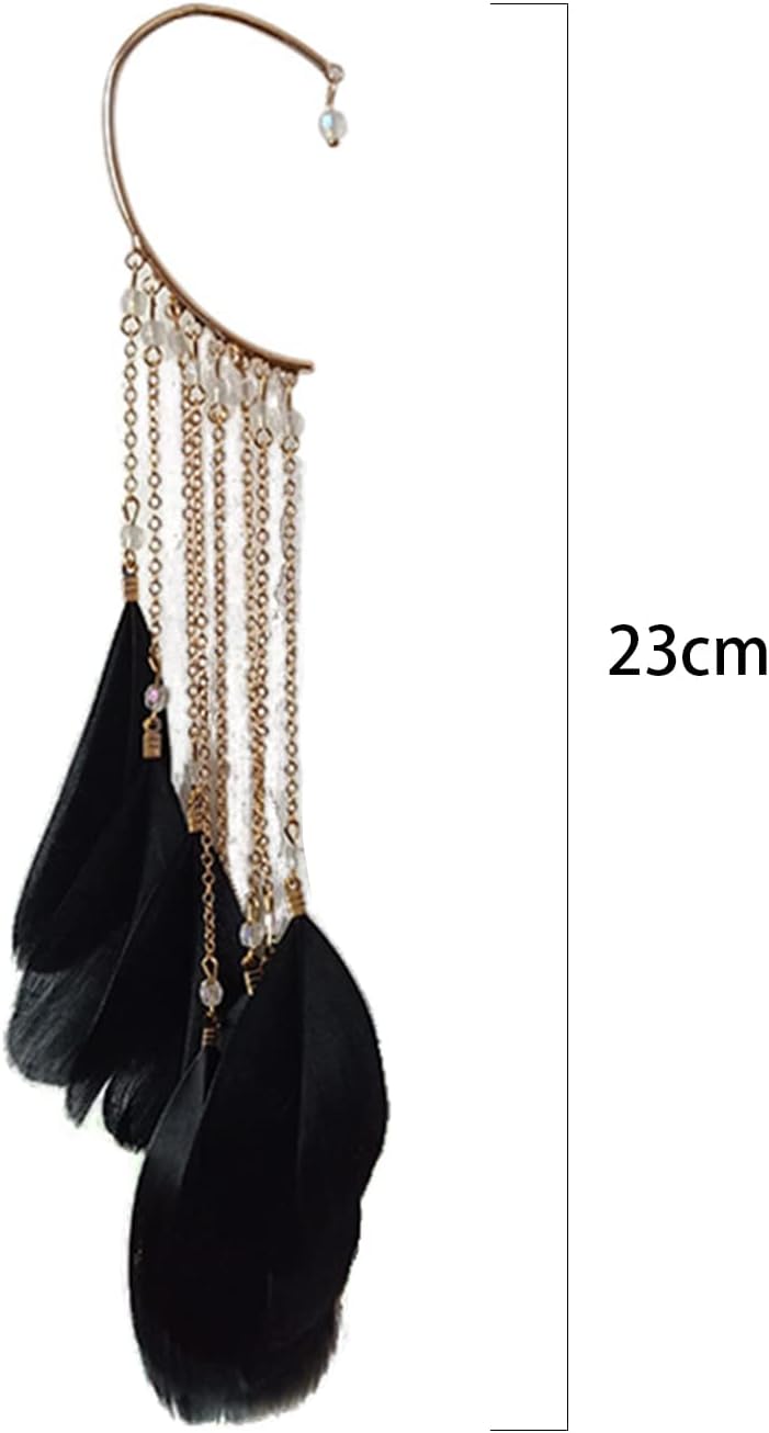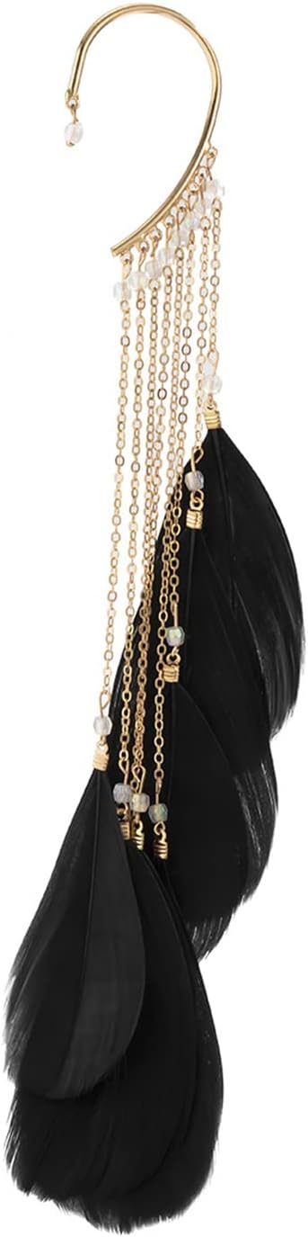 1Pcs Black Feather Ear Cuff Earrings Feather Fringe Earrings Long Tassel Earrings Feather Earrings Feather Dangle Drop Earrings Ear Crawler Climber Non Piercing Ear Wrap Cuffs Earrings for Women Girls
