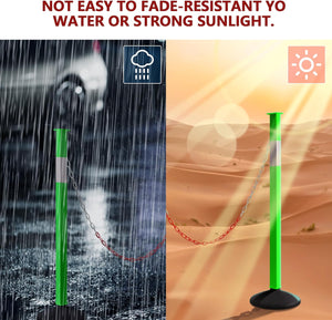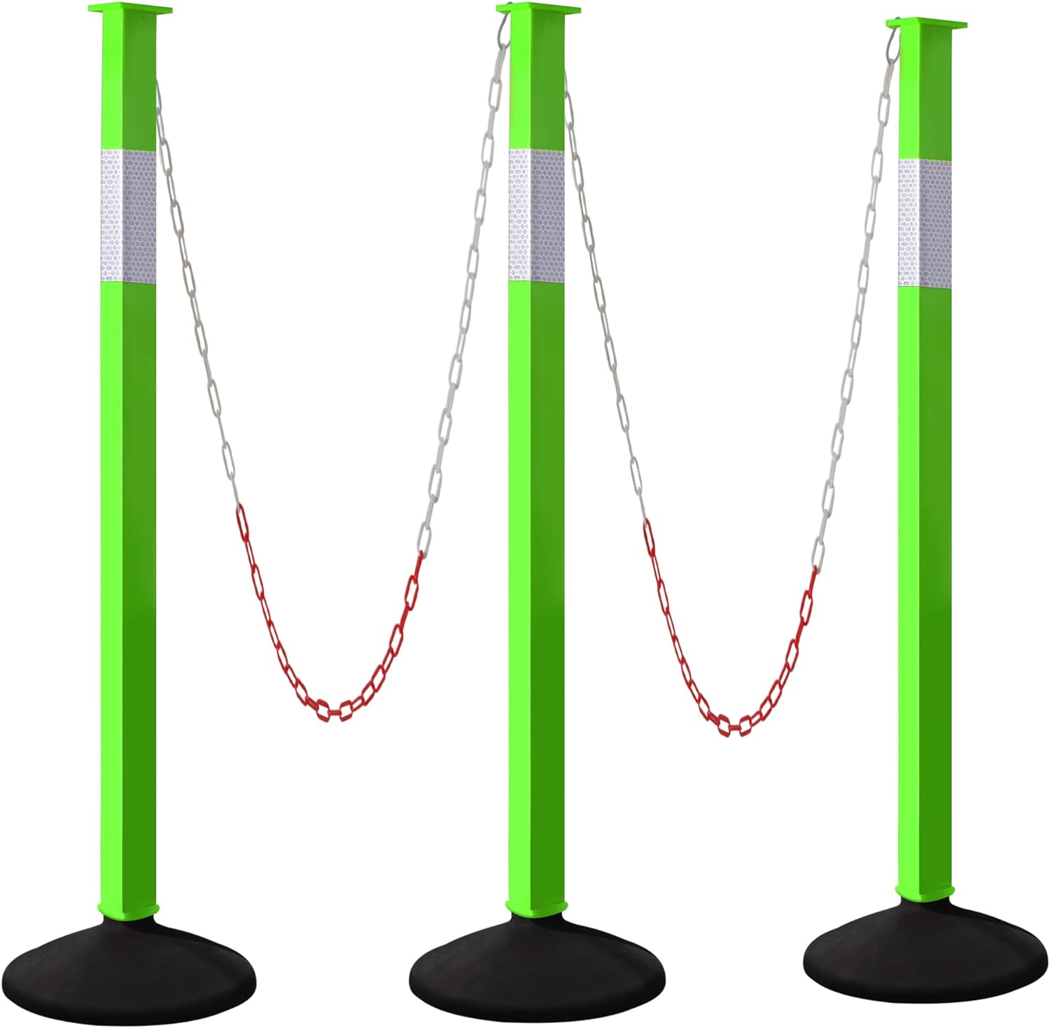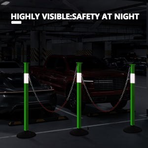 Green Traffic Delineator Post Cones with Rubber Base & Reflective Collars[3 Pack], Parking Safety Delineator Cones with 4 FT Plastic Chains -Adjustable Orange Barrier Pole for Driveway & Construction Lot.