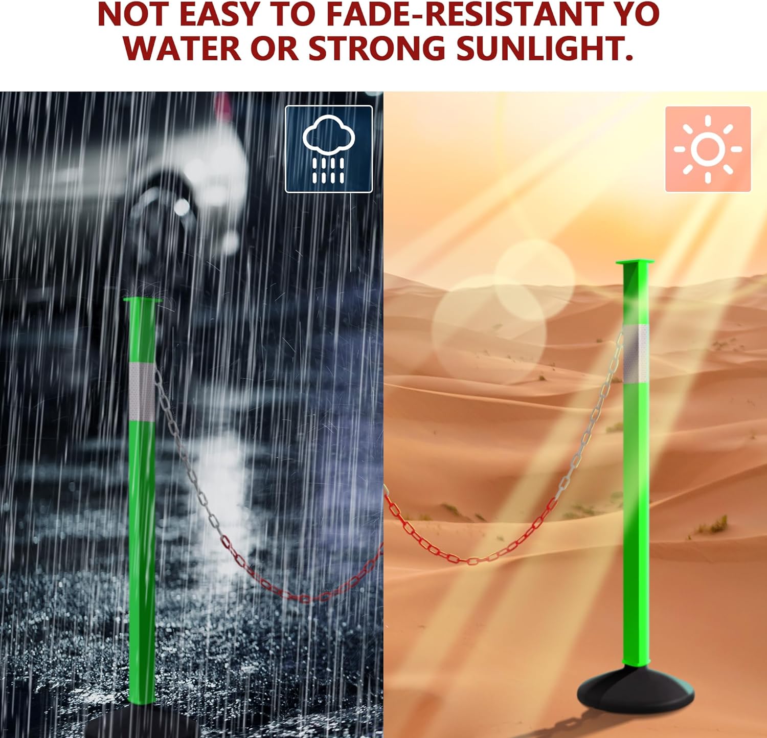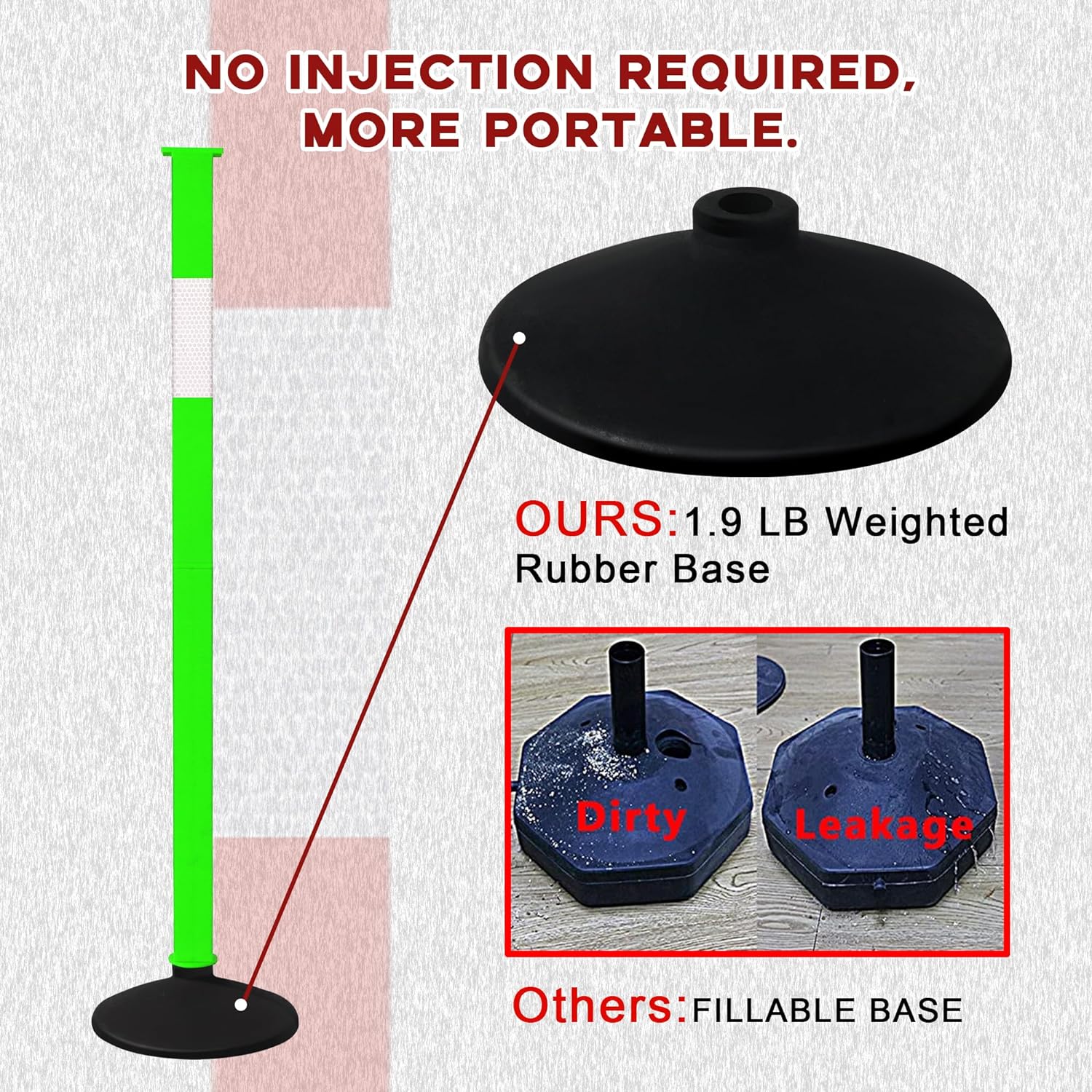 - The Adjustable Green Traffic Delineator Post cones with a 1.9lb weighted base that provides stability . Unlike other posts, this one does not require water or sand filling to stay put, making it easy to move around and set up in different locations.