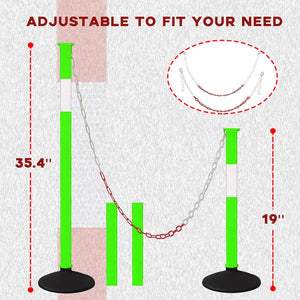 [3 Pack] Adjustable Traffic Delineator Post Cones with Rubber Weighted Base & Reflective Collars, Green Parking Safety Cones with 4 FT Plastic Chains - Driveway & Parking Barrier