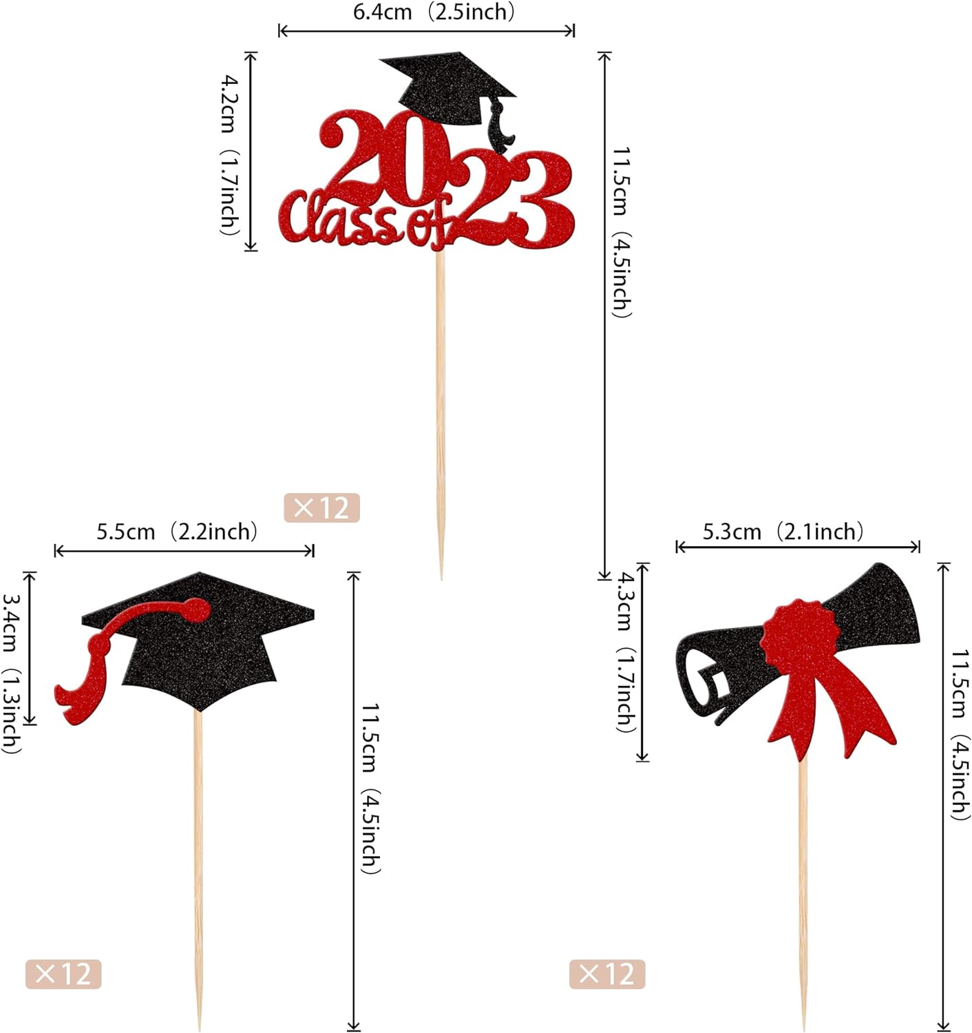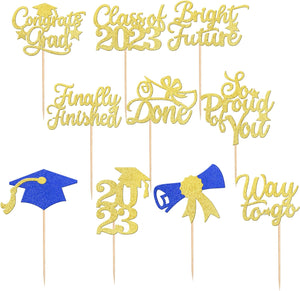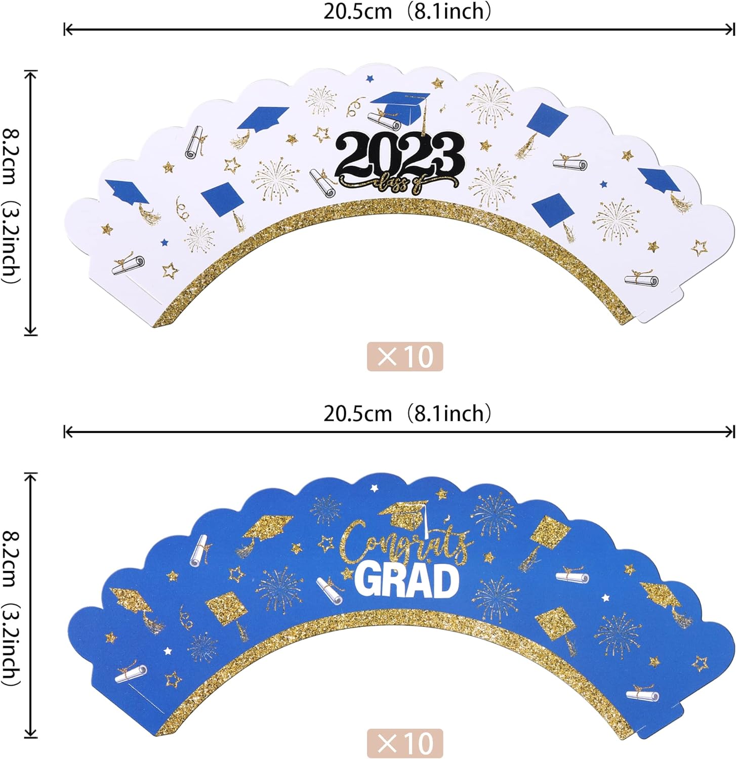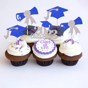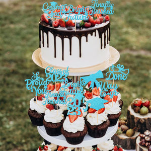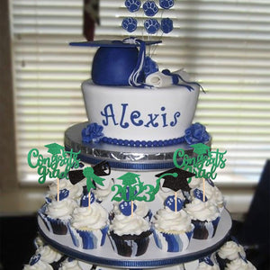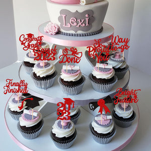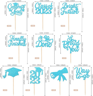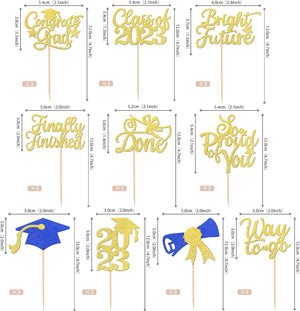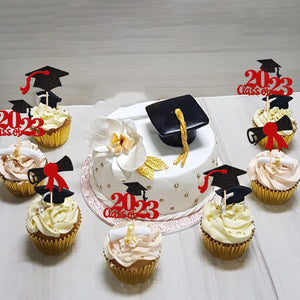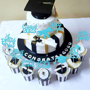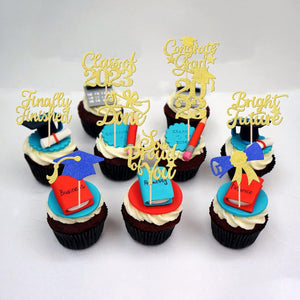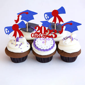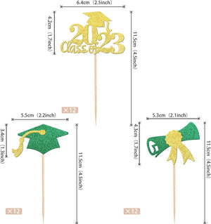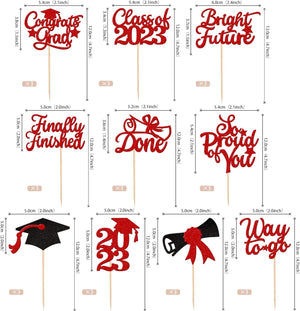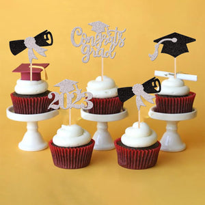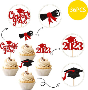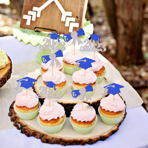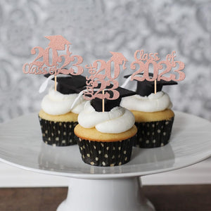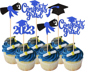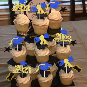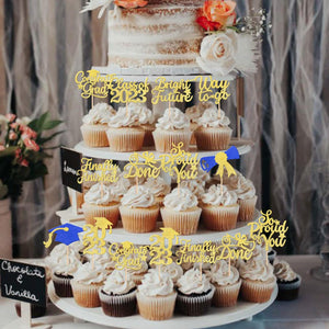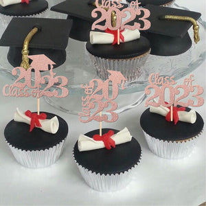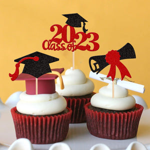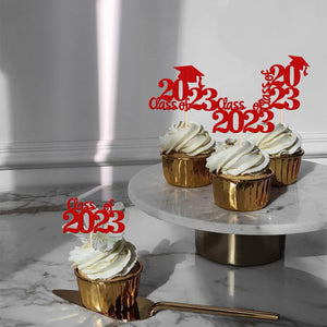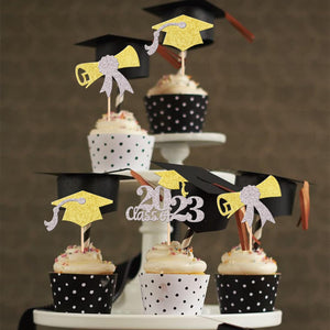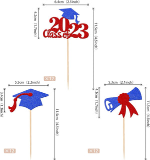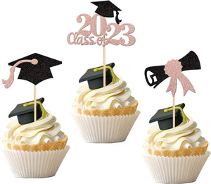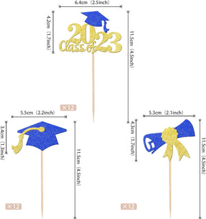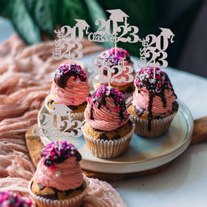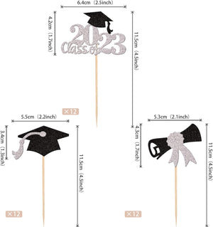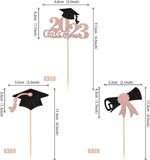 Perfect for 2023 graduation theme party cupcake decorations, such as kindergarten, primary, junior, senior high school, college, Master or Ph.D. graduation.