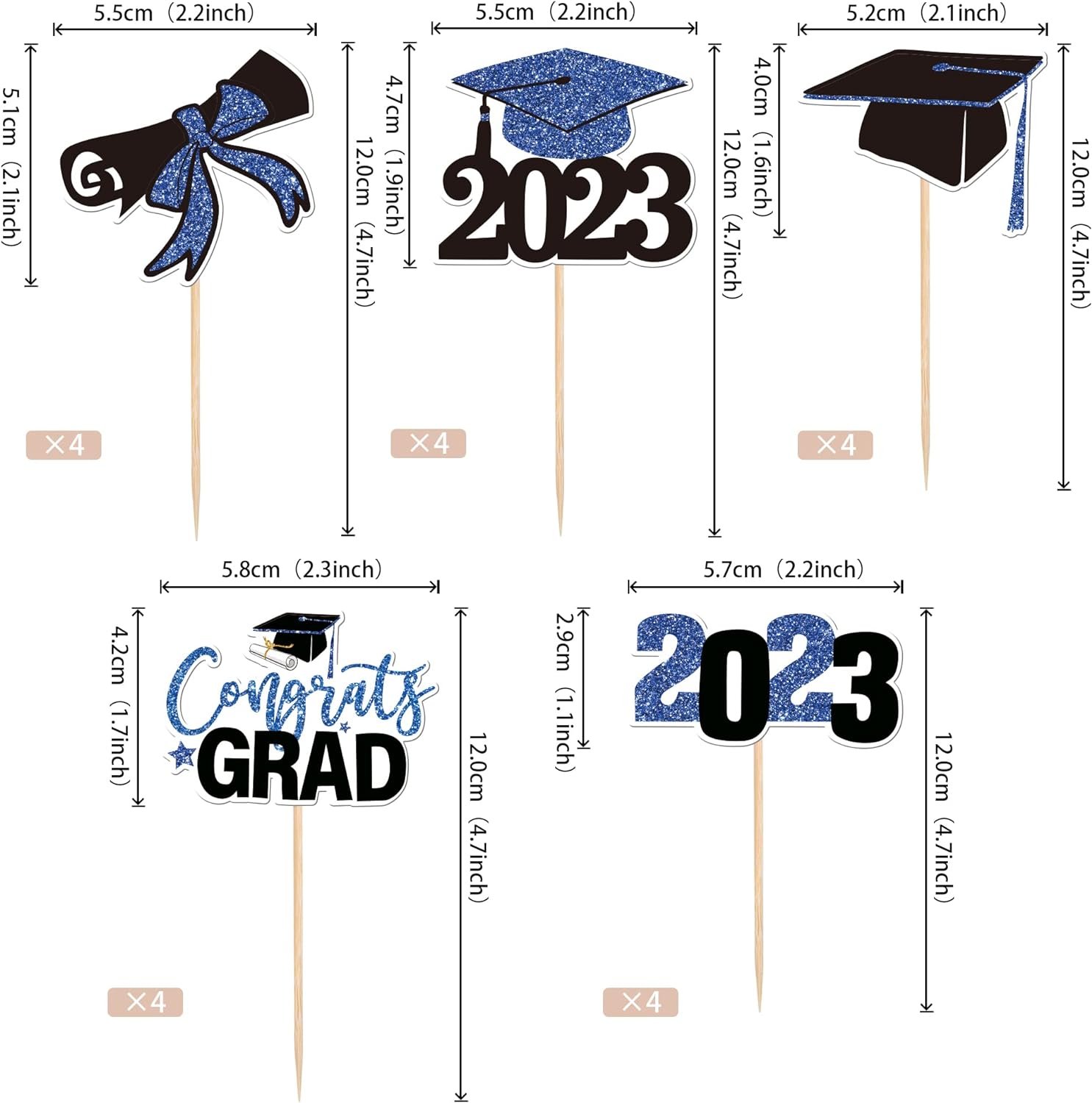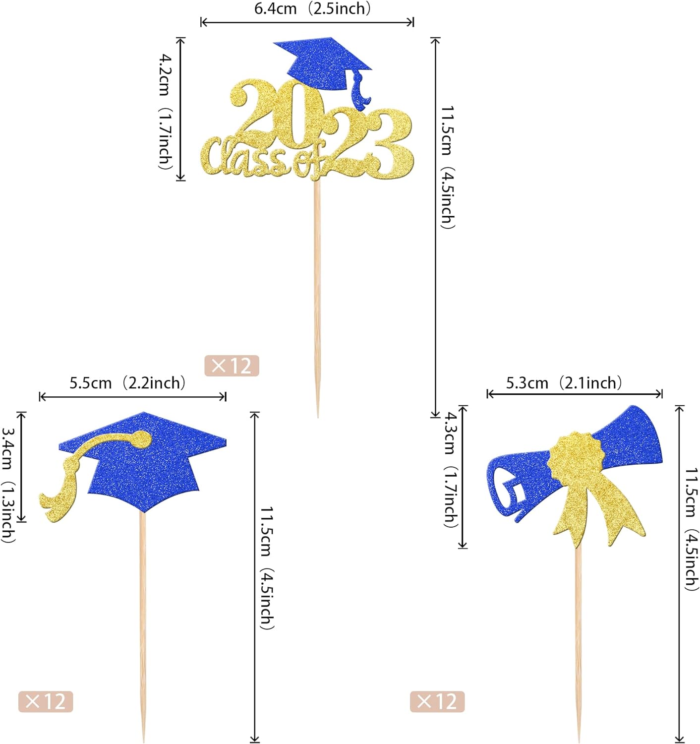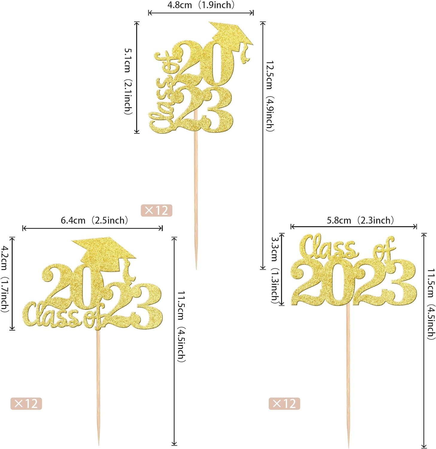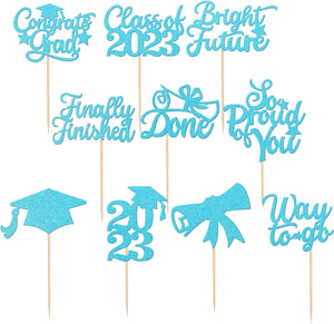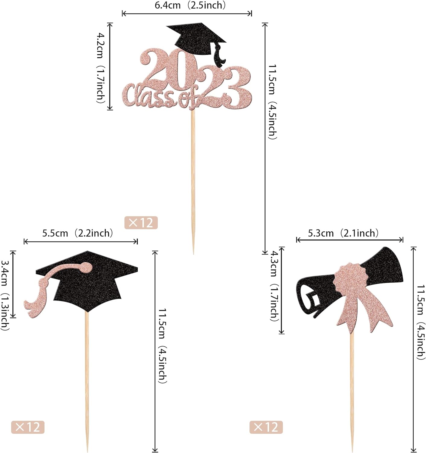 Perfect for 2023 graduation theme party cupcake decorations, such as kindergarten, primary, junior, senior high school, college, Master or Ph.D. graduation.