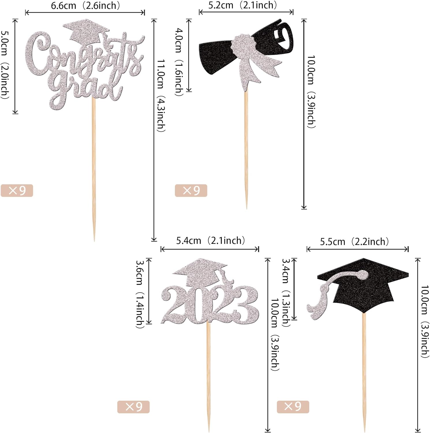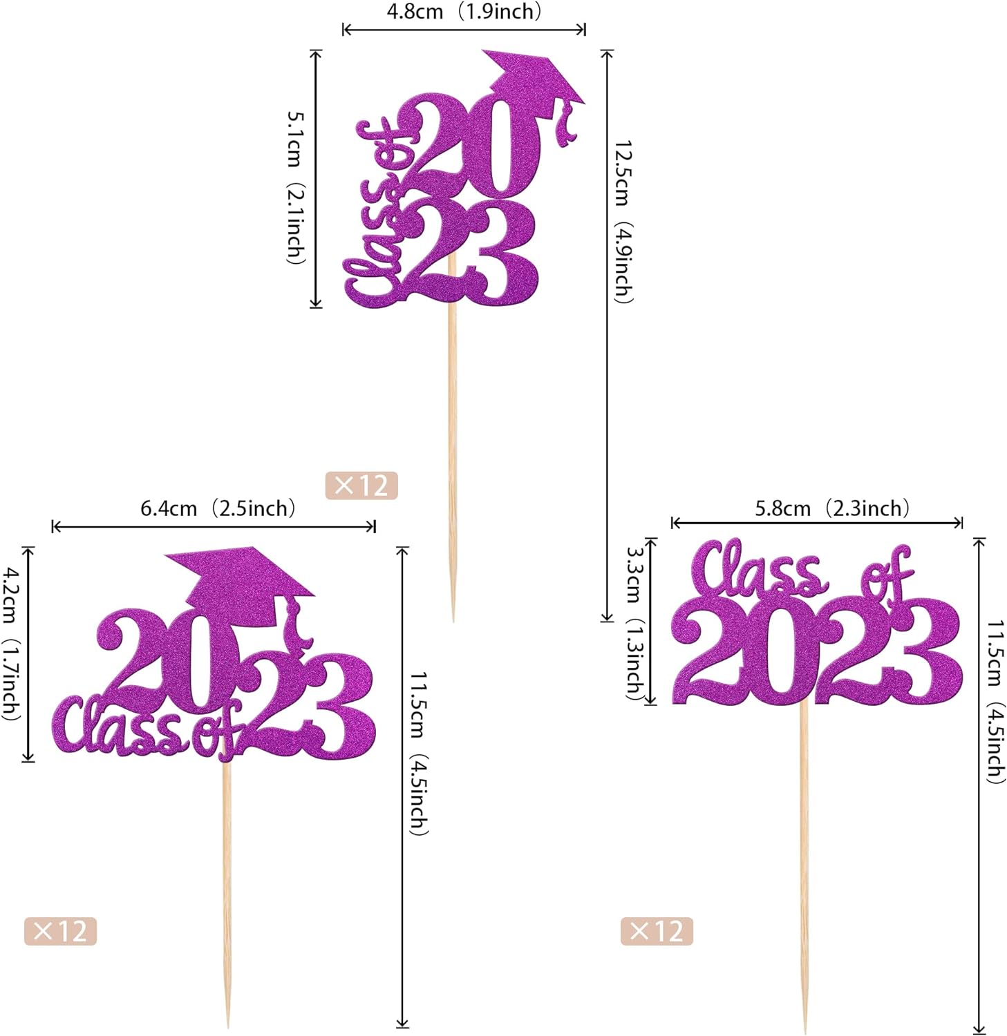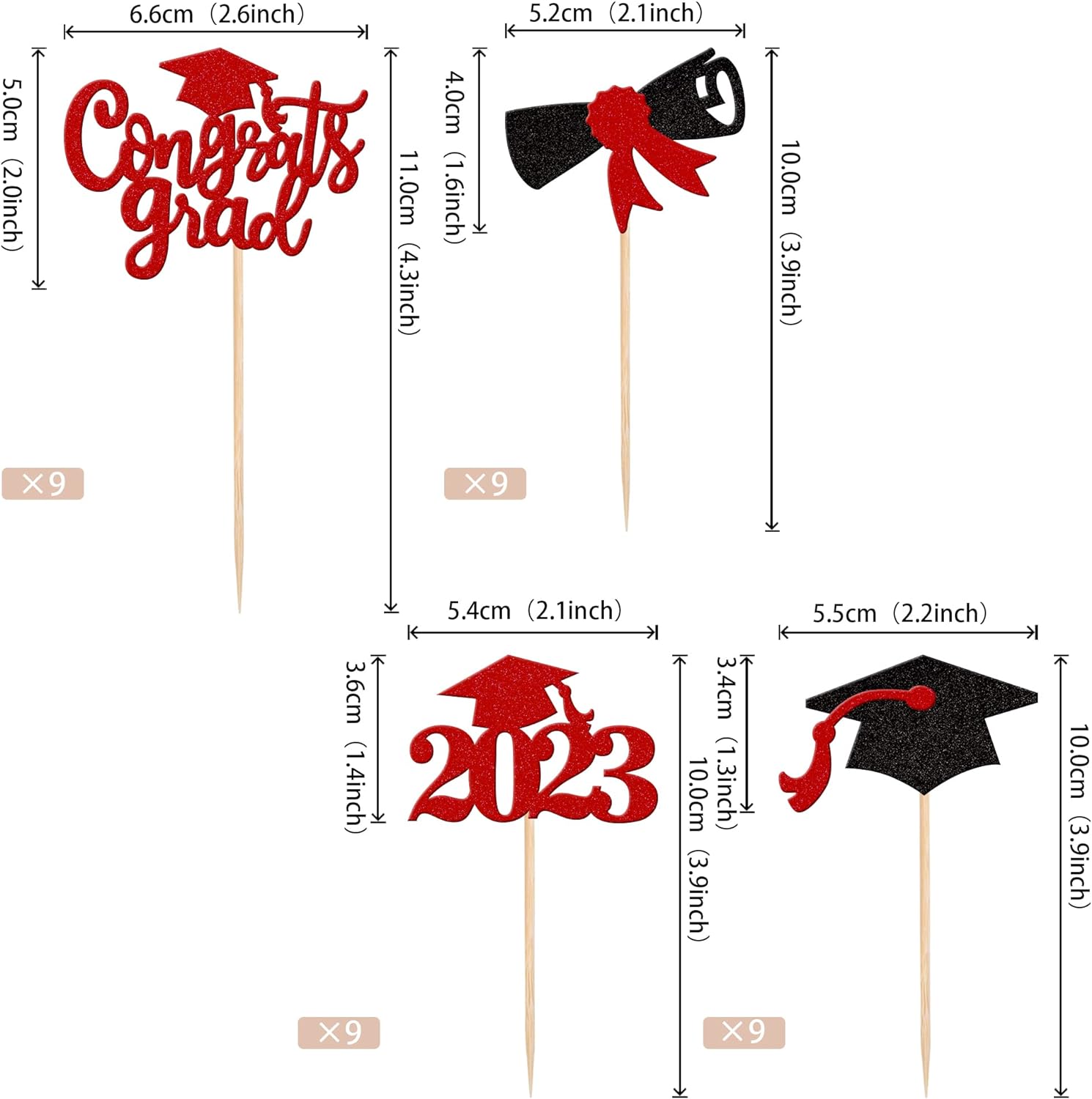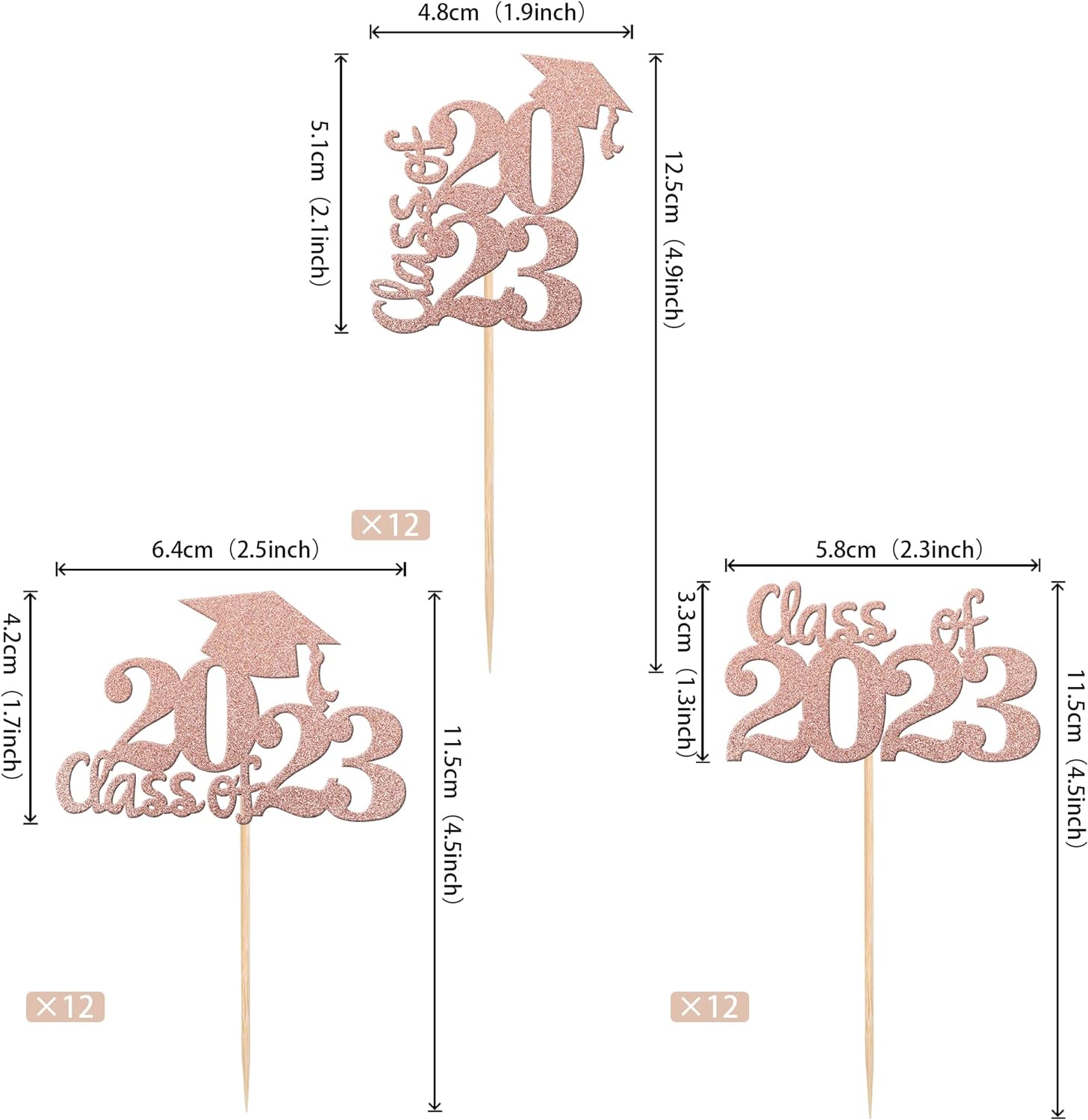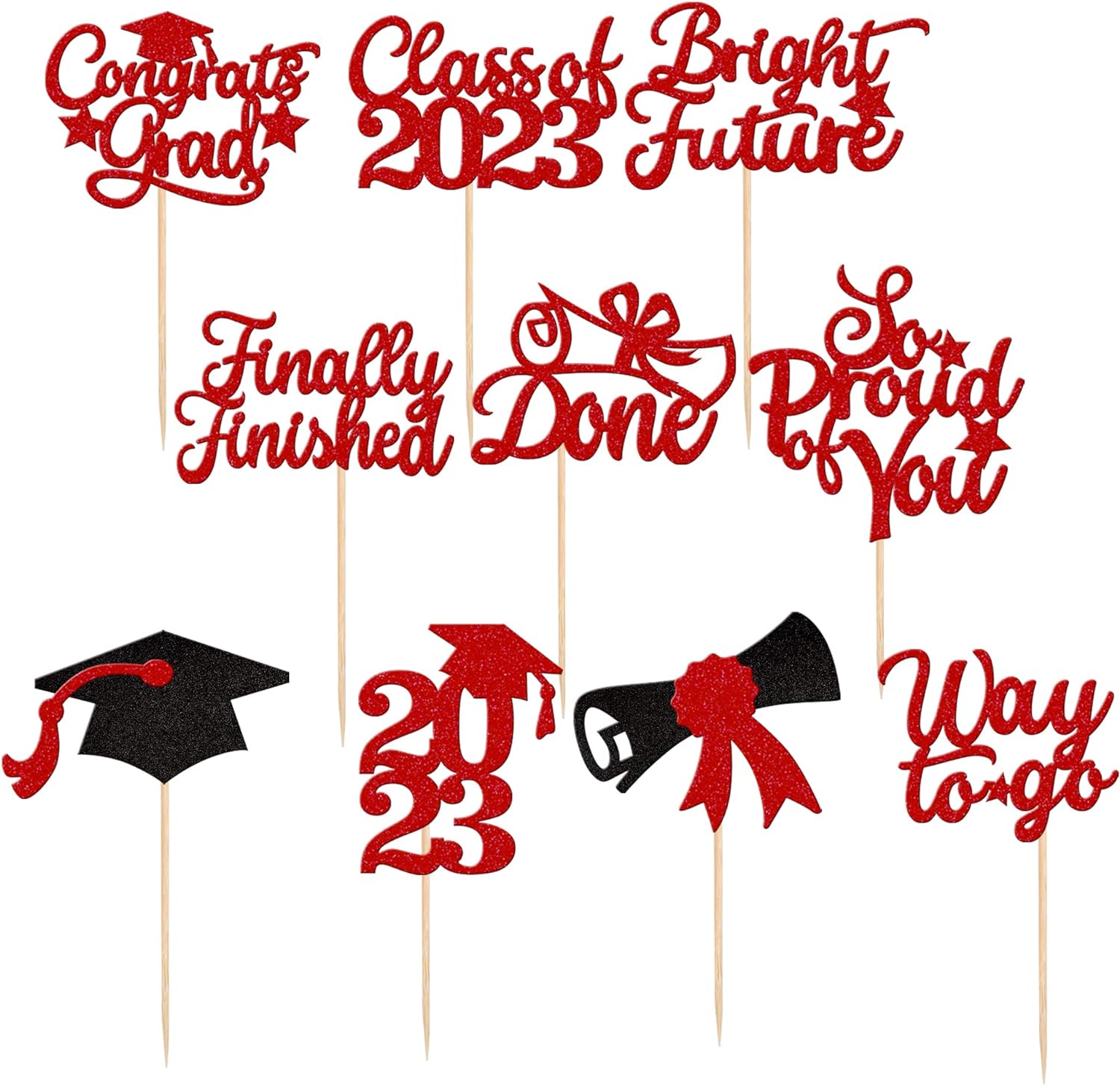 Perfect for 2023 graduation theme party cupcake decorations, such as kindergarten, primary, junior, senior high school, college, Master or Ph.D. graduation.