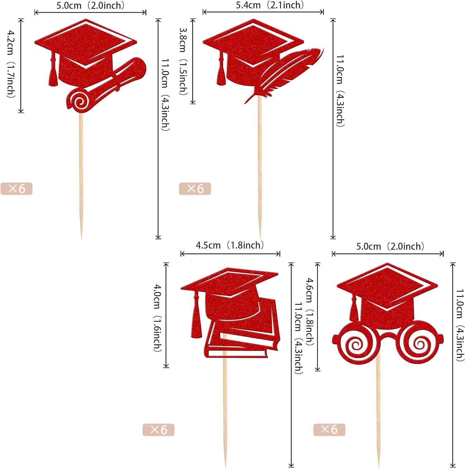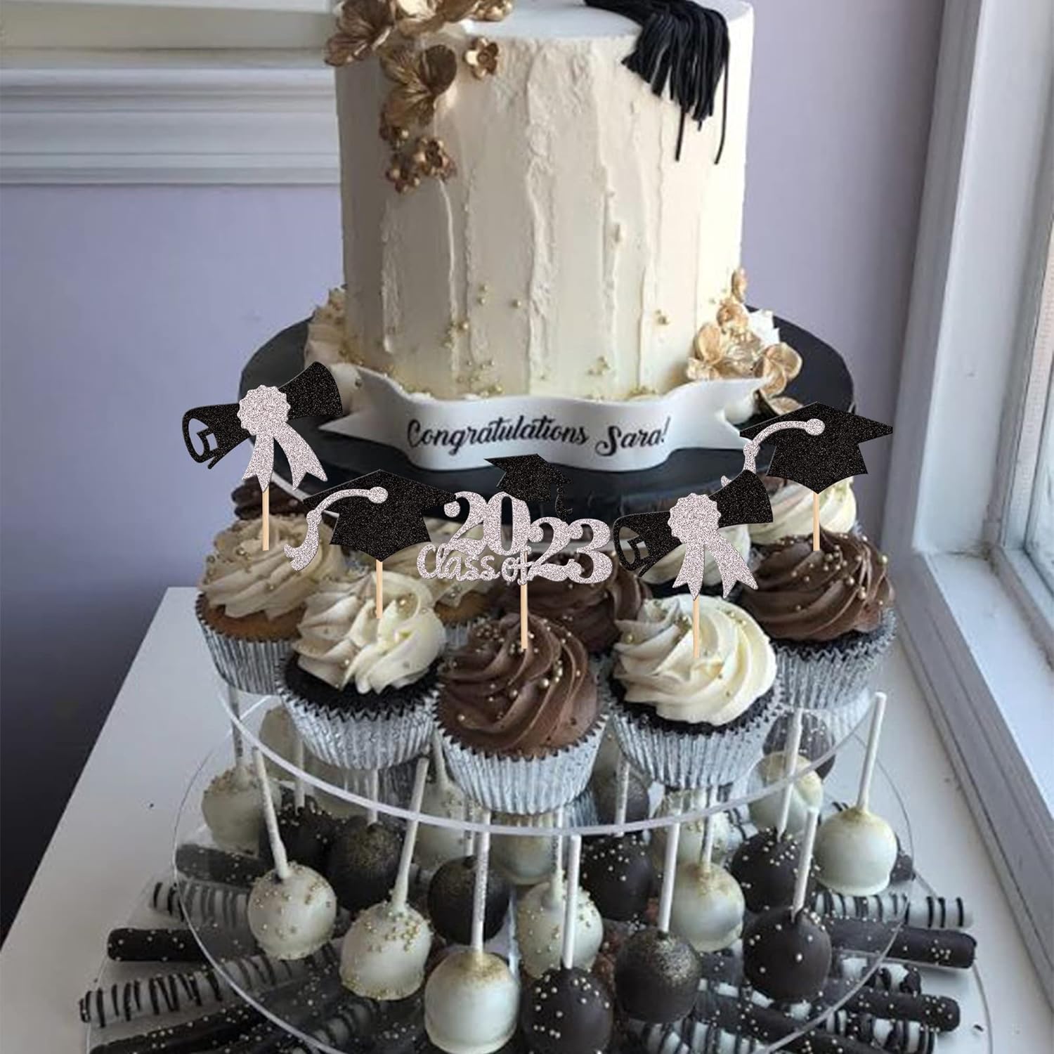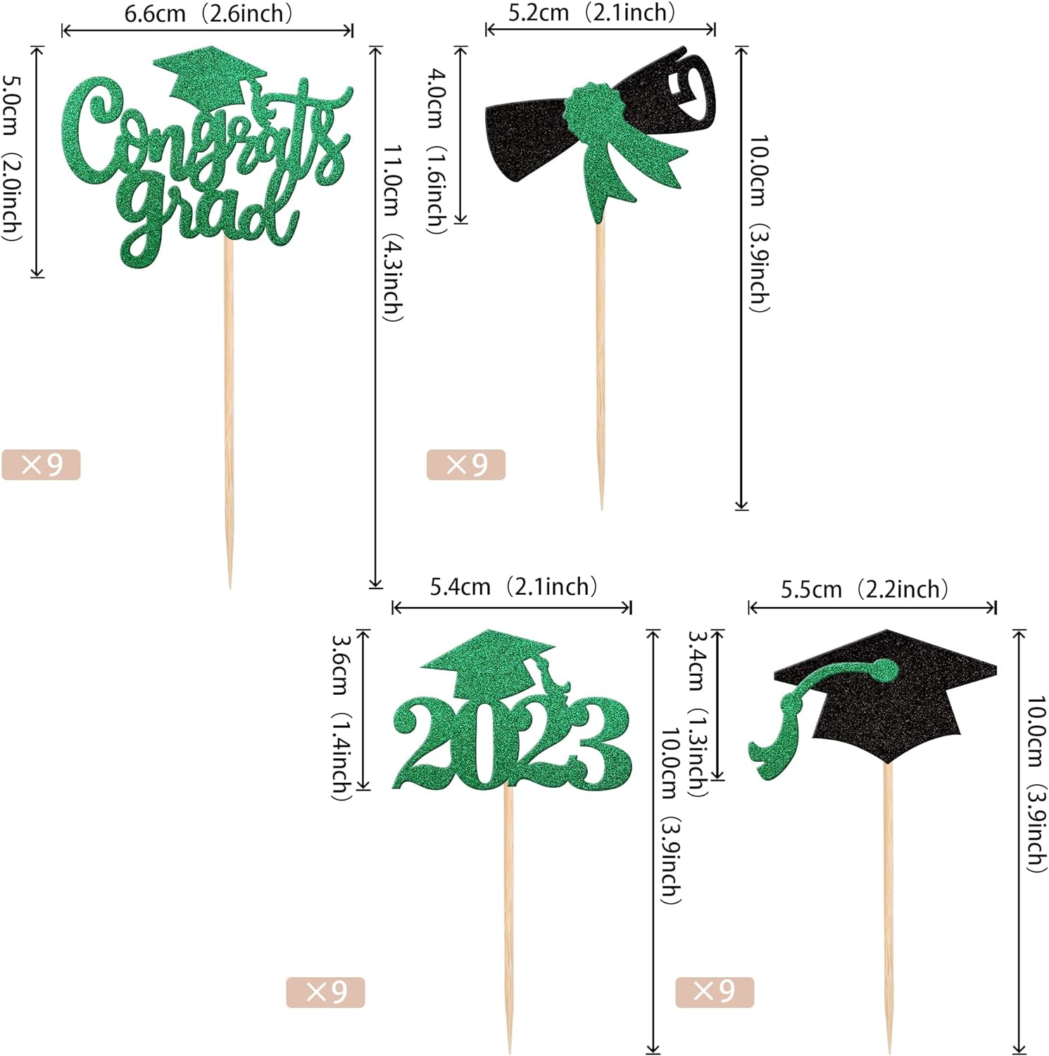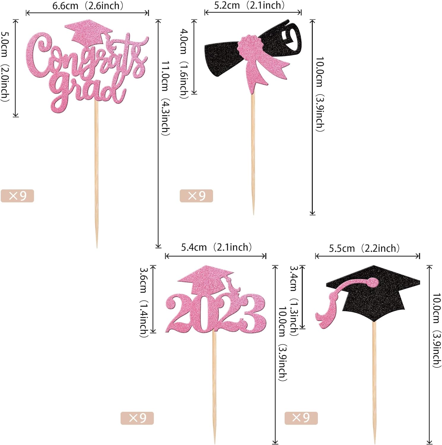 Perfect for 2023 graduation theme party cupcake decorations, such as kindergarten, primary, junior, senior high school, college, Master or Ph.D. graduation.