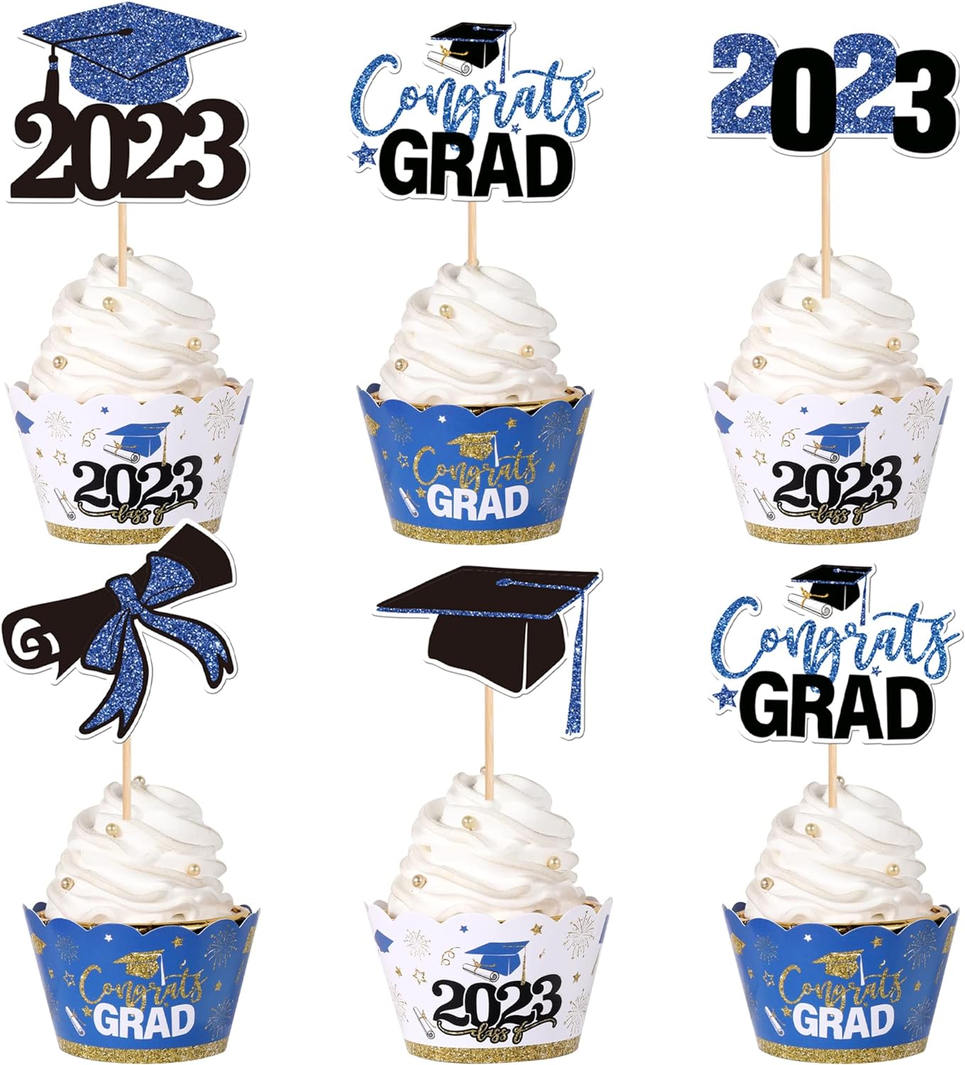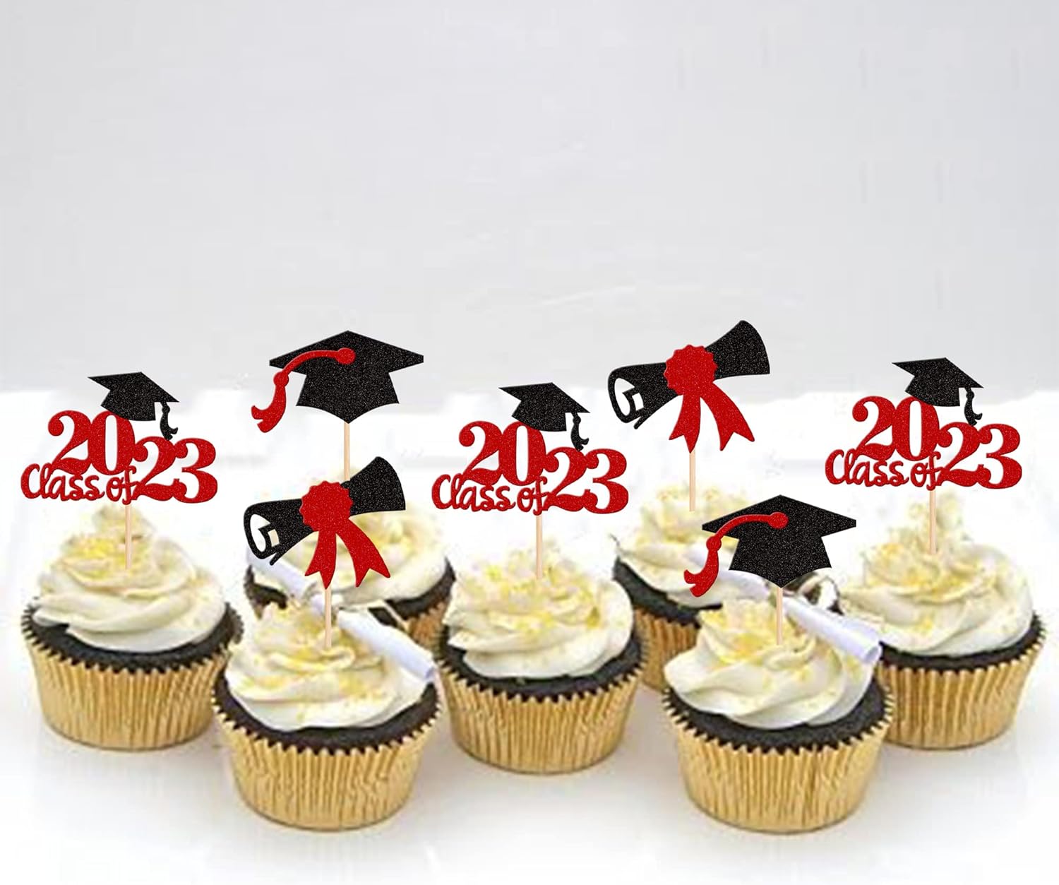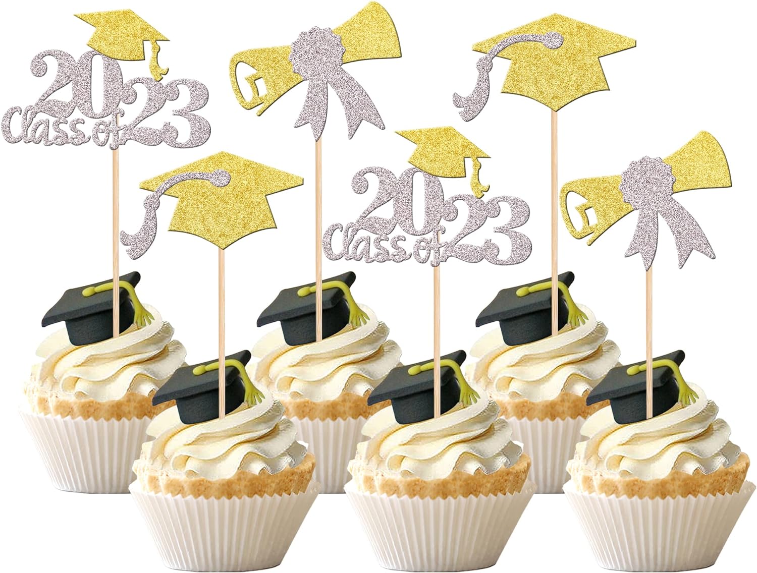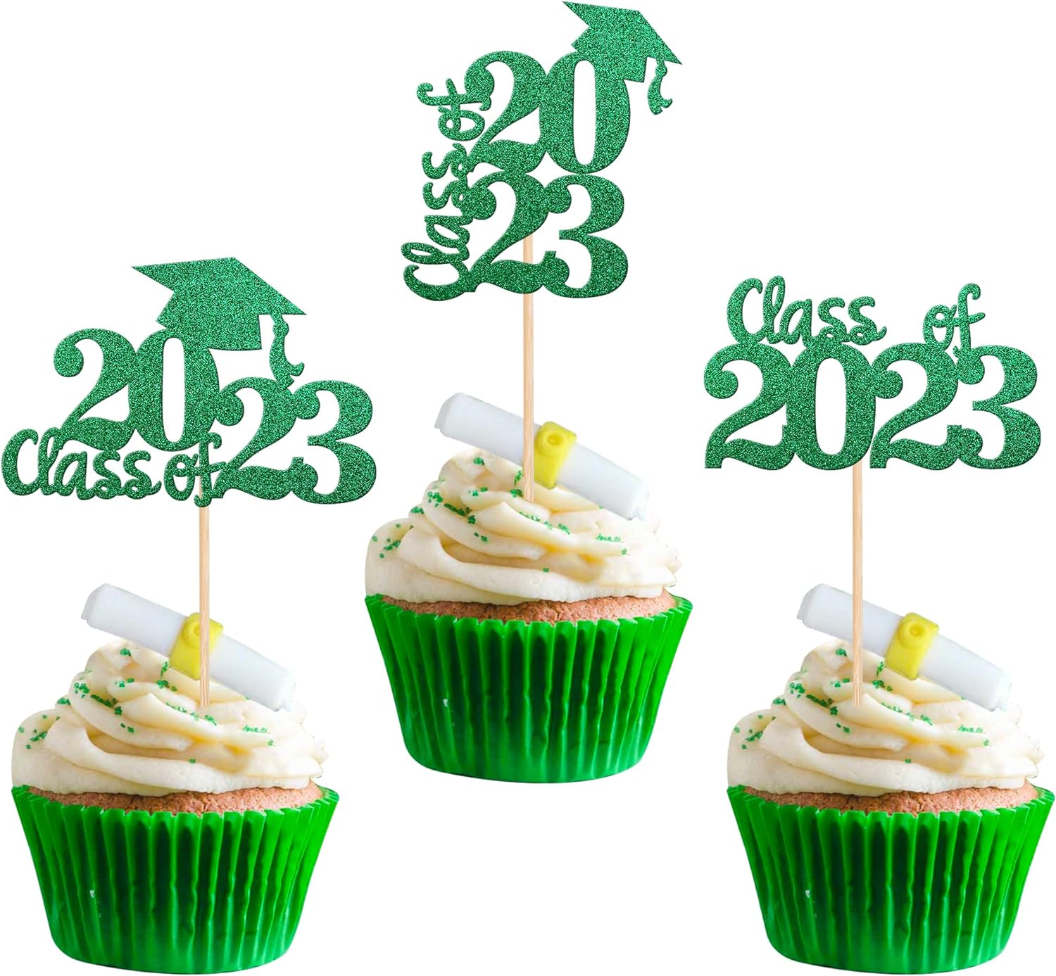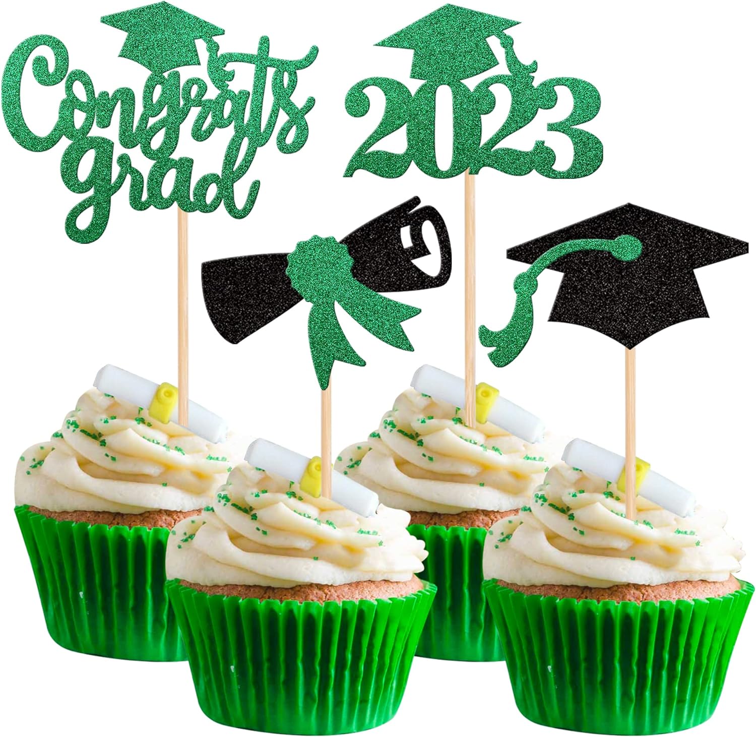 - Wide Usages ! The cupcake toppers and wrappers is perfect for 2023 graduation theme party cupcake decorations, such as kindergarten, primary, junior, senior high school, college, Master or Ph.D. graduation, they can make your cupcake more attractive and bring the fun to your party.You can also apply them for ice cream, fruits, cookies and other desserts.