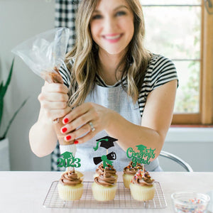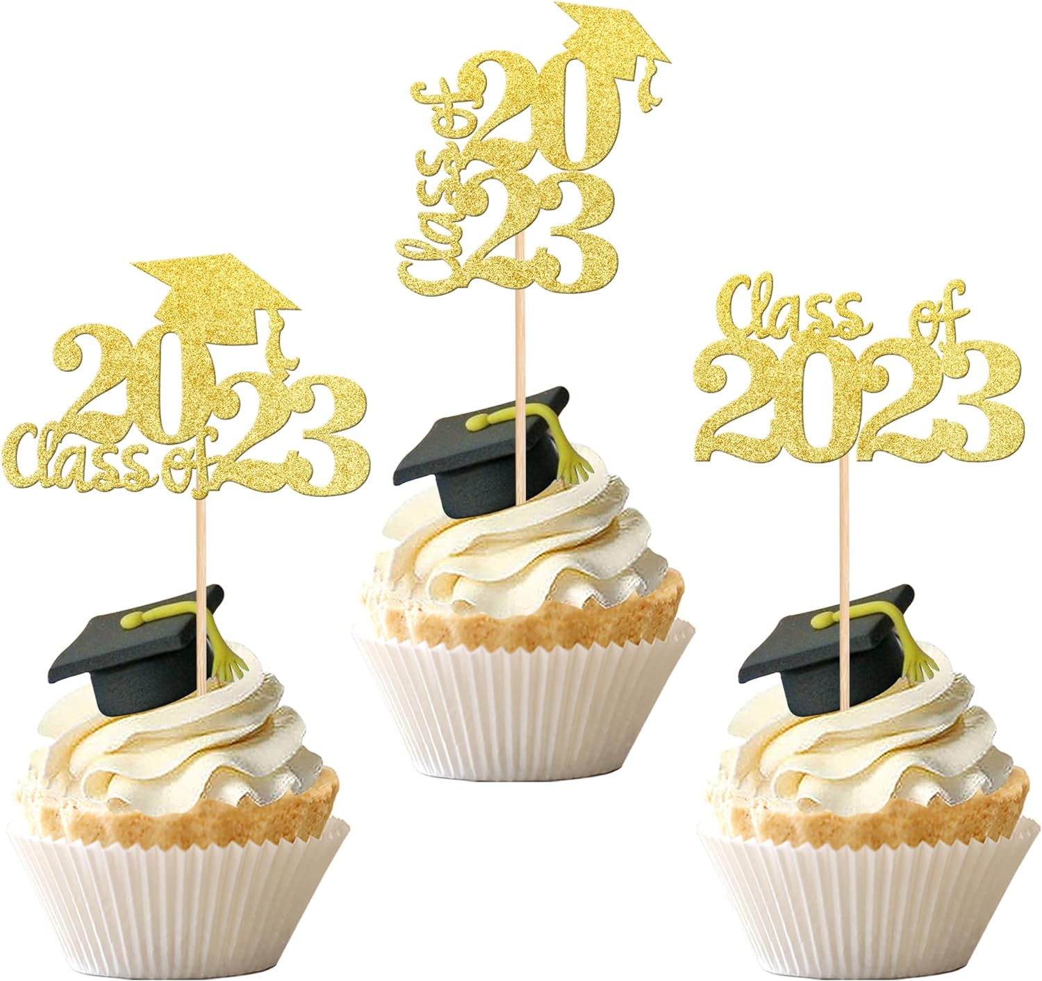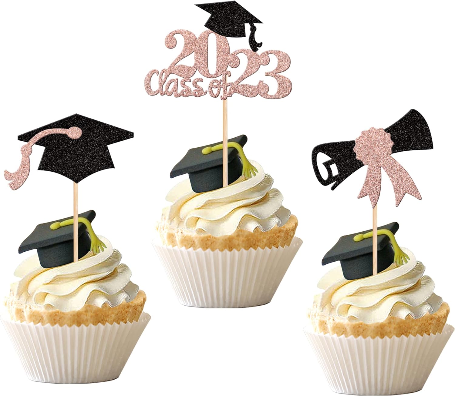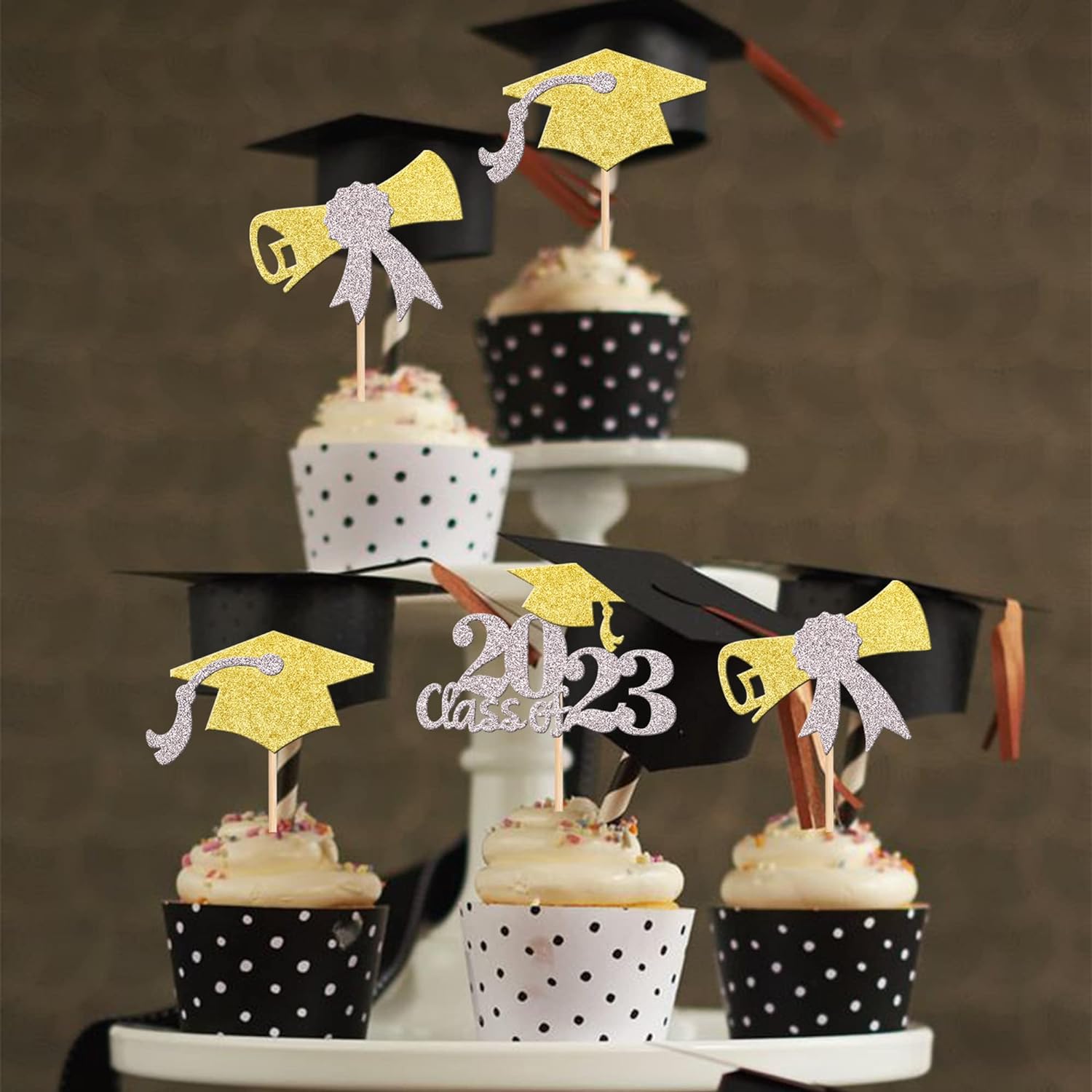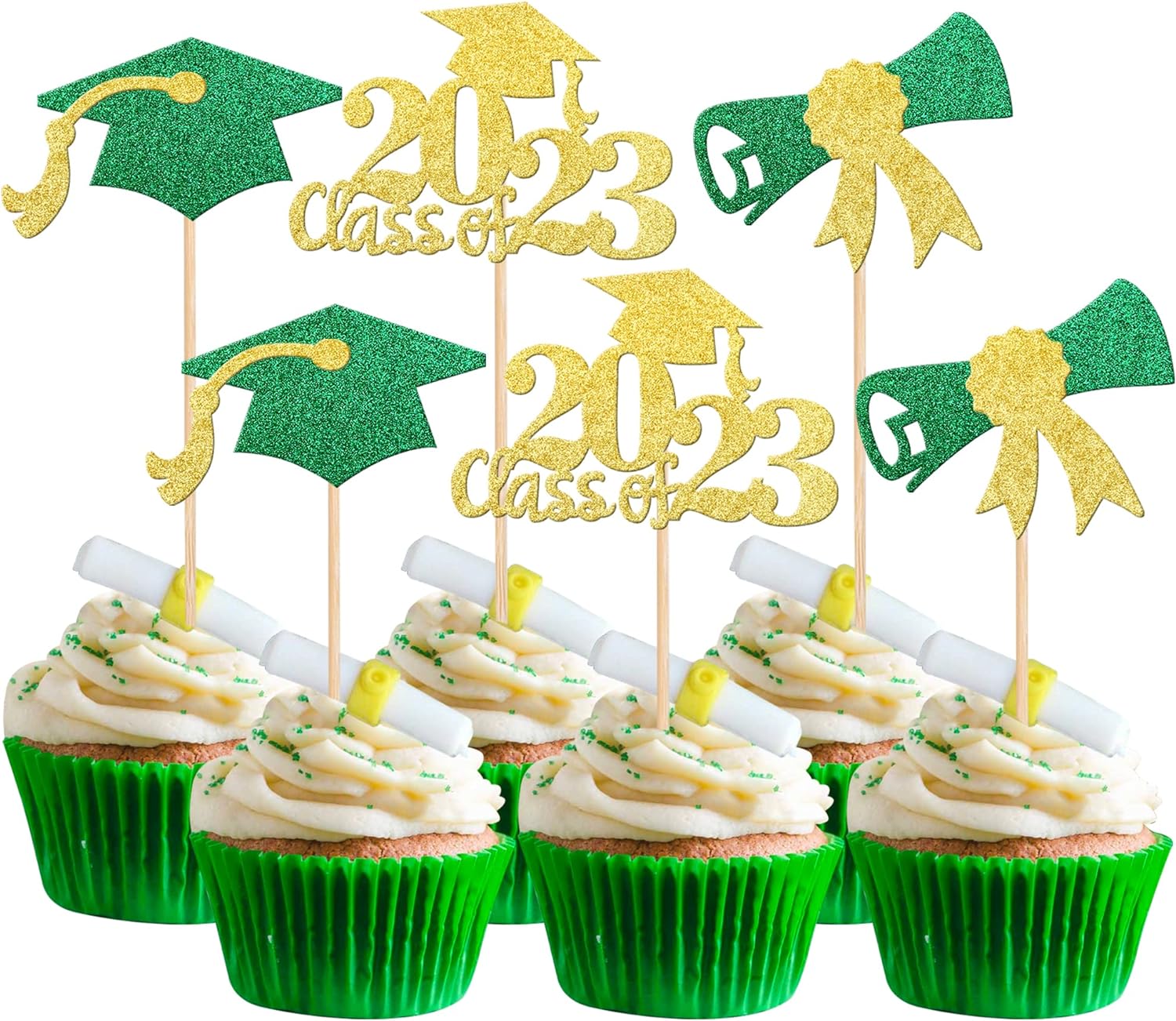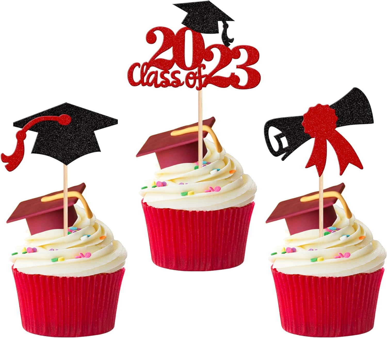 - Wide Usages ! The cupcake toppers and wrappers is perfect for 2023 graduation theme party cupcake decorations, such as kindergarten, primary, junior, senior high school, college, Master or Ph.D. graduation, they can make your cupcake more attractive and bring the fun to your party.You can also apply them for ice cream, fruits, cookies and other desserts.