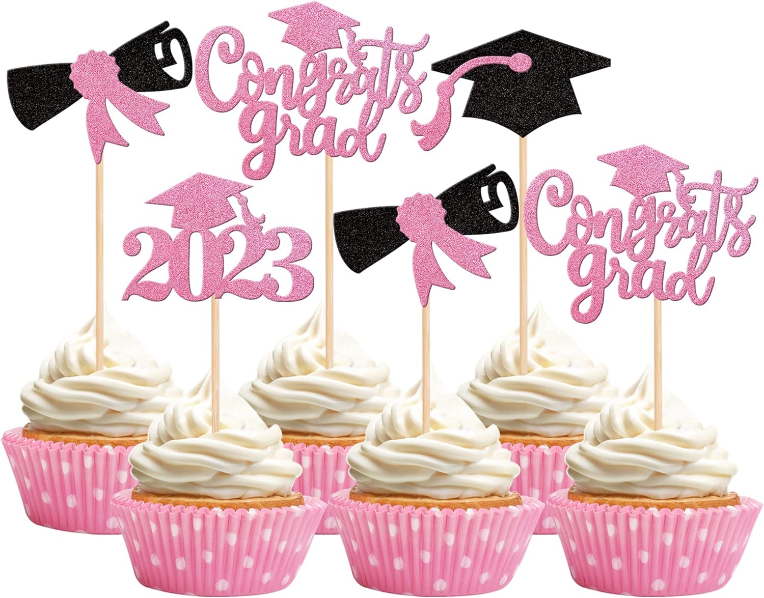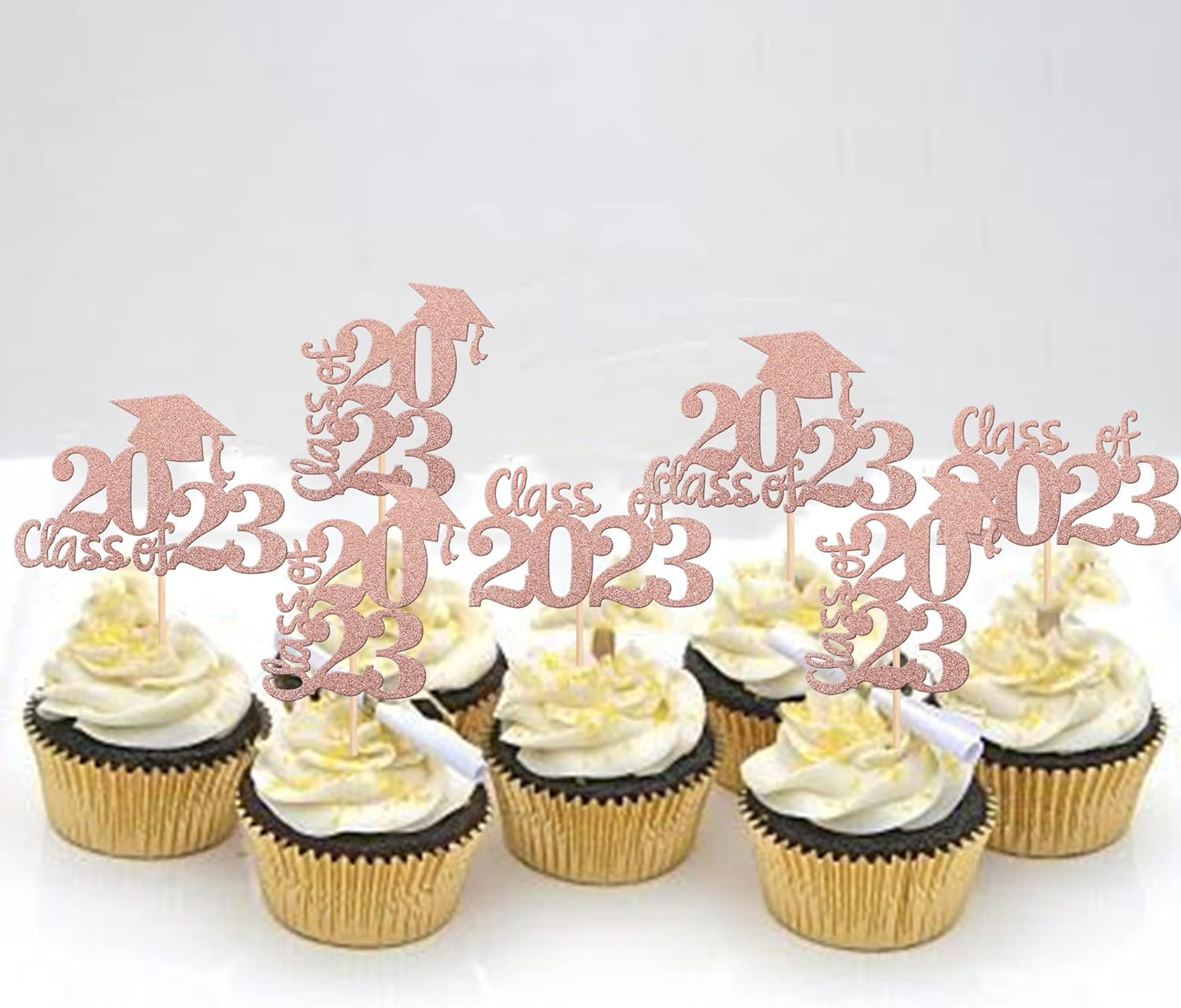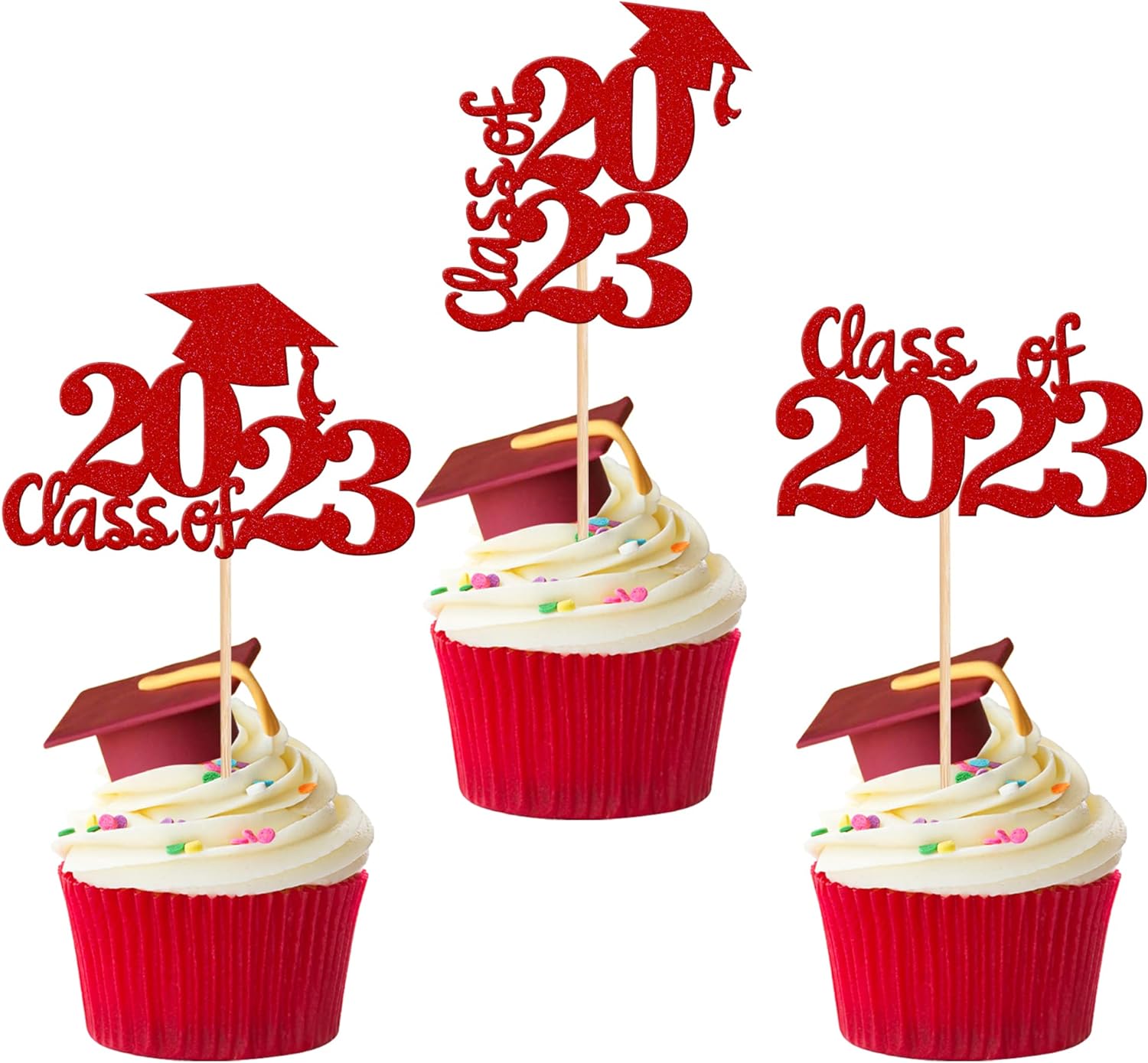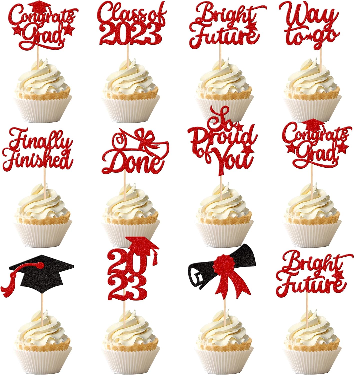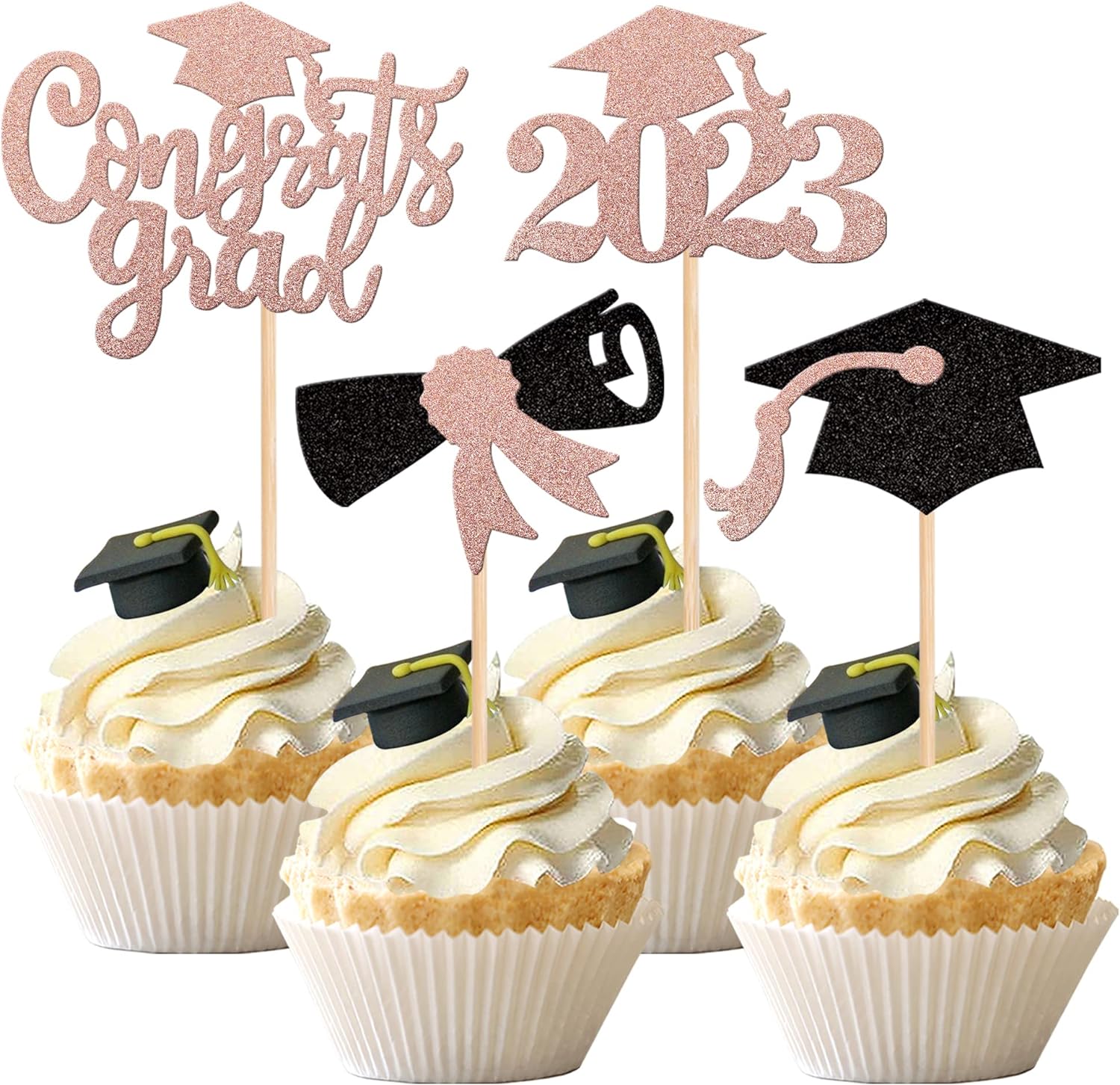- Wide Usages ! The cupcake toppers and wrappers is perfect for 2023 graduation theme party cupcake decorations, such as kindergarten, primary, junior, senior high school, college, Master or Ph.D. graduation, they can make your cupcake more attractive and bring the fun to your party.You can also apply them for ice cream, fruits, cookies and other desserts.