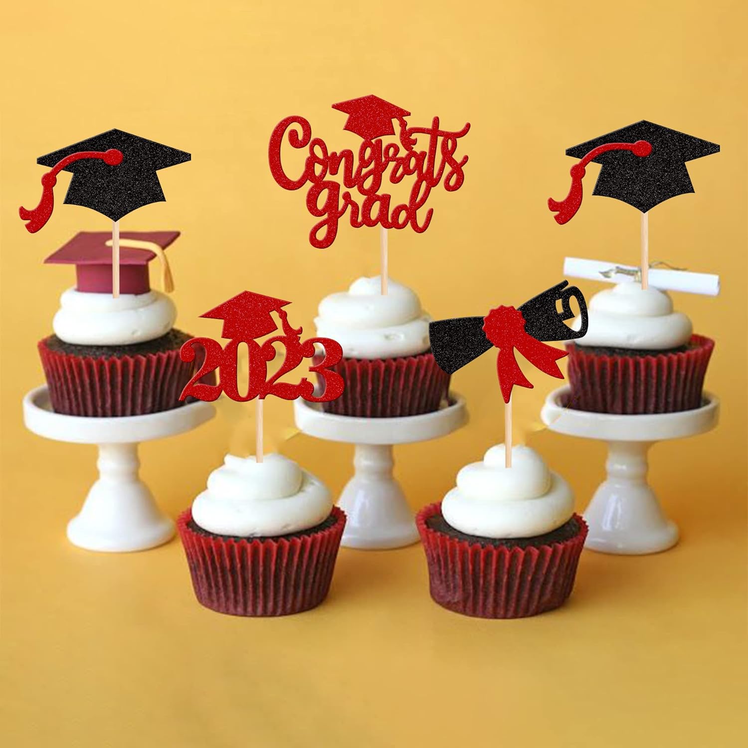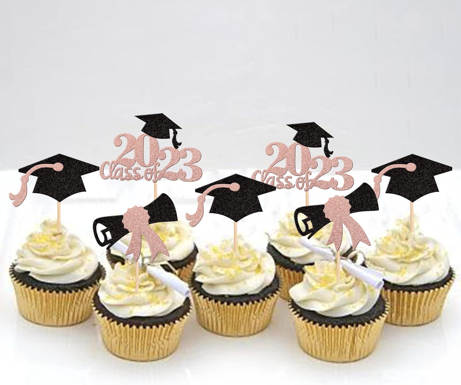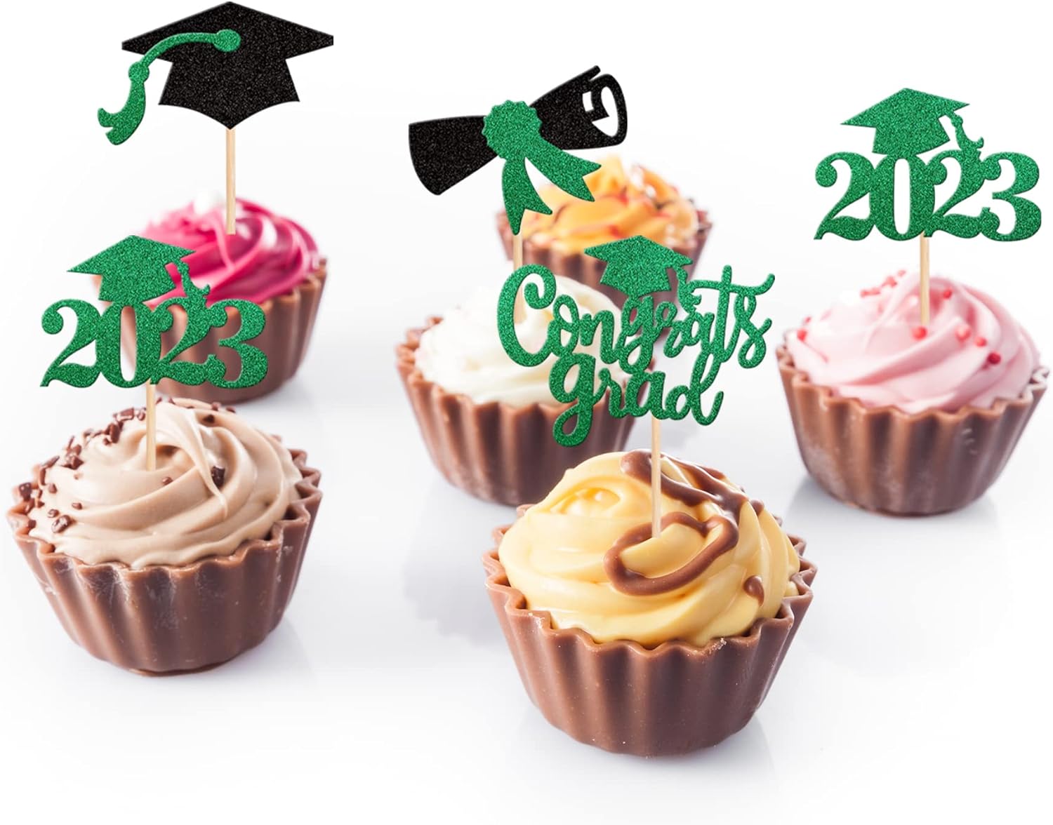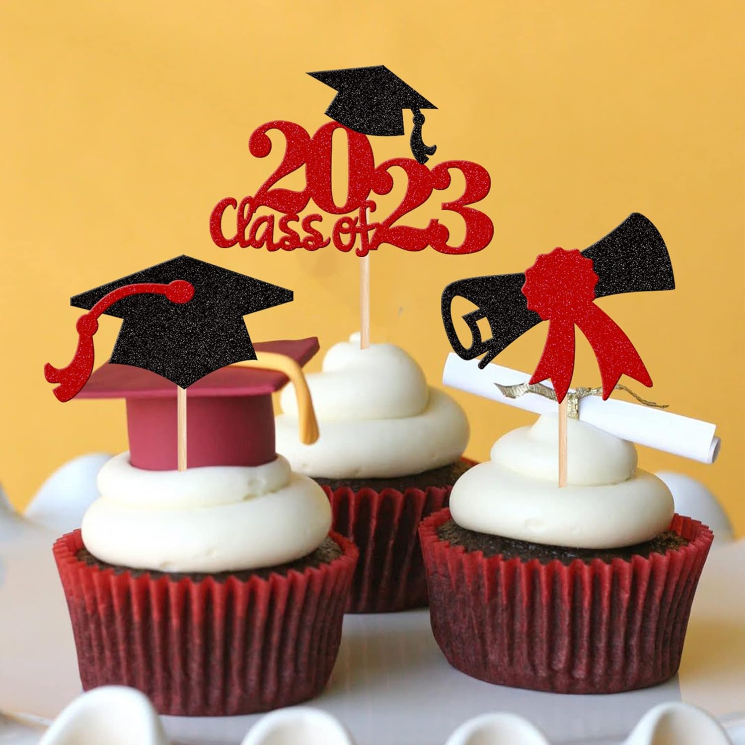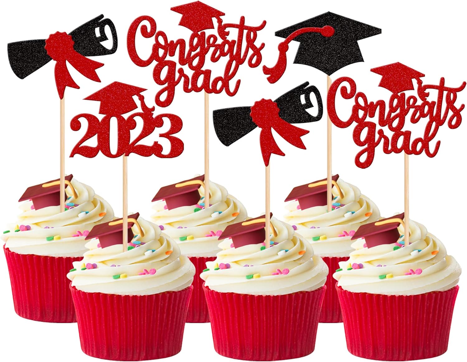 - Wide Usages ! The cupcake toppers and wrappers is perfect for 2023 graduation theme party cupcake decorations, such as kindergarten, primary, junior, senior high school, college, Master or Ph.D. graduation, they can make your cupcake more attractive and bring the fun to your party.You can also apply them for ice cream, fruits, cookies and other desserts.