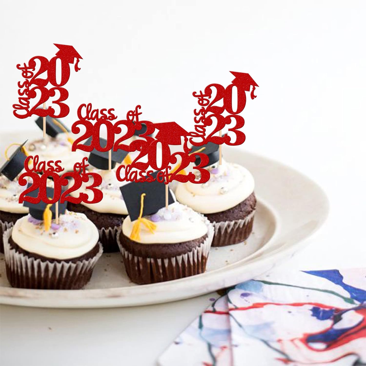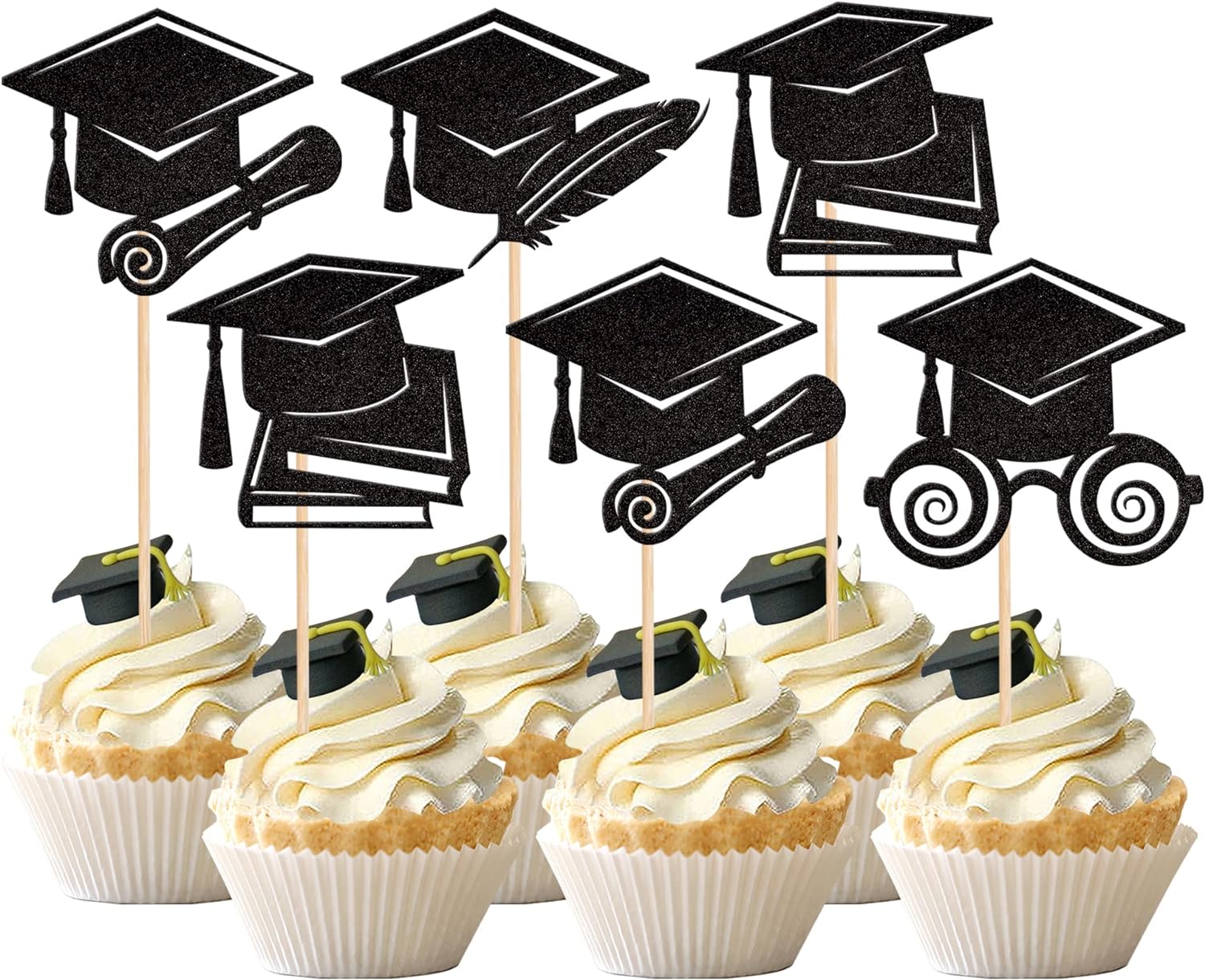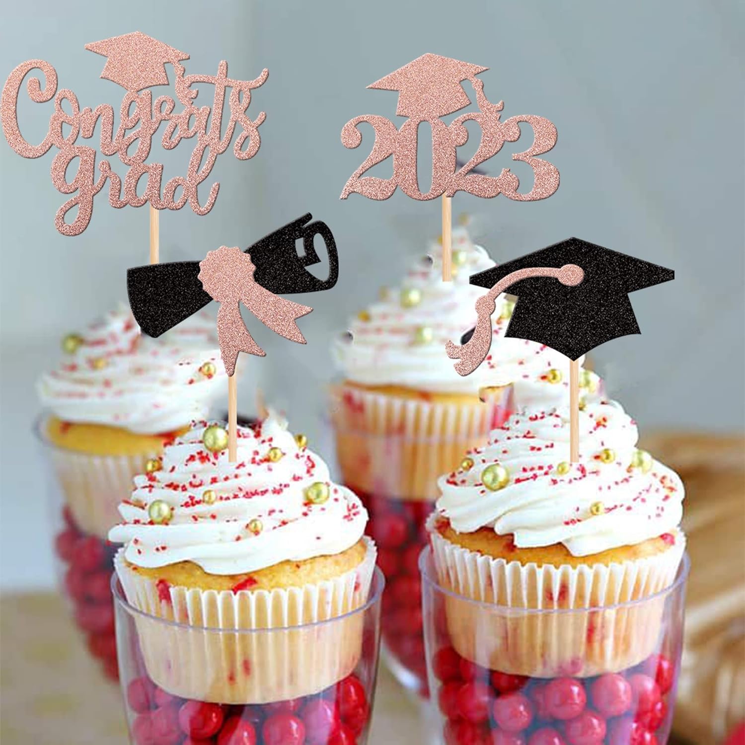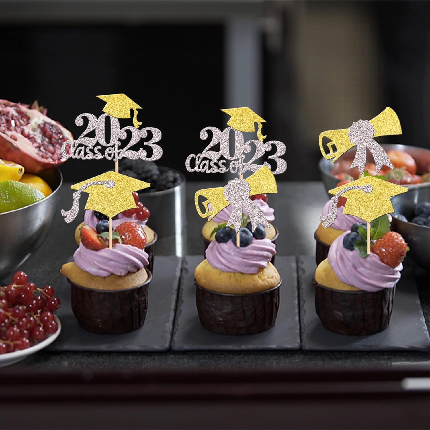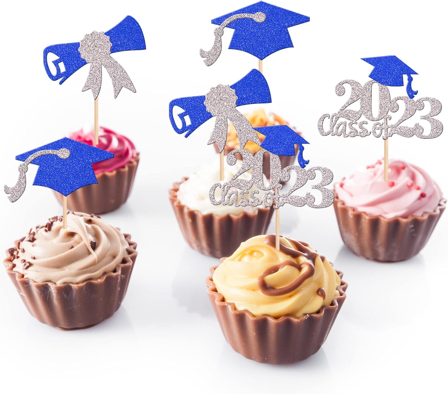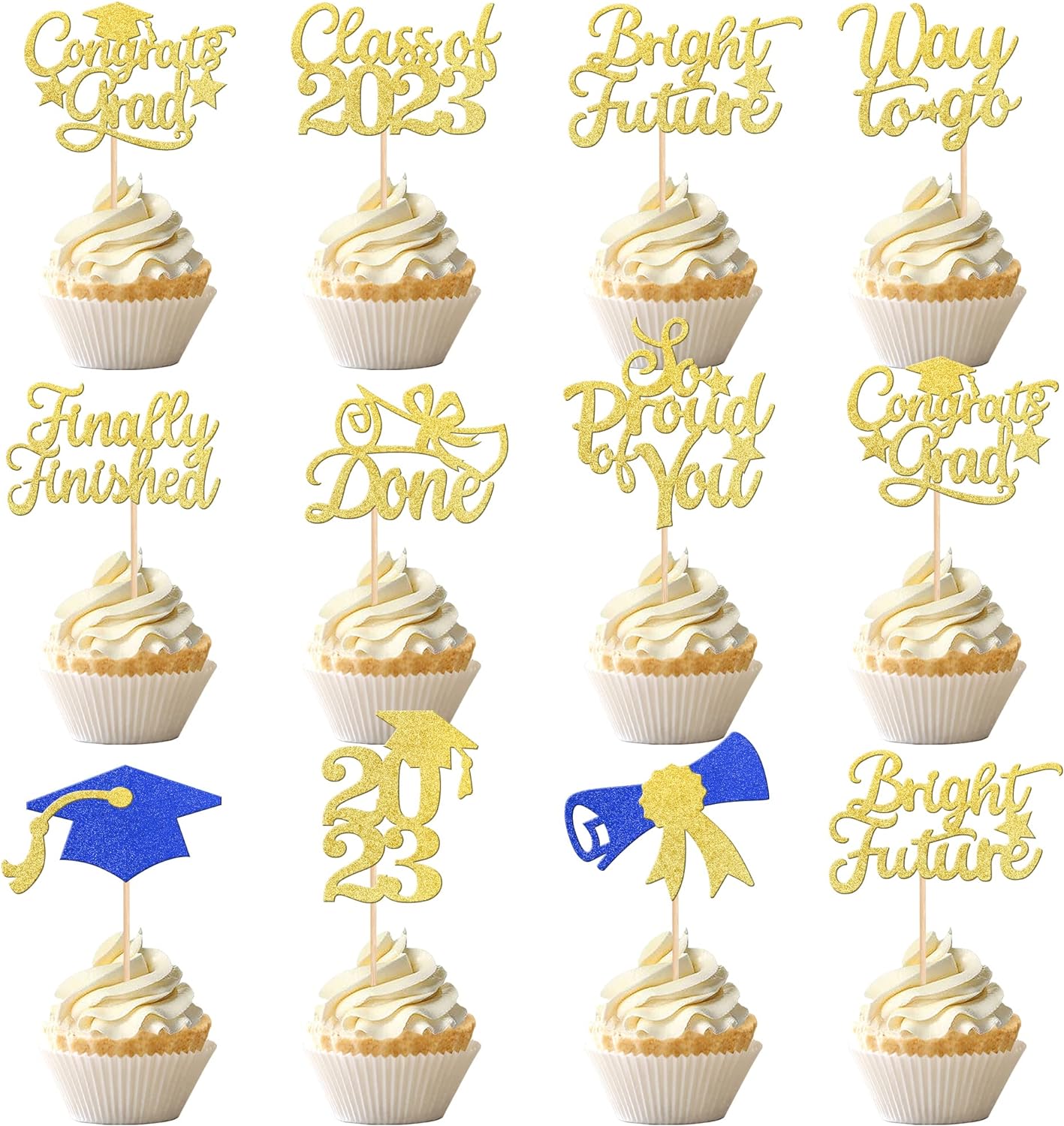 - Wide Usages ! The cupcake toppers and wrappers is perfect for 2023 graduation theme party cupcake decorations, such as kindergarten, primary, junior, senior high school, college, Master or Ph.D. graduation, they can make your cupcake more attractive and bring the fun to your party.You can also apply them for ice cream, fruits, cookies and other desserts.