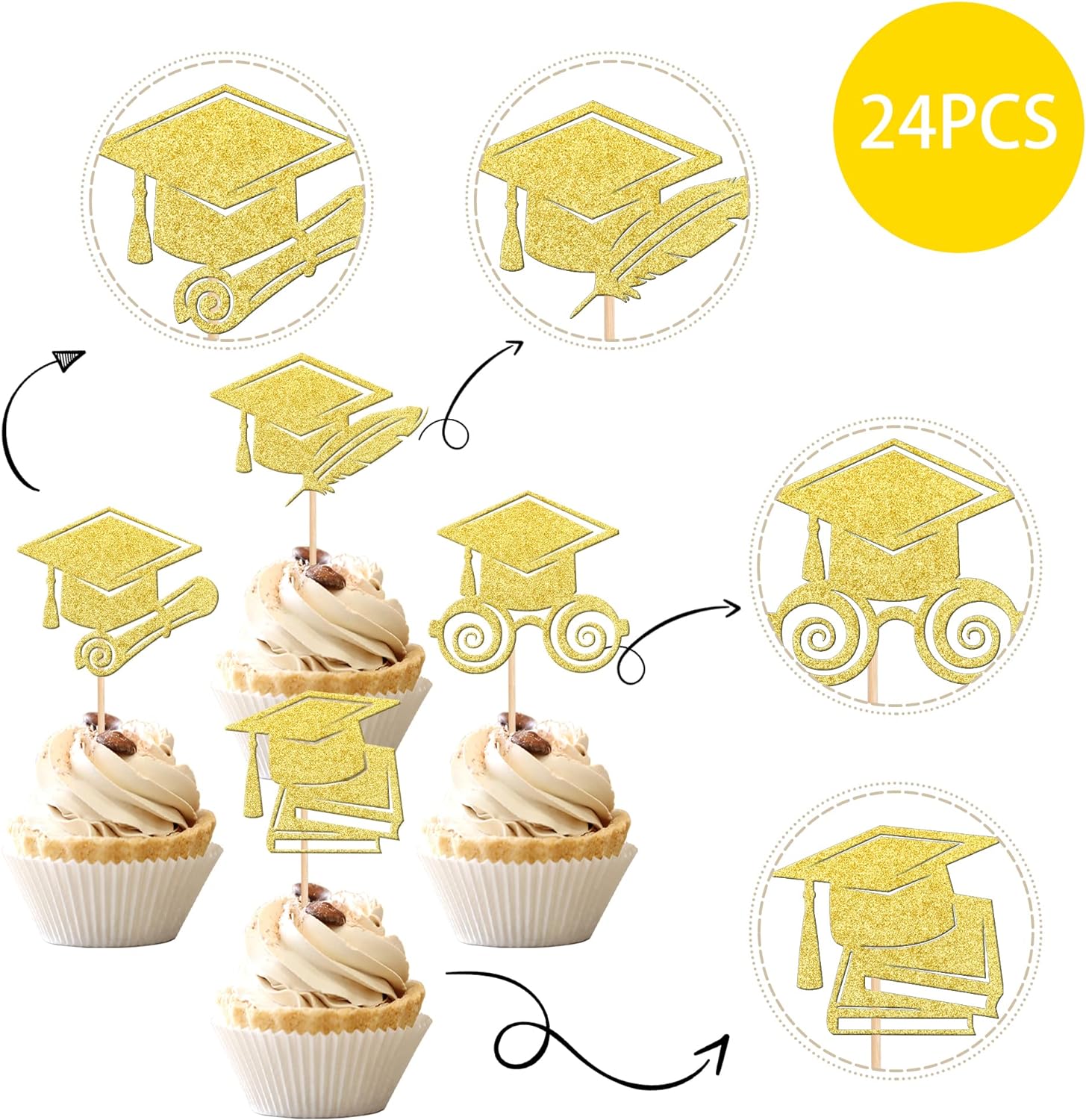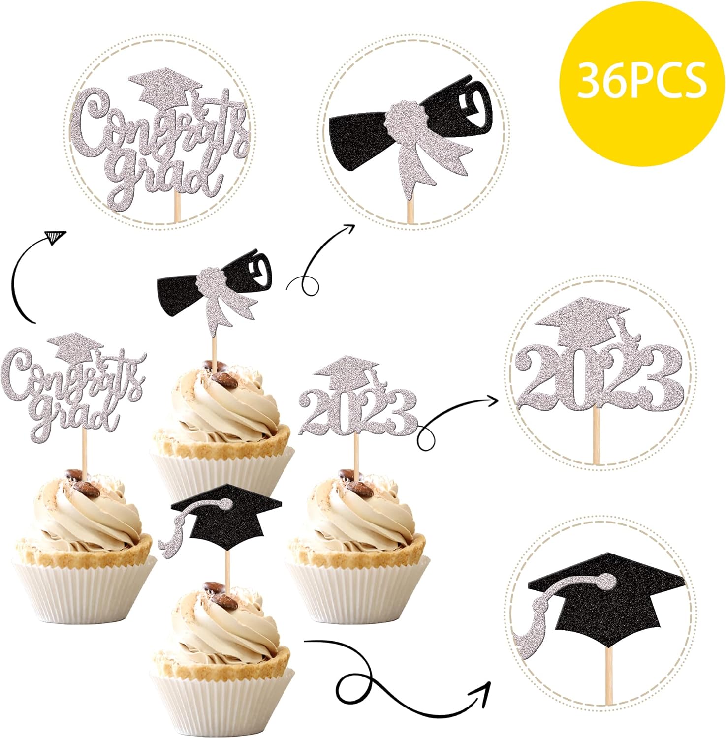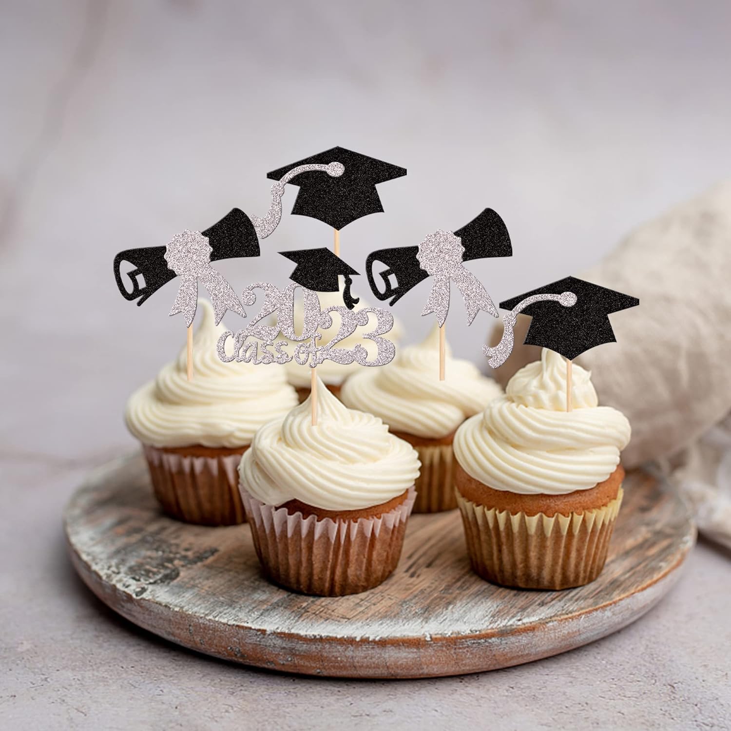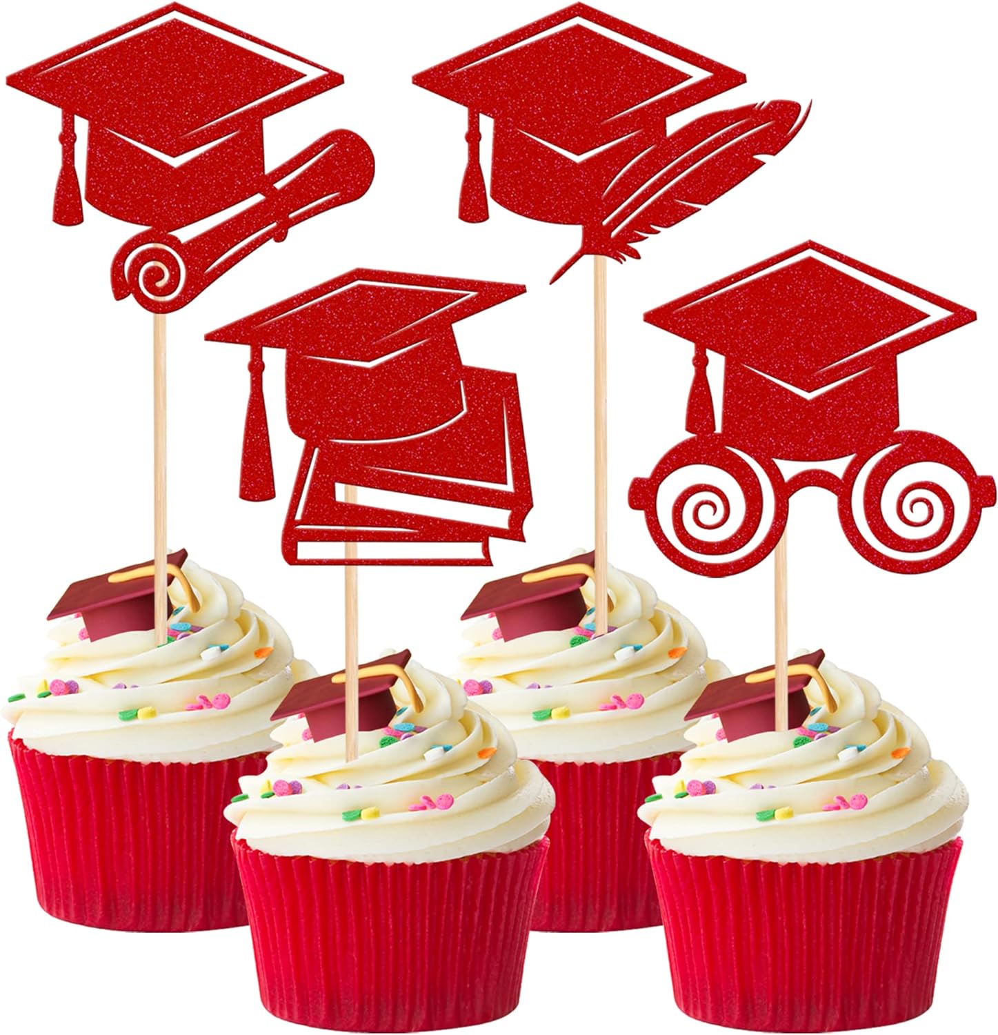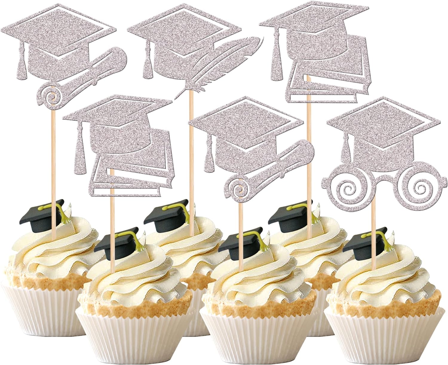 - Wide Usages ! The cupcake toppers and wrappers is perfect for 2023 graduation theme party cupcake decorations, such as kindergarten, primary, junior, senior high school, college, Master or Ph.D. graduation, they can make your cupcake more attractive and bring the fun to your party.You can also apply them for ice cream, fruits, cookies and other desserts.