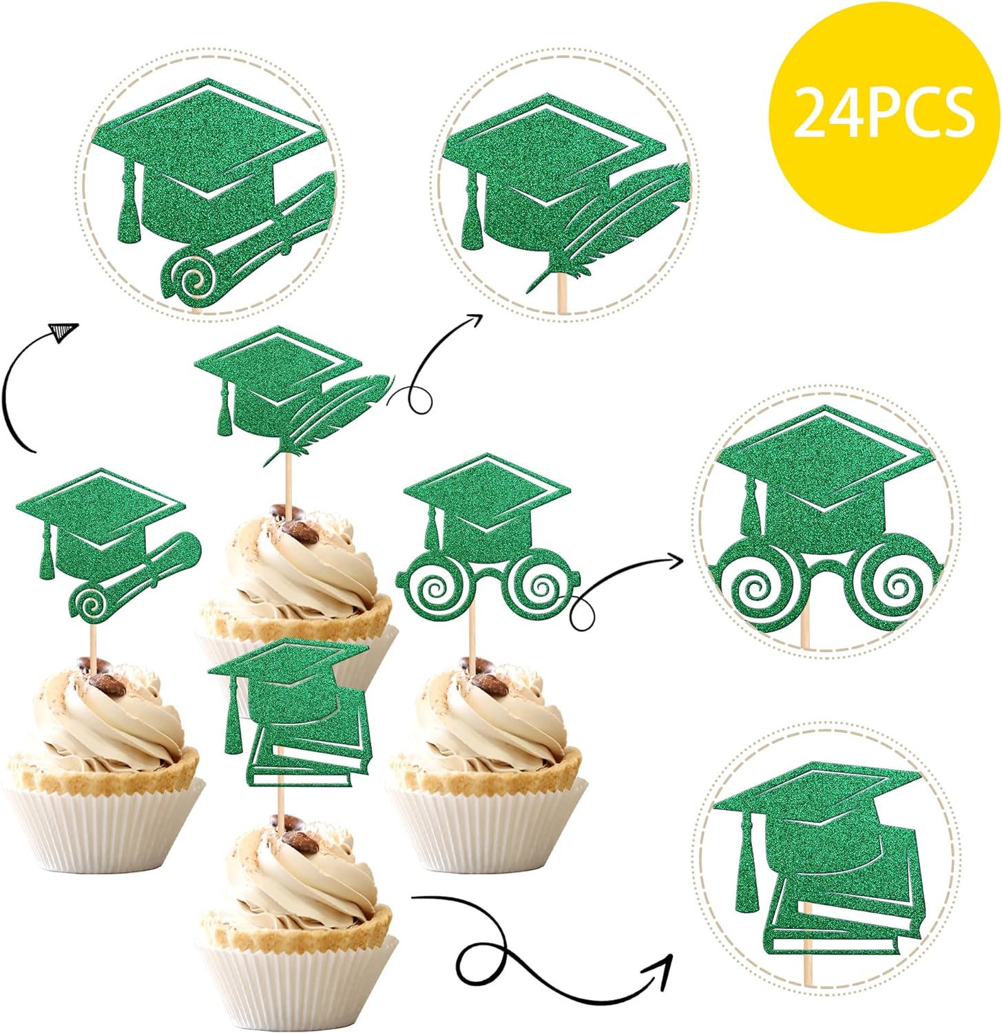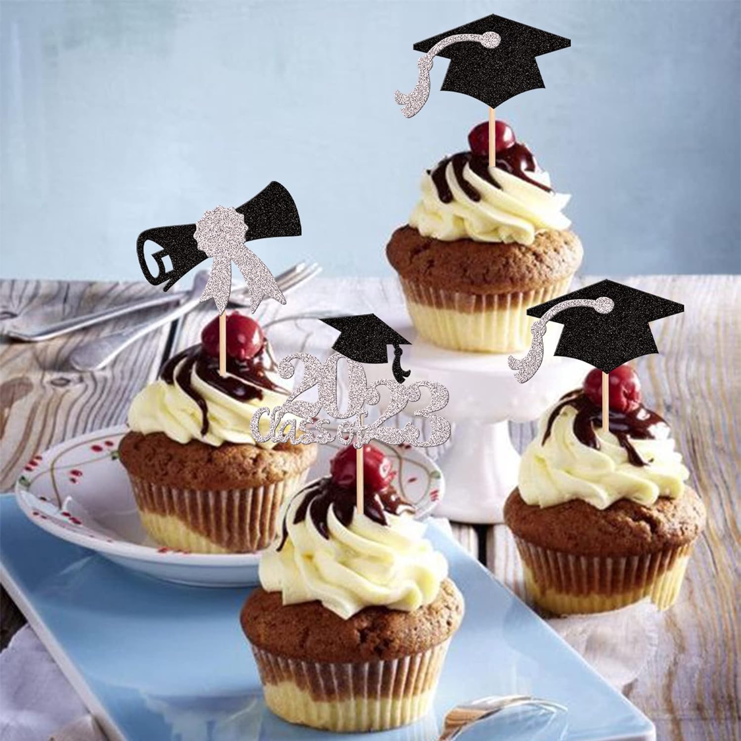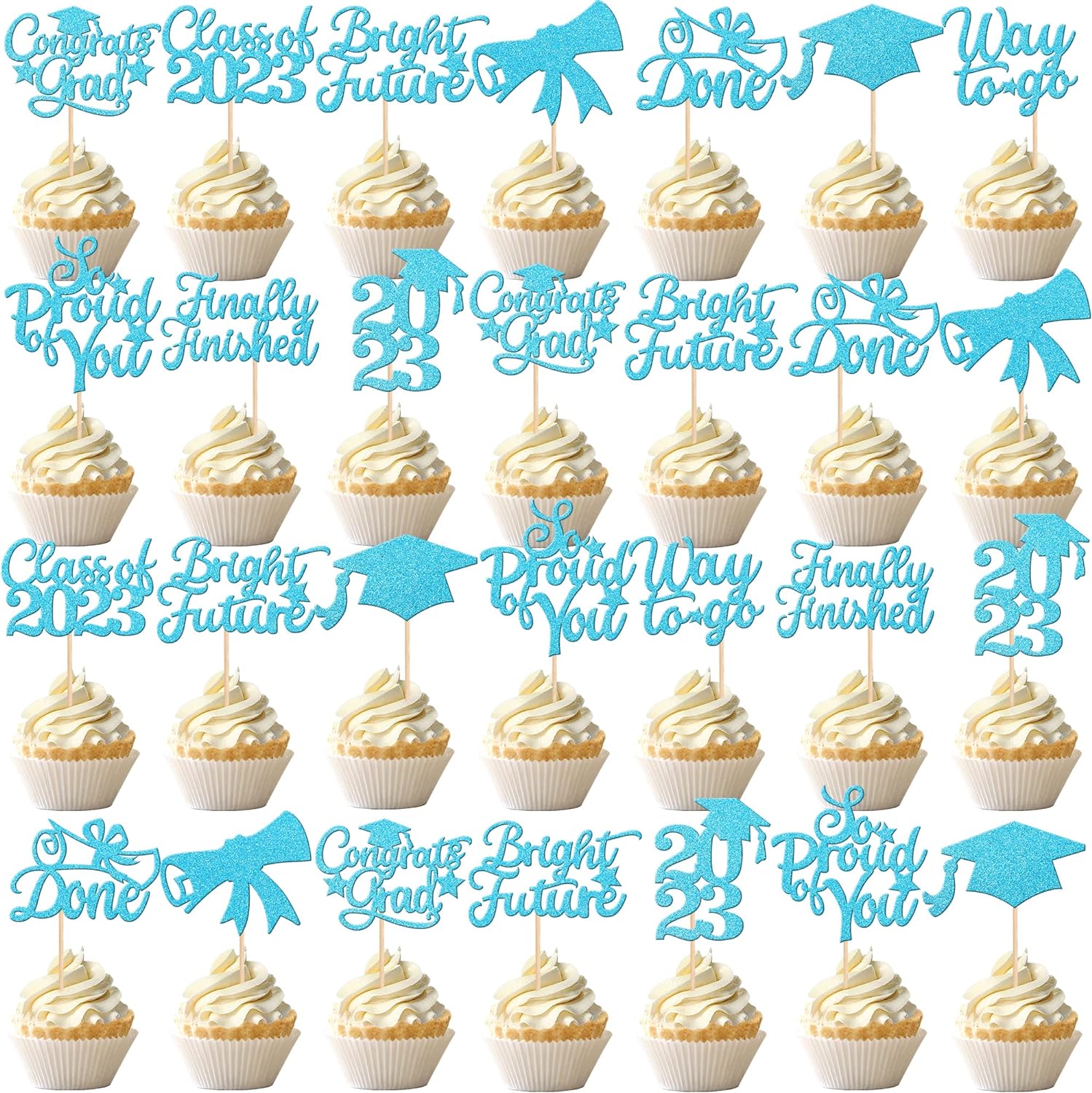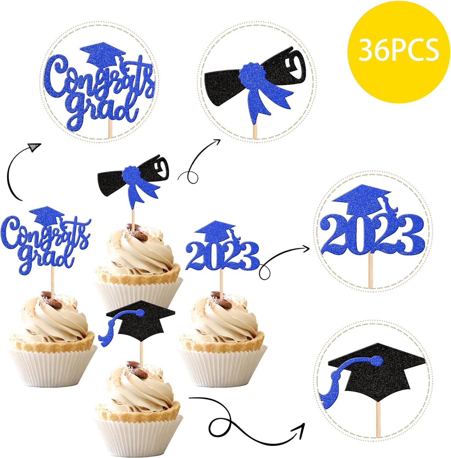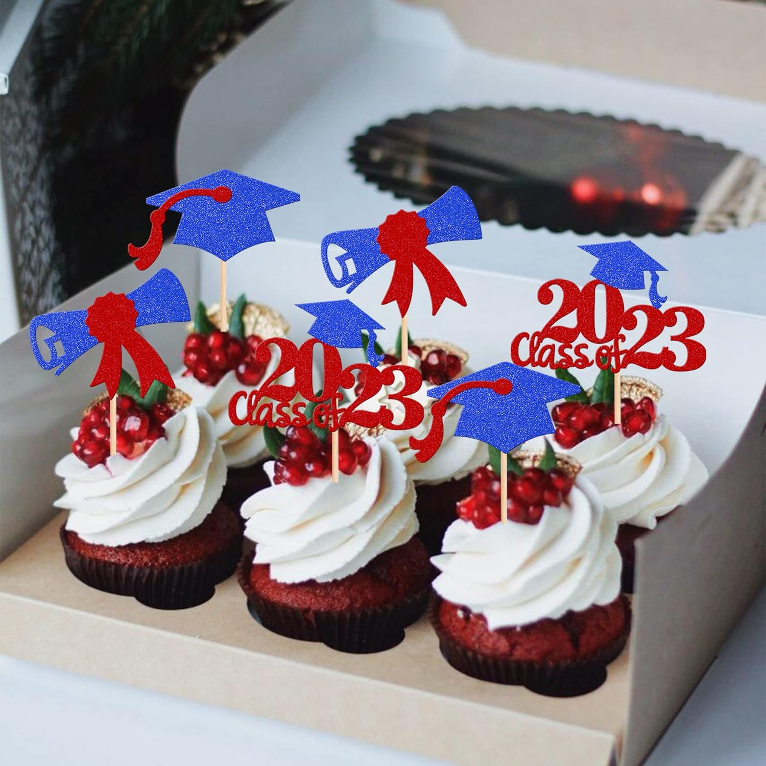 - Wide Usages ! The cupcake toppers and wrappers is perfect for 2023 graduation theme party cupcake decorations, such as kindergarten, primary, junior, senior high school, college, Master or Ph.D. graduation, they can make your cupcake more attractive and bring the fun to your party.You can also apply them for ice cream, fruits, cookies and other desserts.