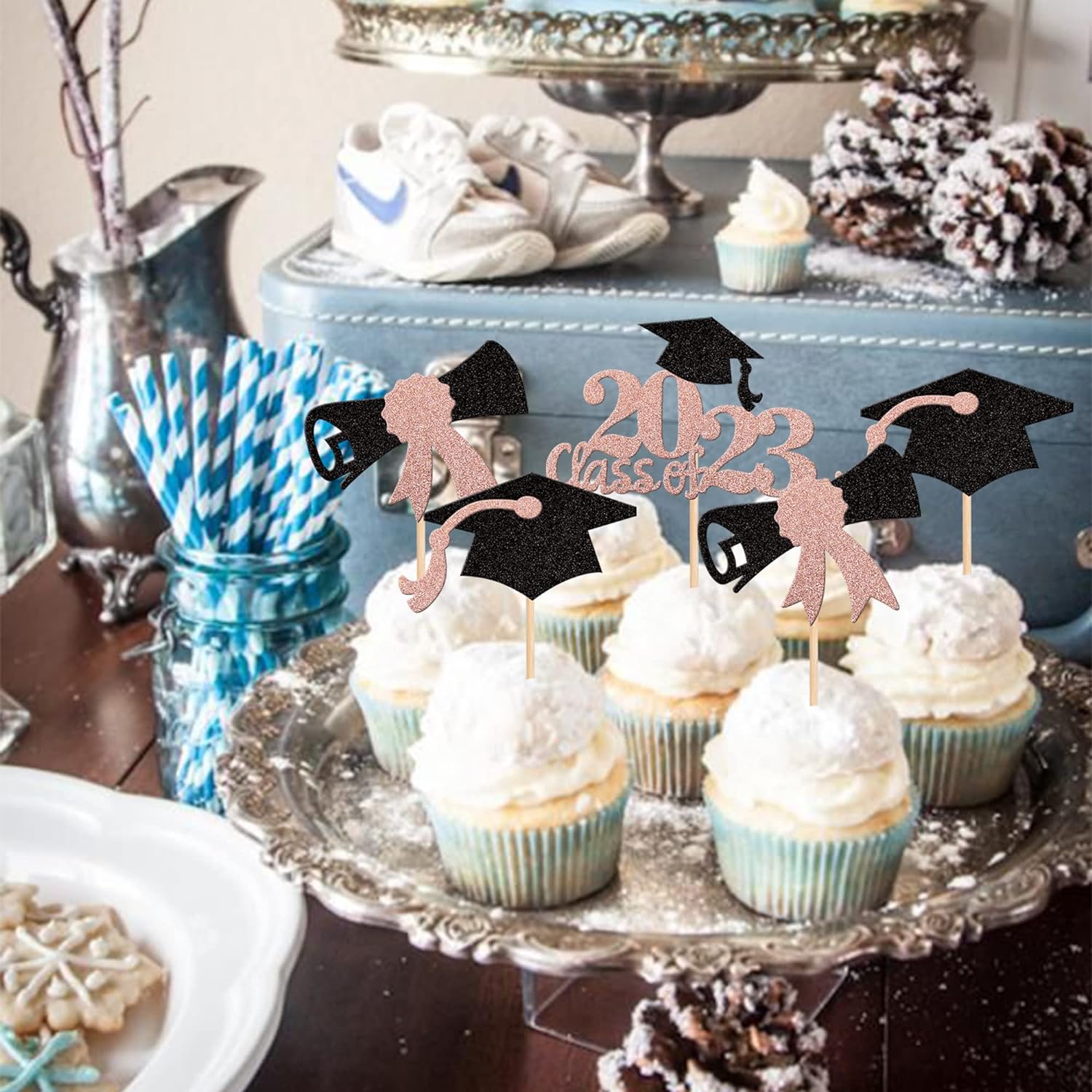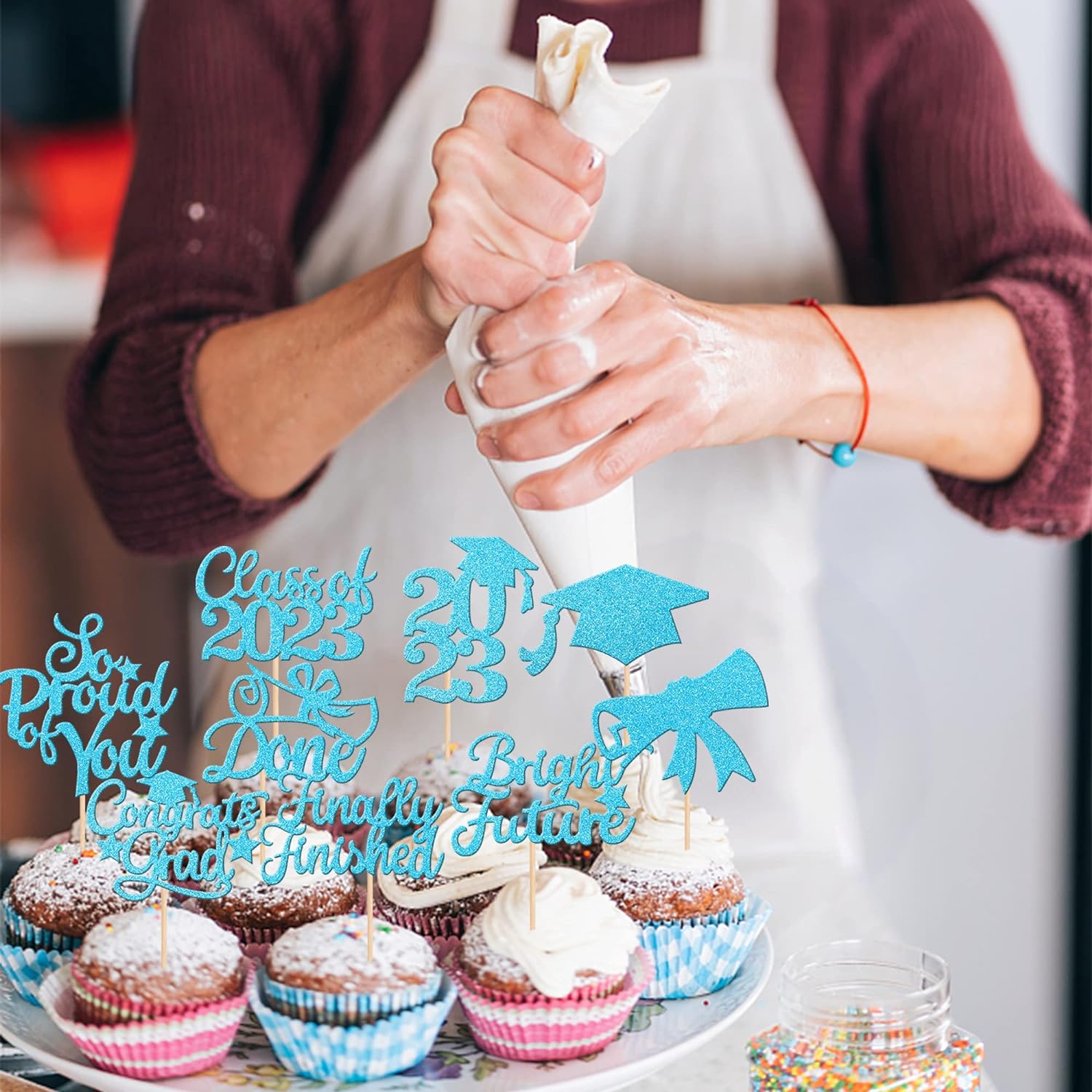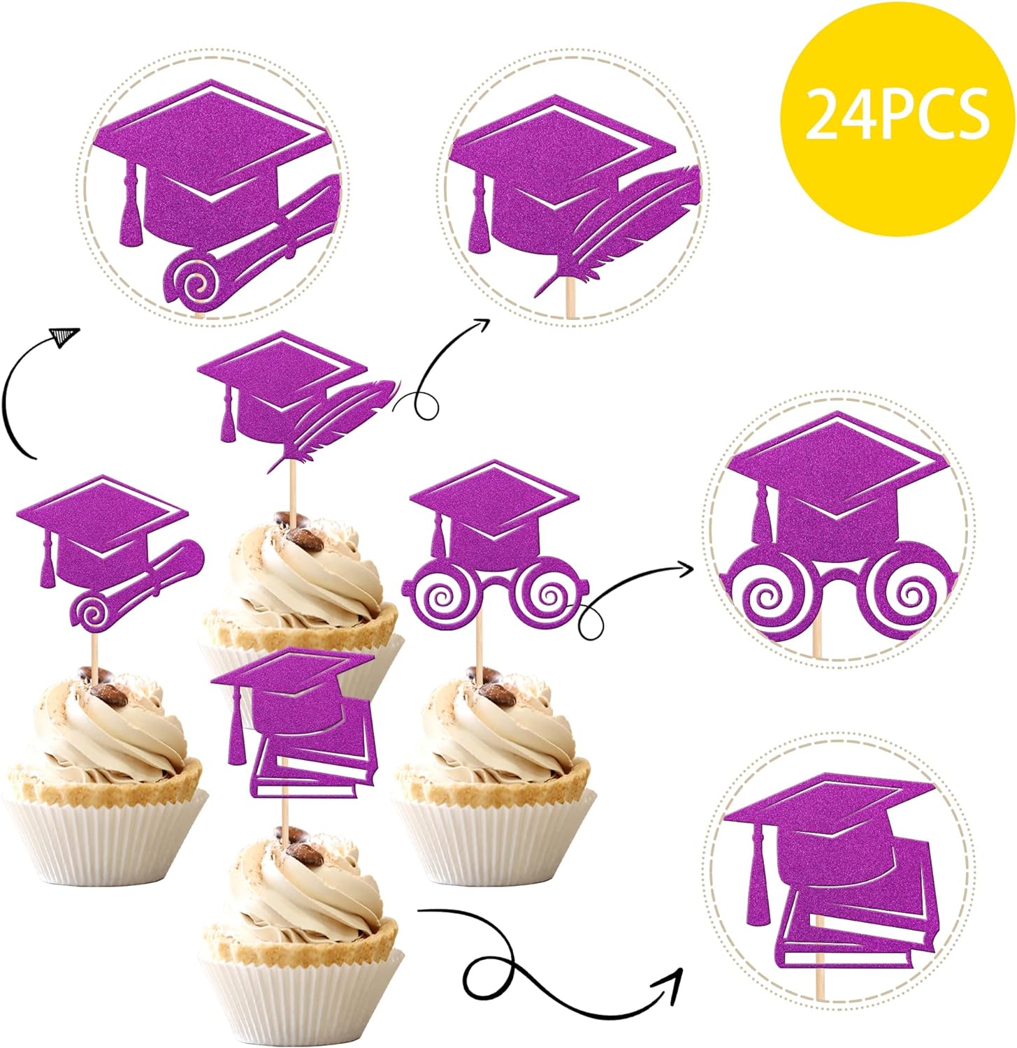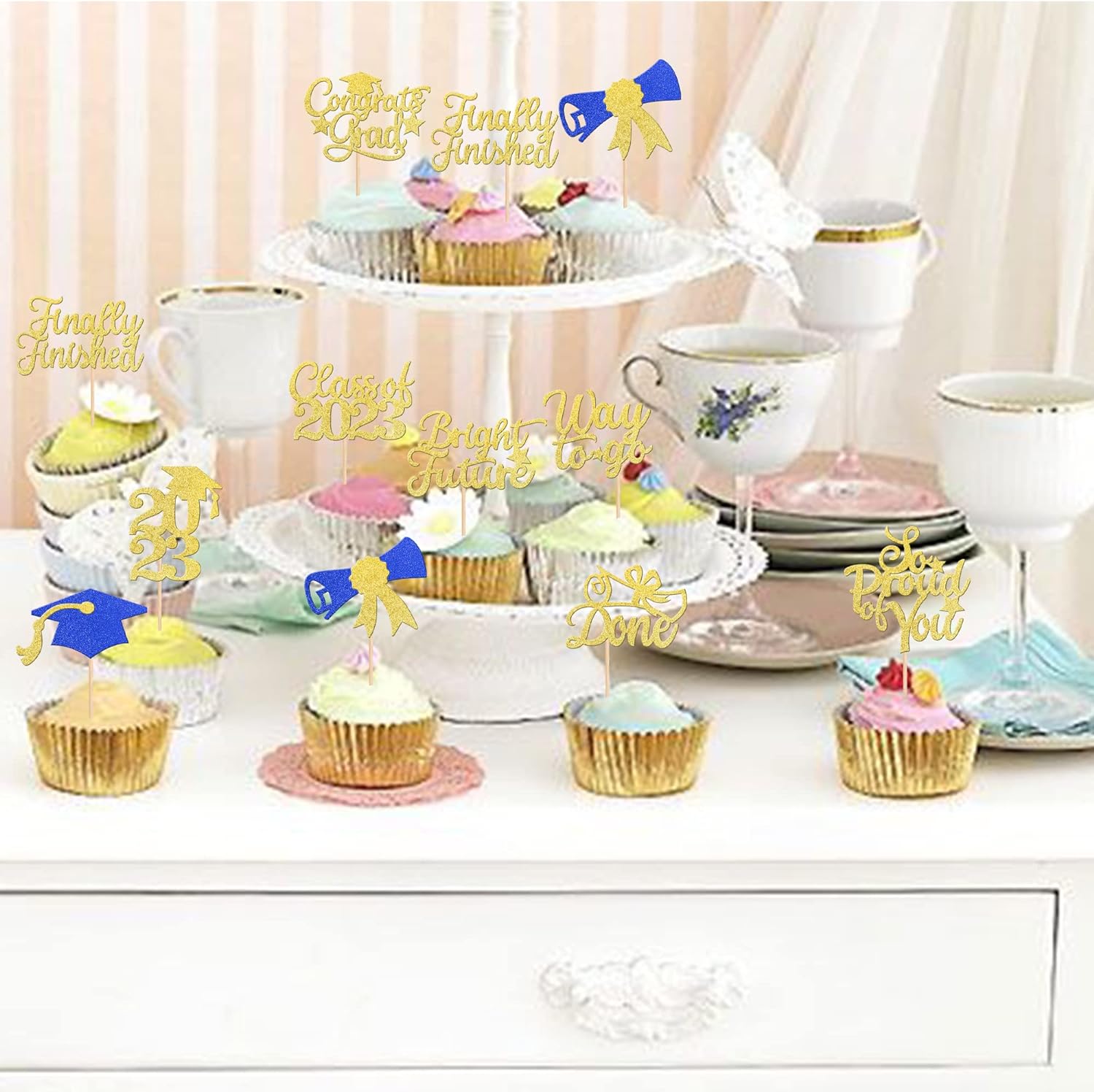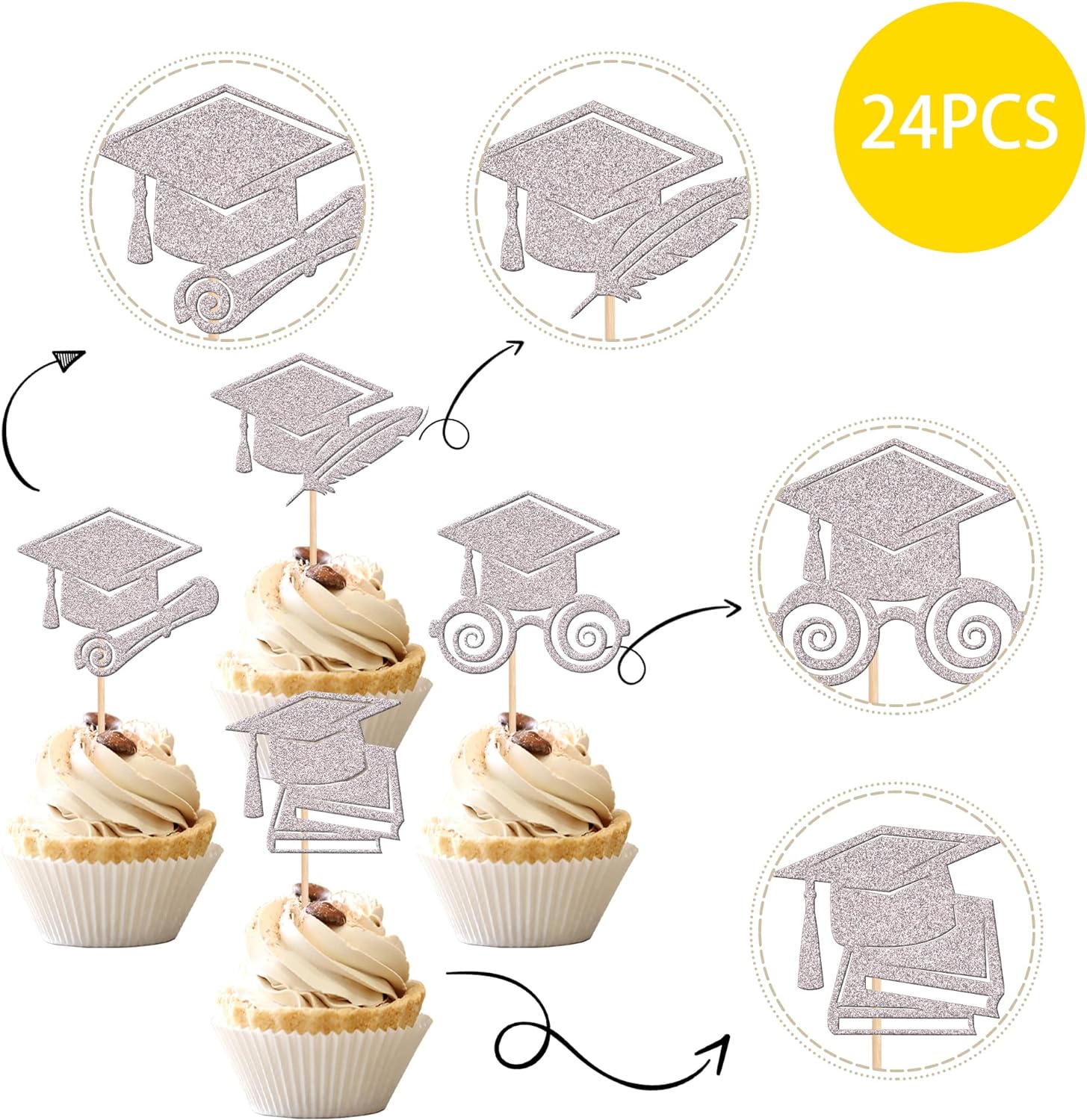 - Wide Usages ! The cupcake toppers and wrappers is perfect for 2023 graduation theme party cupcake decorations, such as kindergarten, primary, junior, senior high school, college, Master or Ph.D. graduation, they can make your cupcake more attractive and bring the fun to your party.You can also apply them for ice cream, fruits, cookies and other desserts.