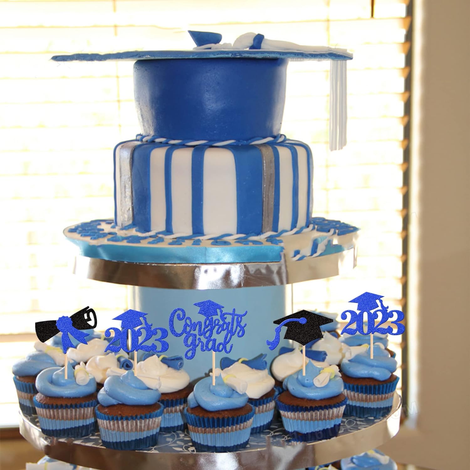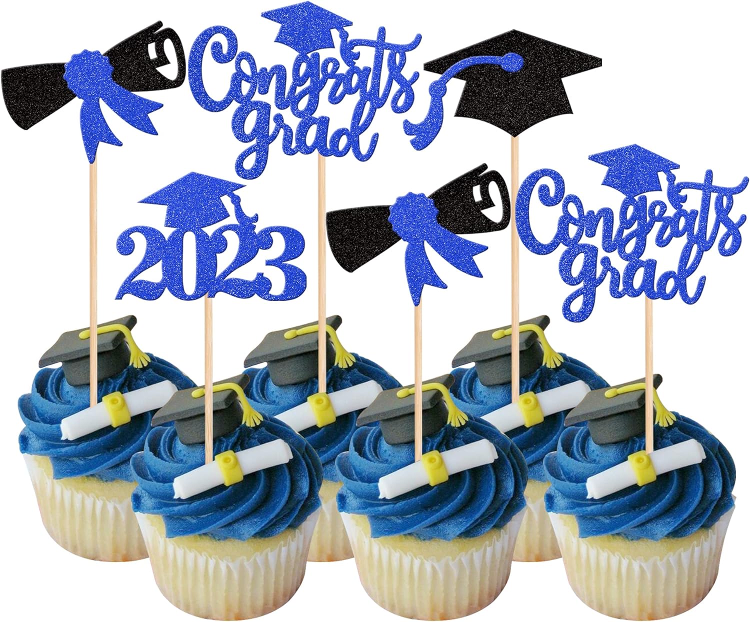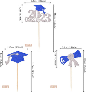 40 PCS 2023 Graduation Cupcake Toppers and Wrappers Double Sided Diploma Class of 2023 Congrats Grad Cap Cupcake Picks for 2023 Graduation Theme Party Cake Decorations Supplies Blue