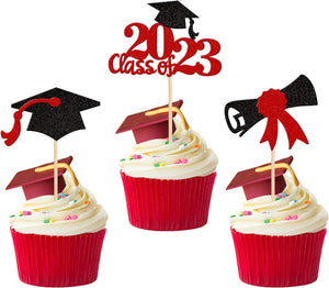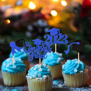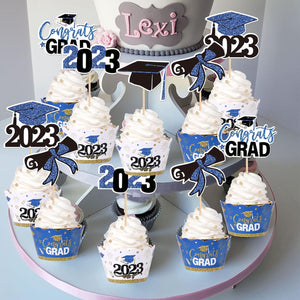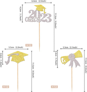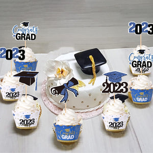 Diploma Class of 2023 Congrats Grad Cupcake Toppers and Wrappers for 2023 Graduation Theme Party Cake Decorations Supplies