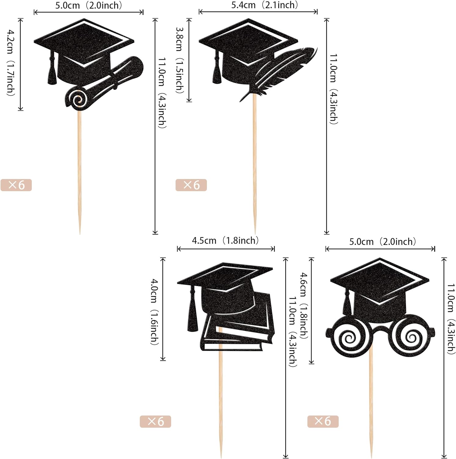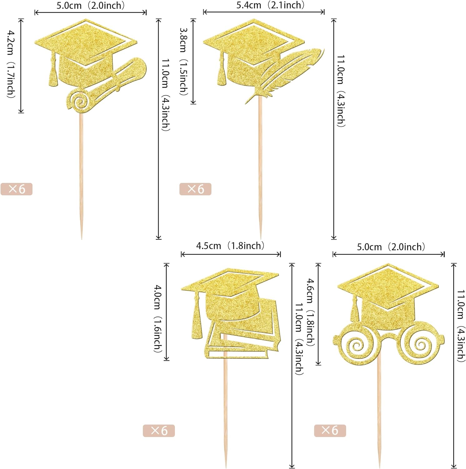- No Assembled Required ! These cupcake toppers are assembled in advance,so you don't need to DIY it by yourself,which can save you time and effort during the process of party preparation; You can insert them into your cake or cupcakes and adjust the suitable height to show better effects.