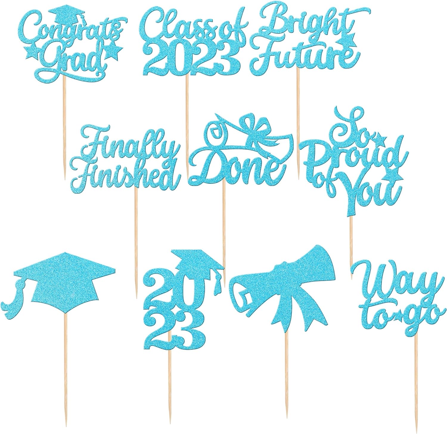 - Upgrade Quality ! Made of 300 gram card stock and 100% food grade bamboo stick,not easy to deform and fade,smooth edges without burrs.they will be shine in the light, easily enhance the party vibes and draw attention of people.It is double sided printing.