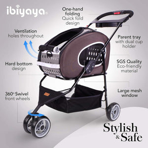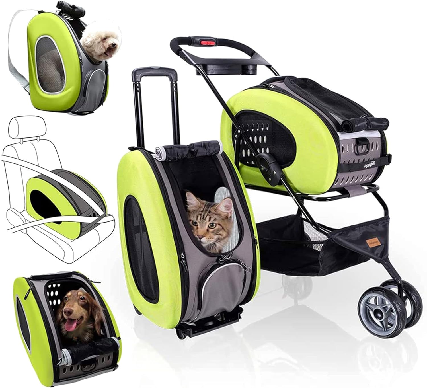 Introducing the All-in-One Pet Strollers from Ibiyaya, versatile pet carriers that can convert into cat backpacks, car seats, shoulder pet carriers, dog strollers, and even a dog carrier with wheels!