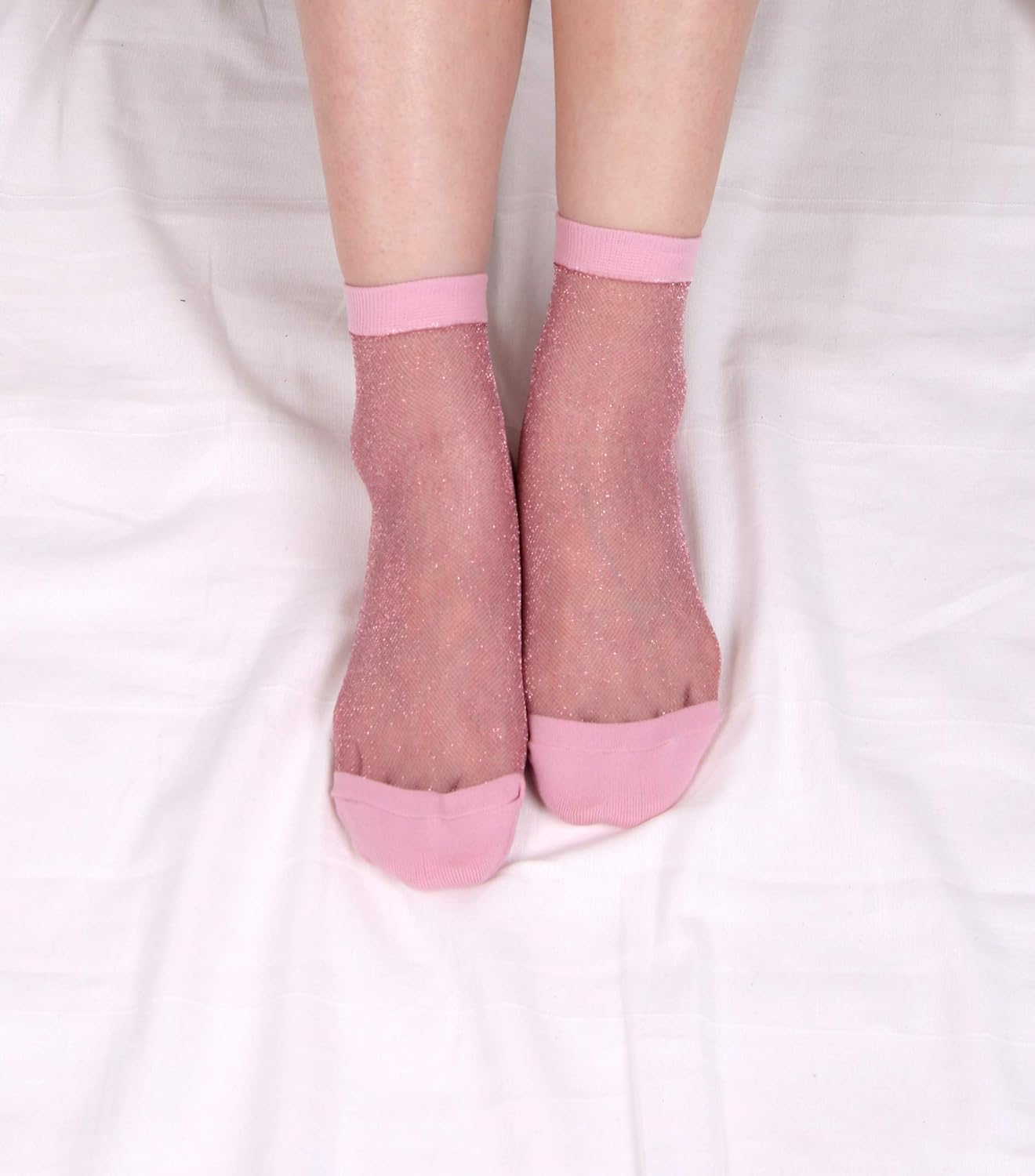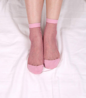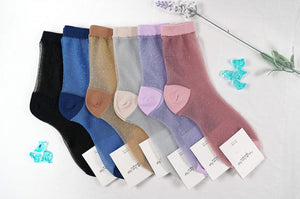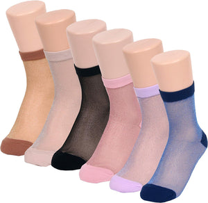 6 Pairs Glitter Sheer Mesh Transparent Socks Women - Ultrathin See Through Lace Elastic Ankle Socks