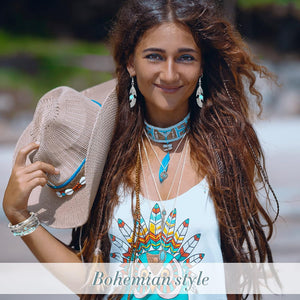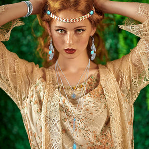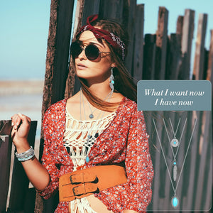 The multi-layered pendant necklace, multi-strand wrap bracelet and retro boho earrings can be worn together or matched with other jewelry, bringing you more stylish and eye-catching appearances.
