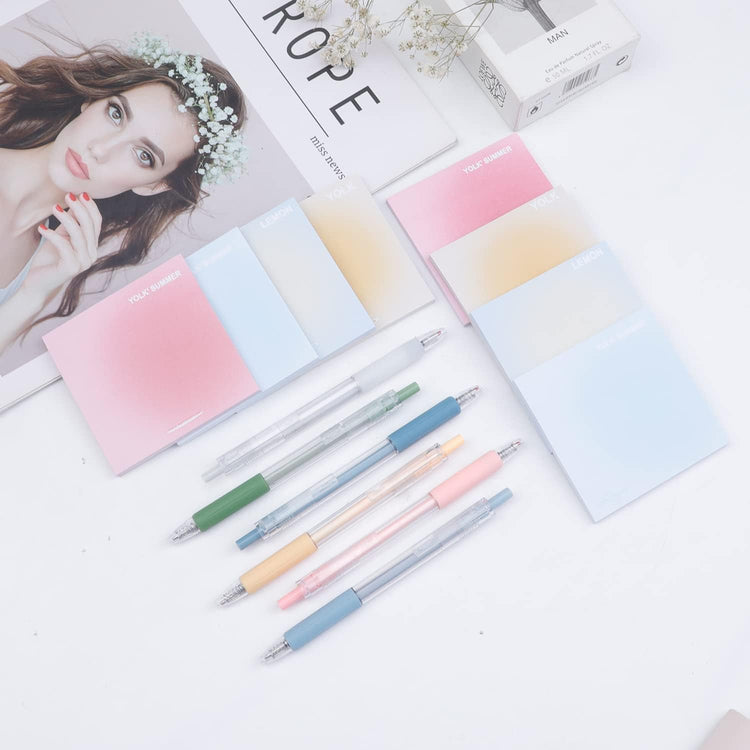 - 💛What will you get- 6pcs gel pens + 8pcs colored sticky notes(50 sheets each pad), Meet your daily work and study.
