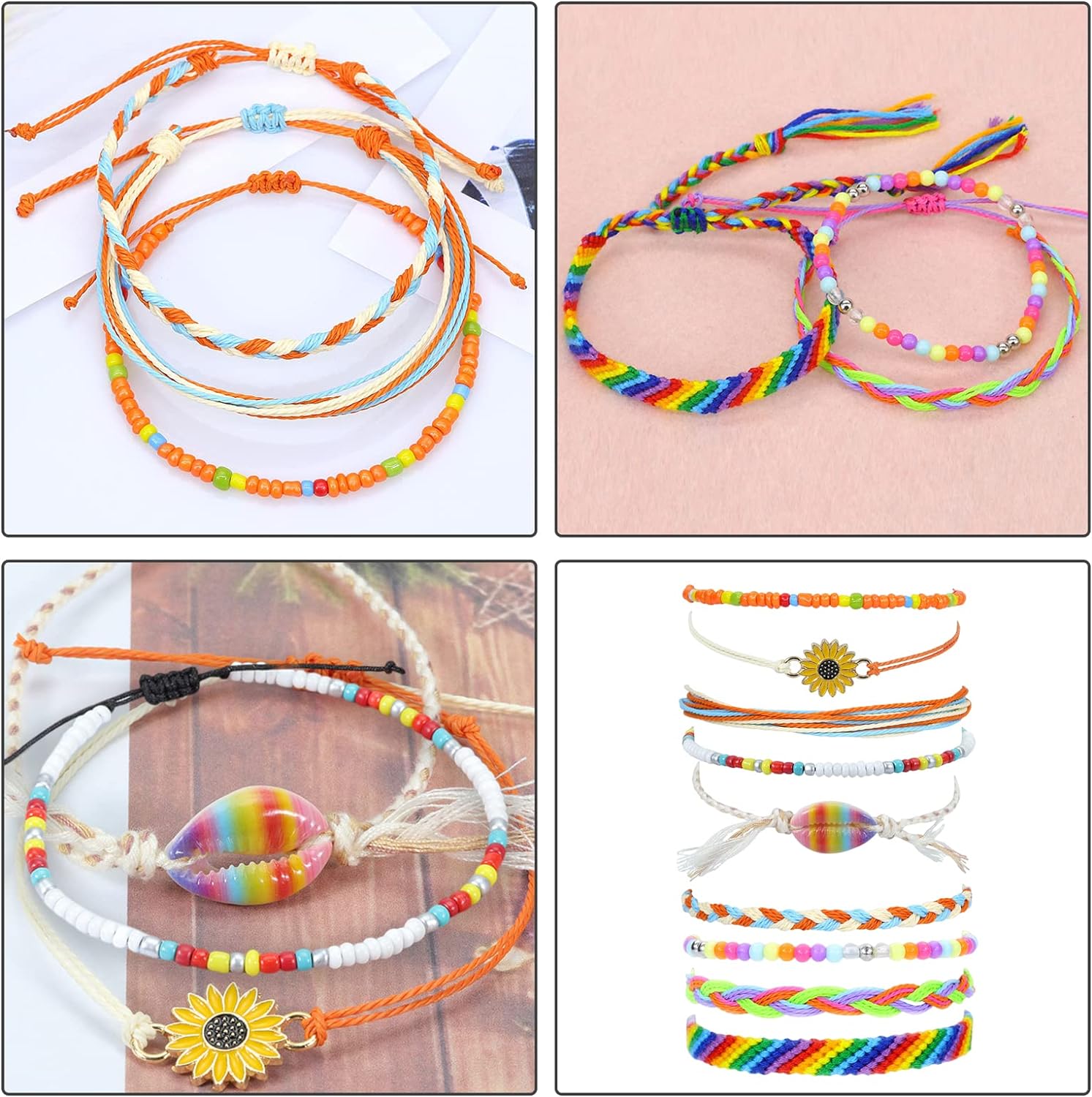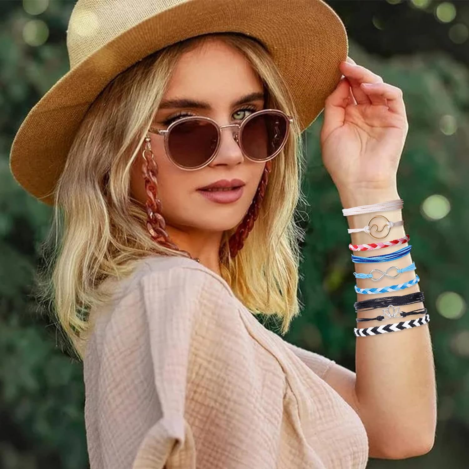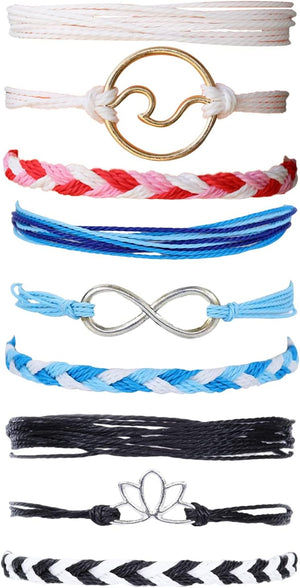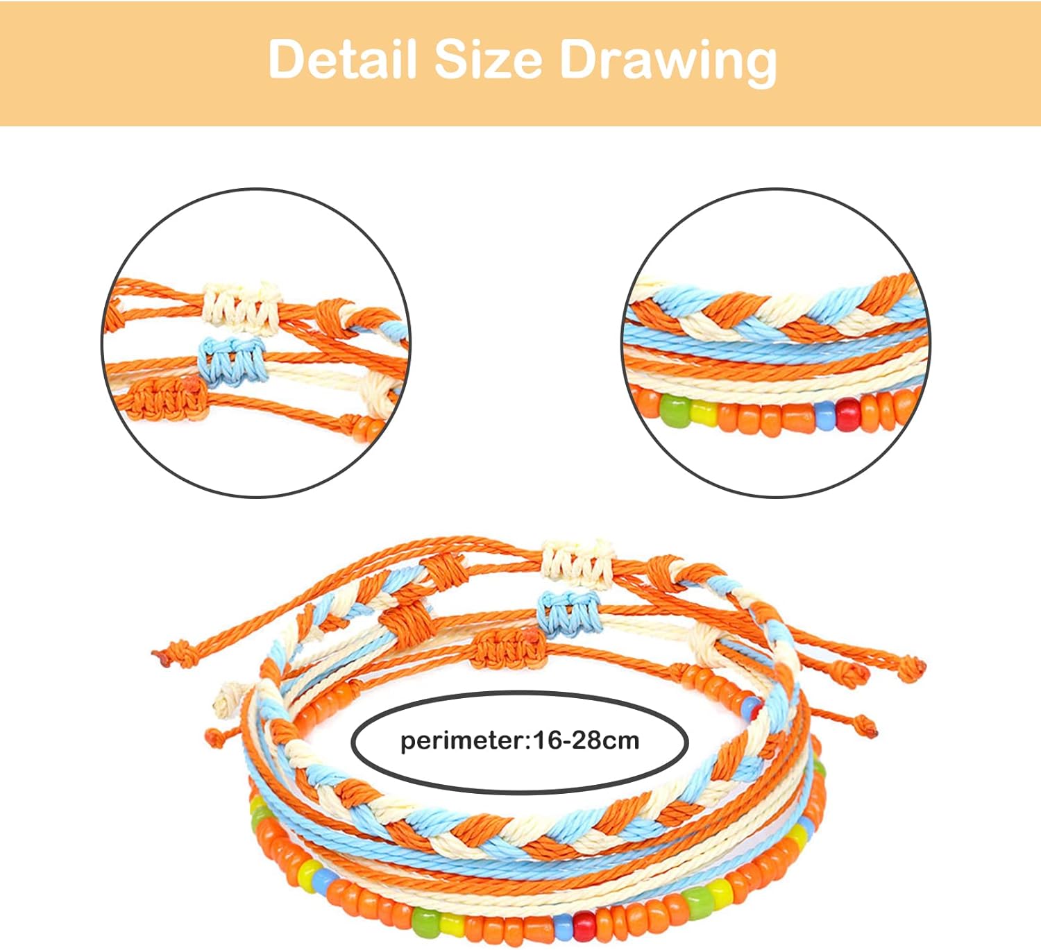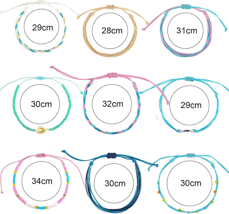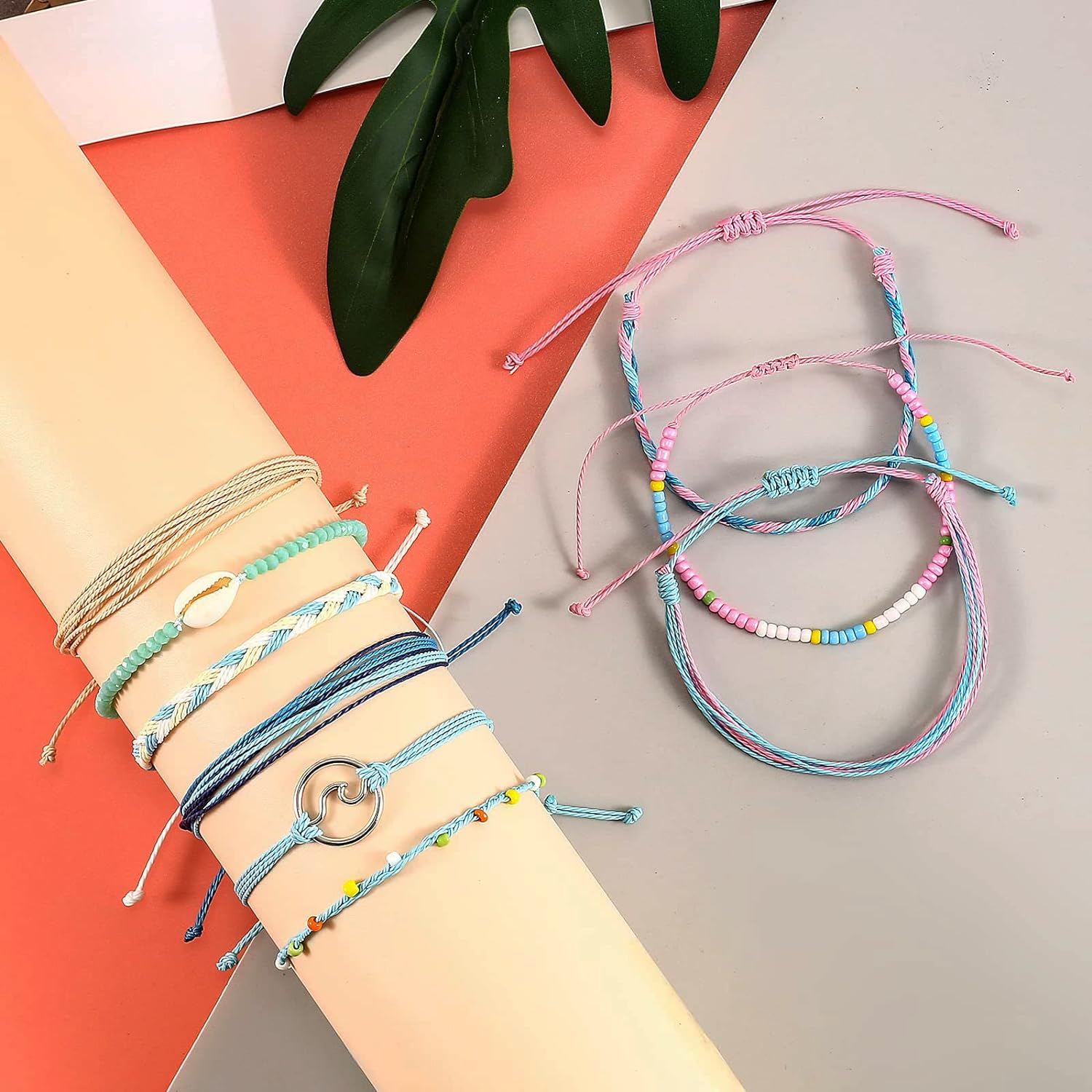 9Pcs Handmade Braided Beach Bracelet Set, Wave Bracelets for Women, Cute Bohemian Braided Rope Bracelets, Beach Bracelets Ocean Bracelets Anklet Bracelets for Women, Women's Anklets Bracelets, Adjustable Bracelets for Women Girls