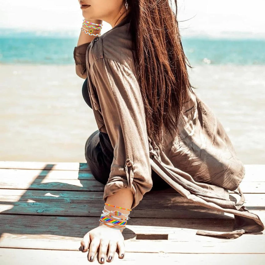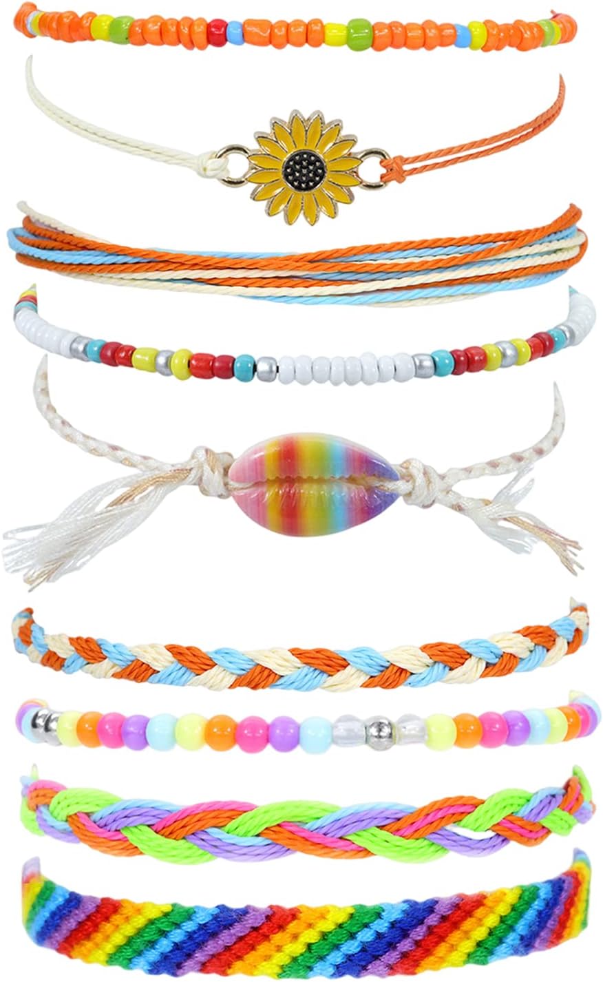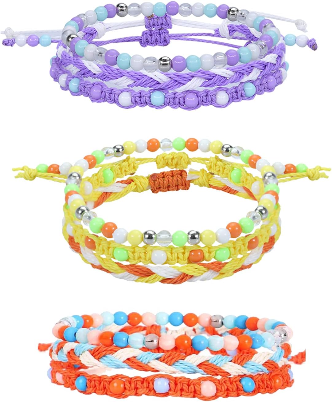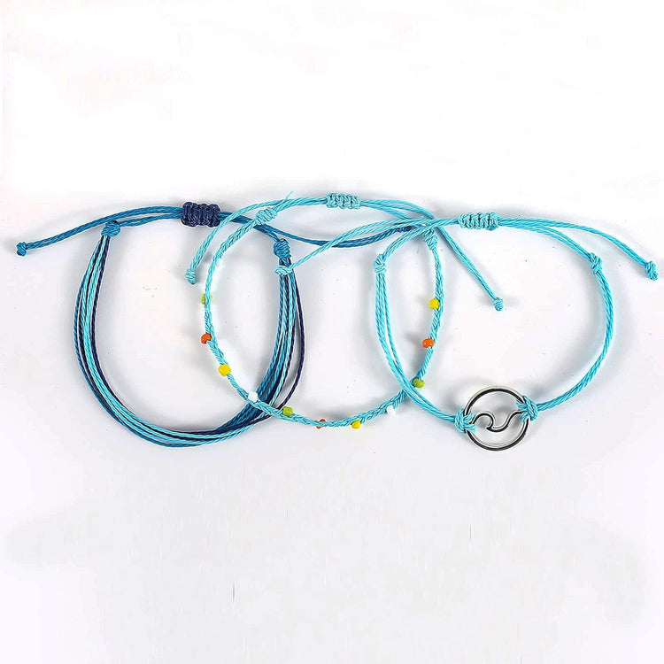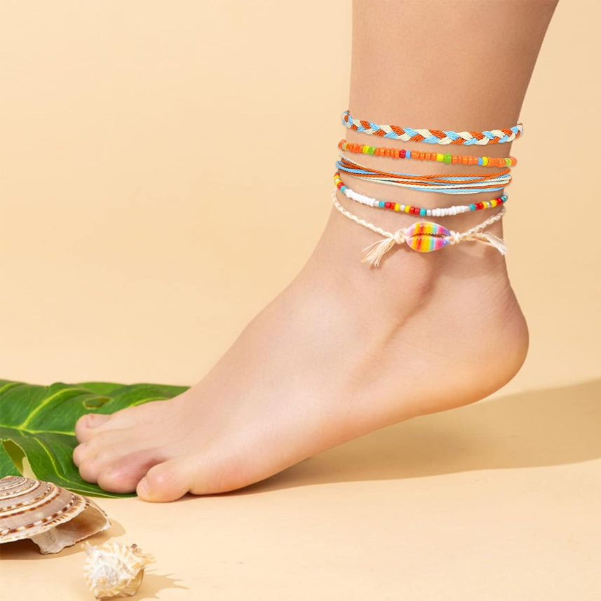 9Pcs Handmade Braided Beach Bracelet Set, Wave Bracelets for Women, Cute Bohemian Braided Rope Bracelets, Beach Bracelets Ocean Bracelets Anklet Bracelets for Women, Women's Anklets Bracelets, Adjustable Bracelets for Women Girls