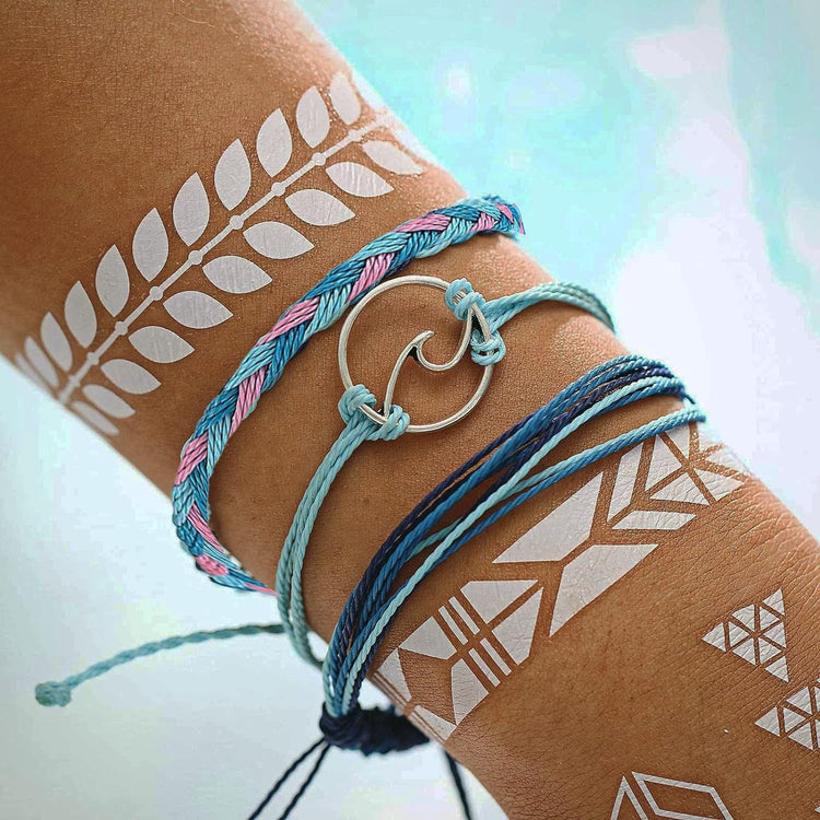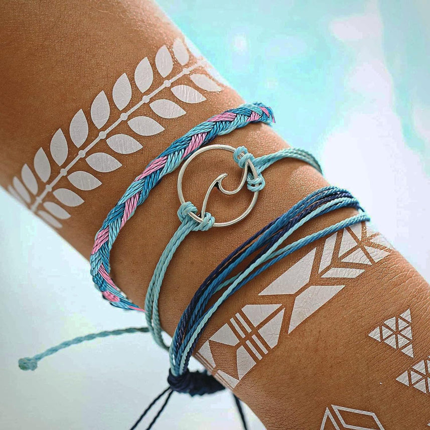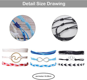 9Pcs Surfer Wave Bracelets Summer Beach Bracelets for Teen Girls Adjustable Waterproof Handmade Bracelets Braided String Bracelets Friendship Bracelets Boho Wave Anklet Bracelets for Women Teen Girls