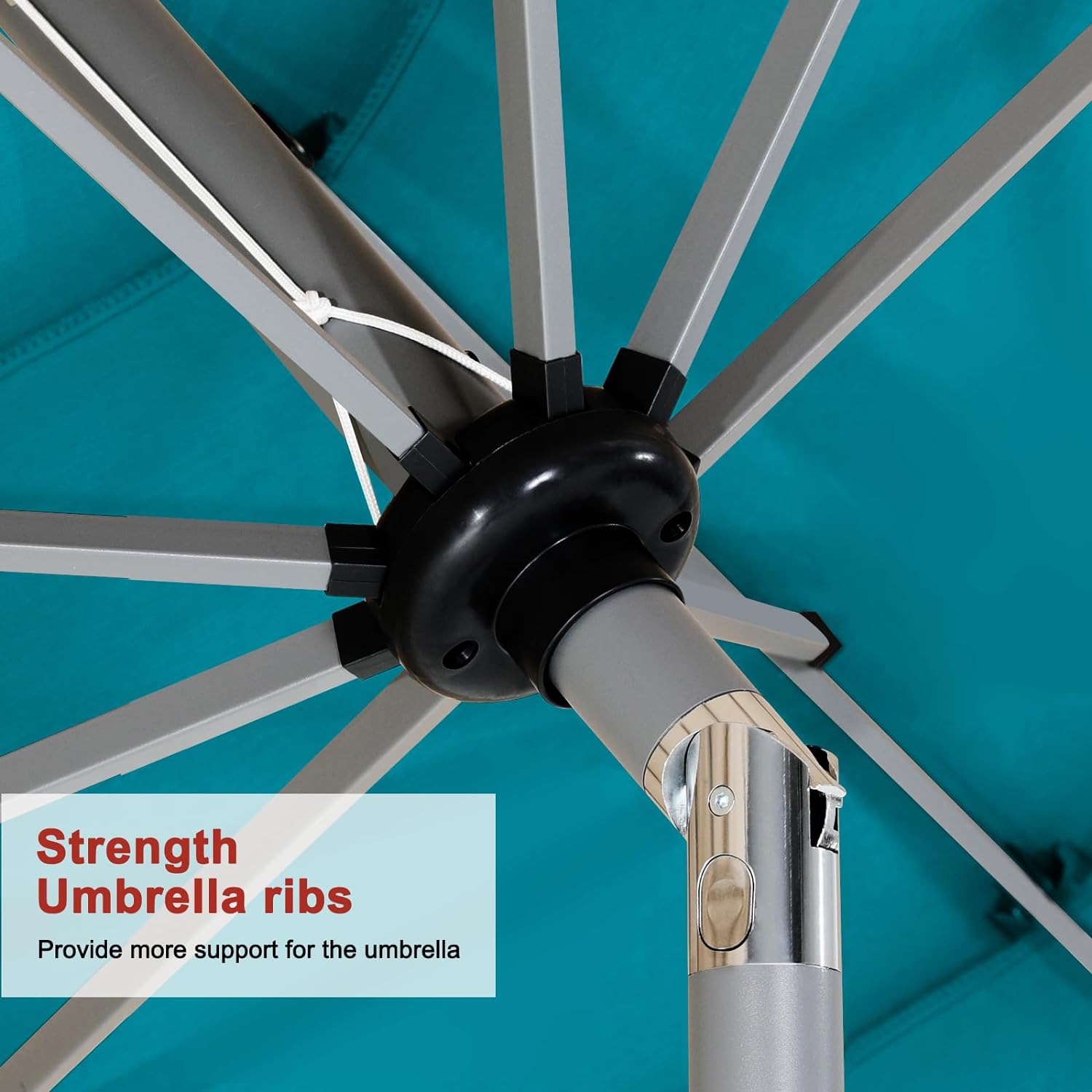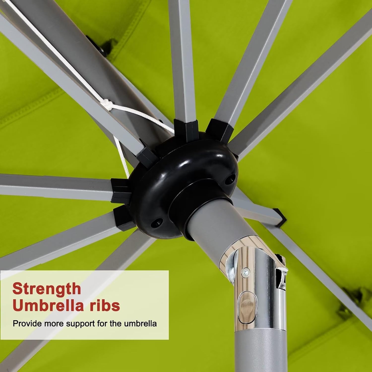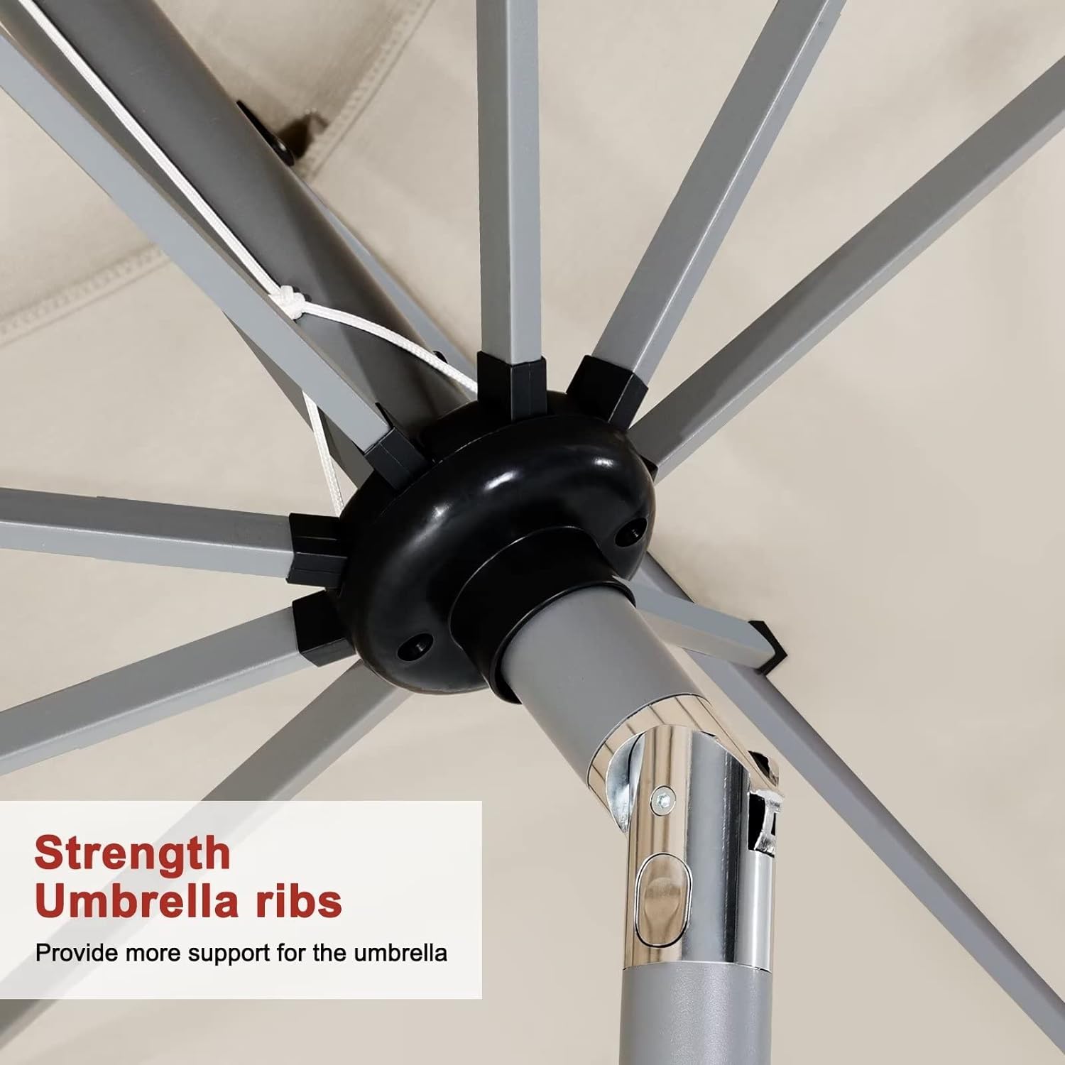 - Threaded Connection and Sturdy Ribs: Threaded connection pole increased secure,make umbrellas not easy to snap. Powder coated sturdy ribs to avoid rust and provides stronger support for long time use.1.5in diameter strong pole to match your patio table.