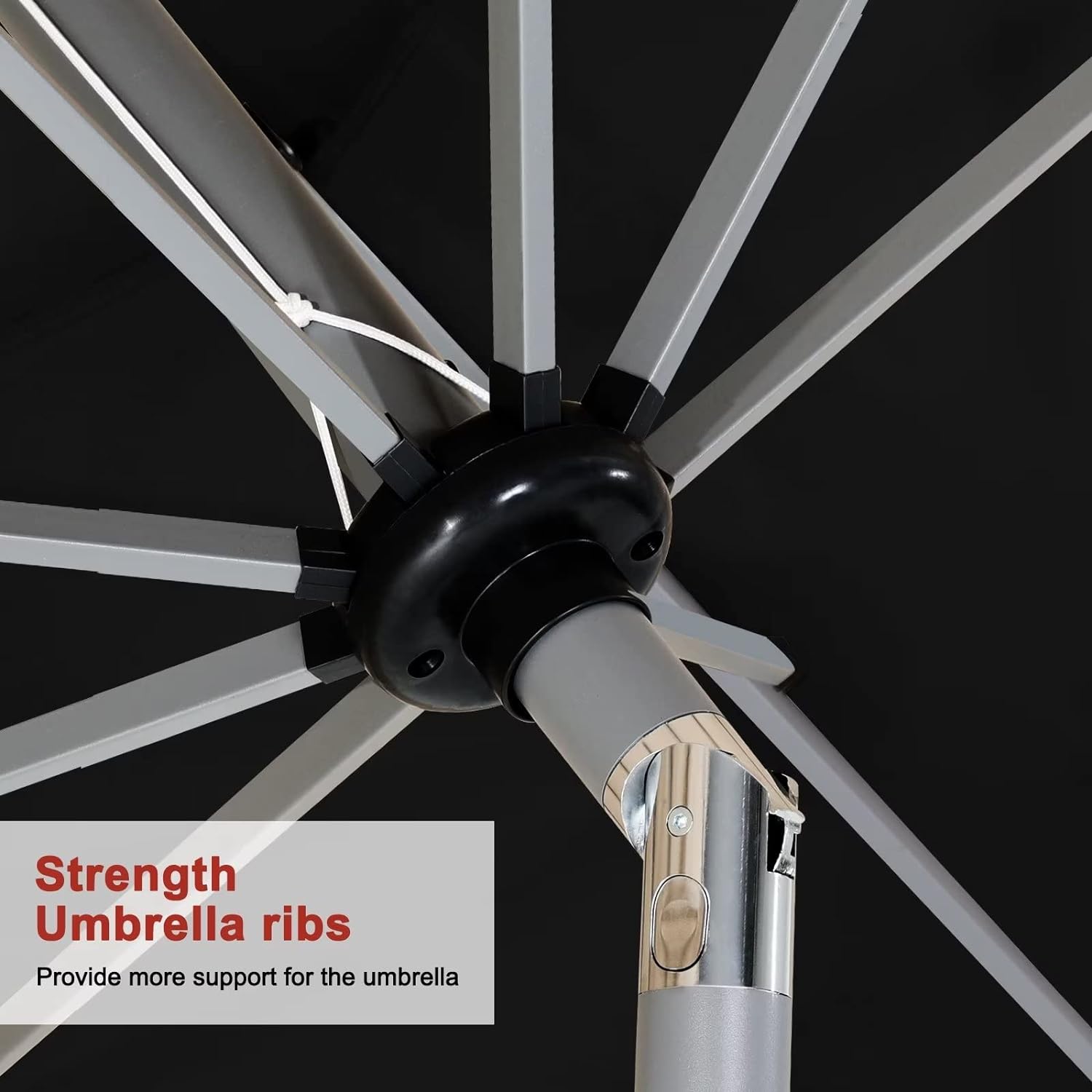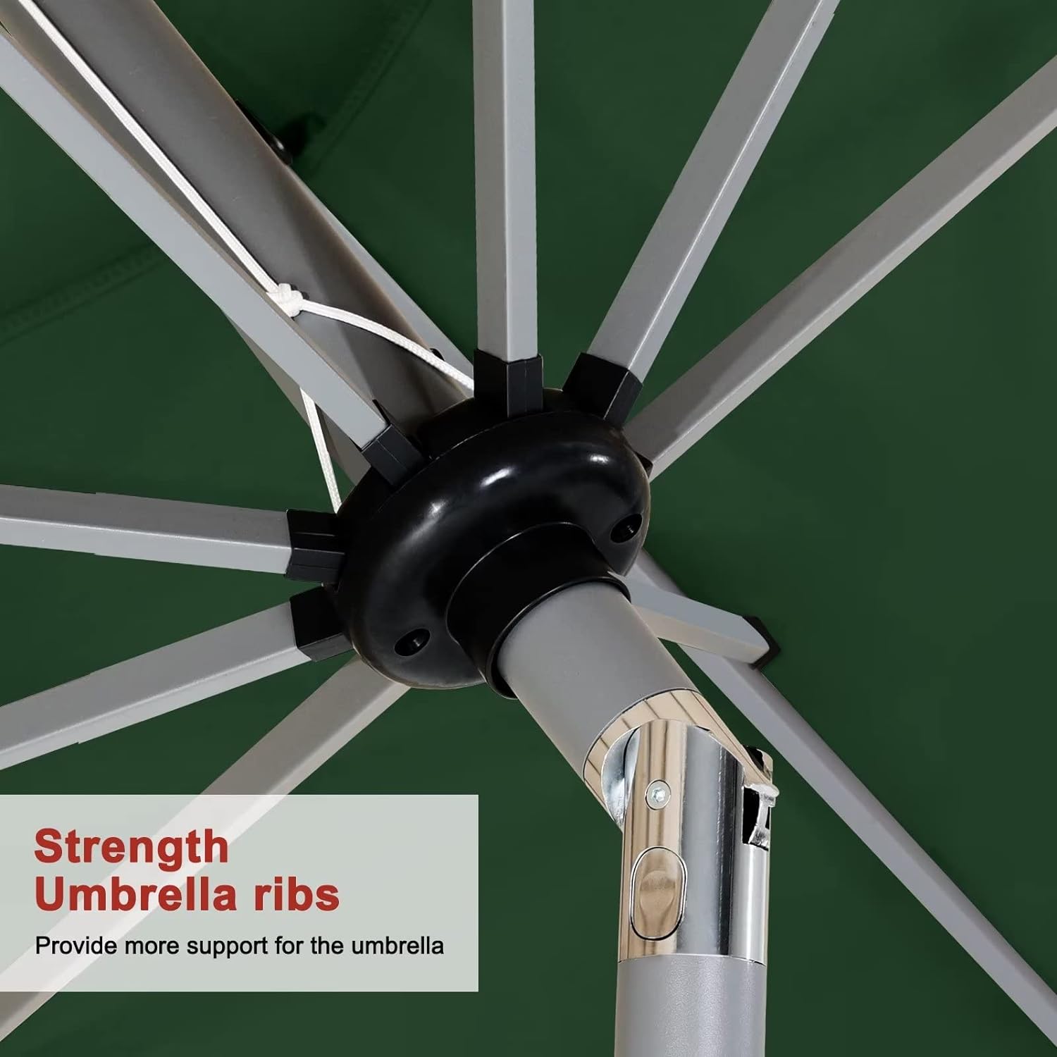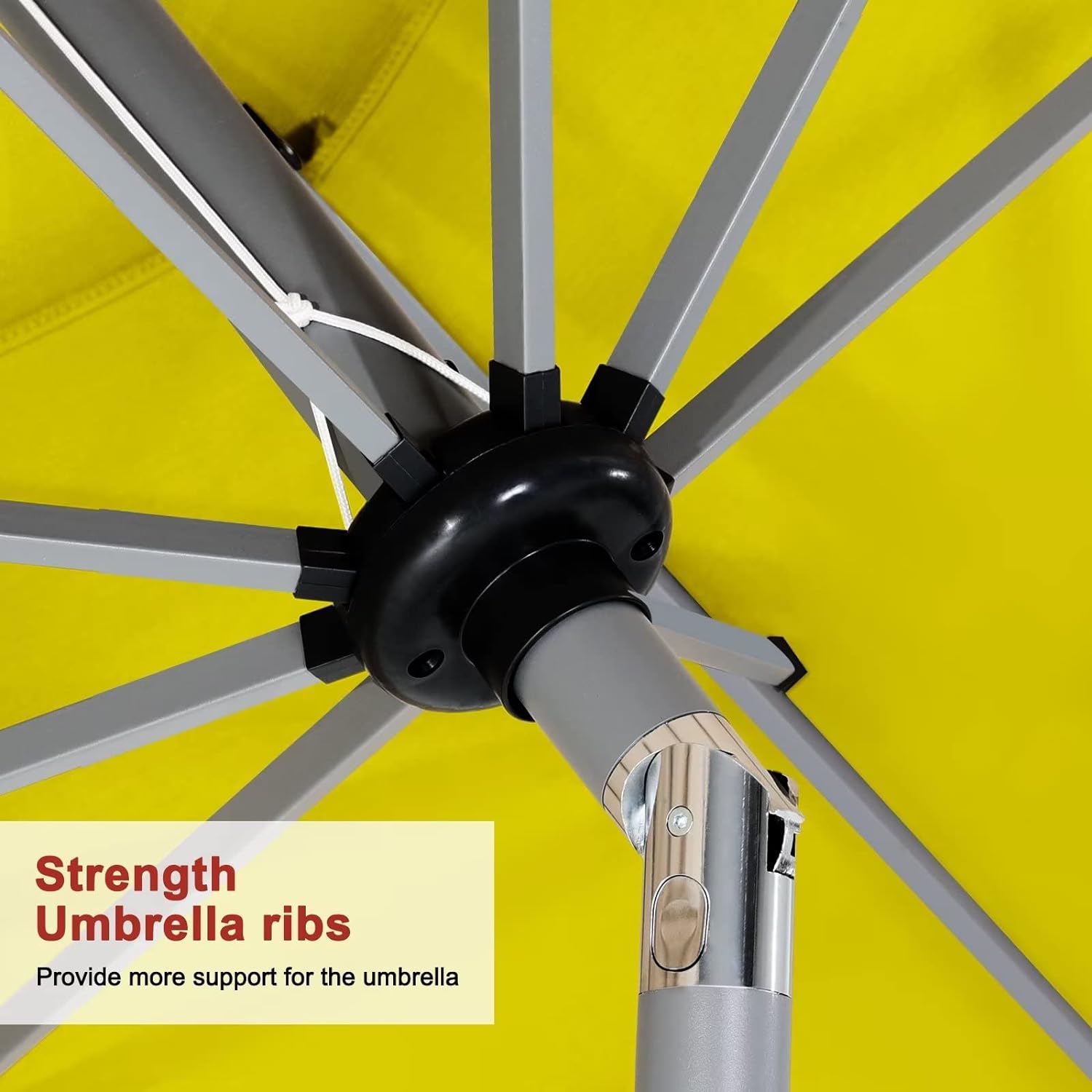- Threaded Connection and Sturdy Ribs: Threaded connection pole increased secure,make umbrellas not easy to snap. Powder coated sturdy ribs to avoid rust and provides stronger support for long time use.1.5in diameter strong pole to match your patio table.