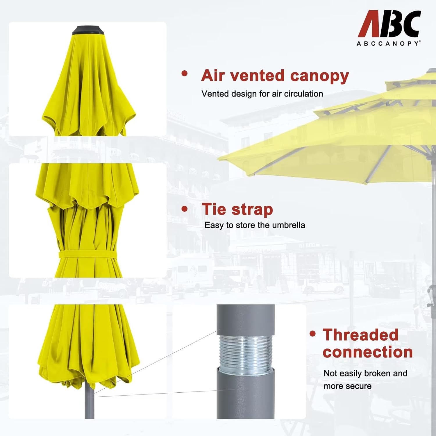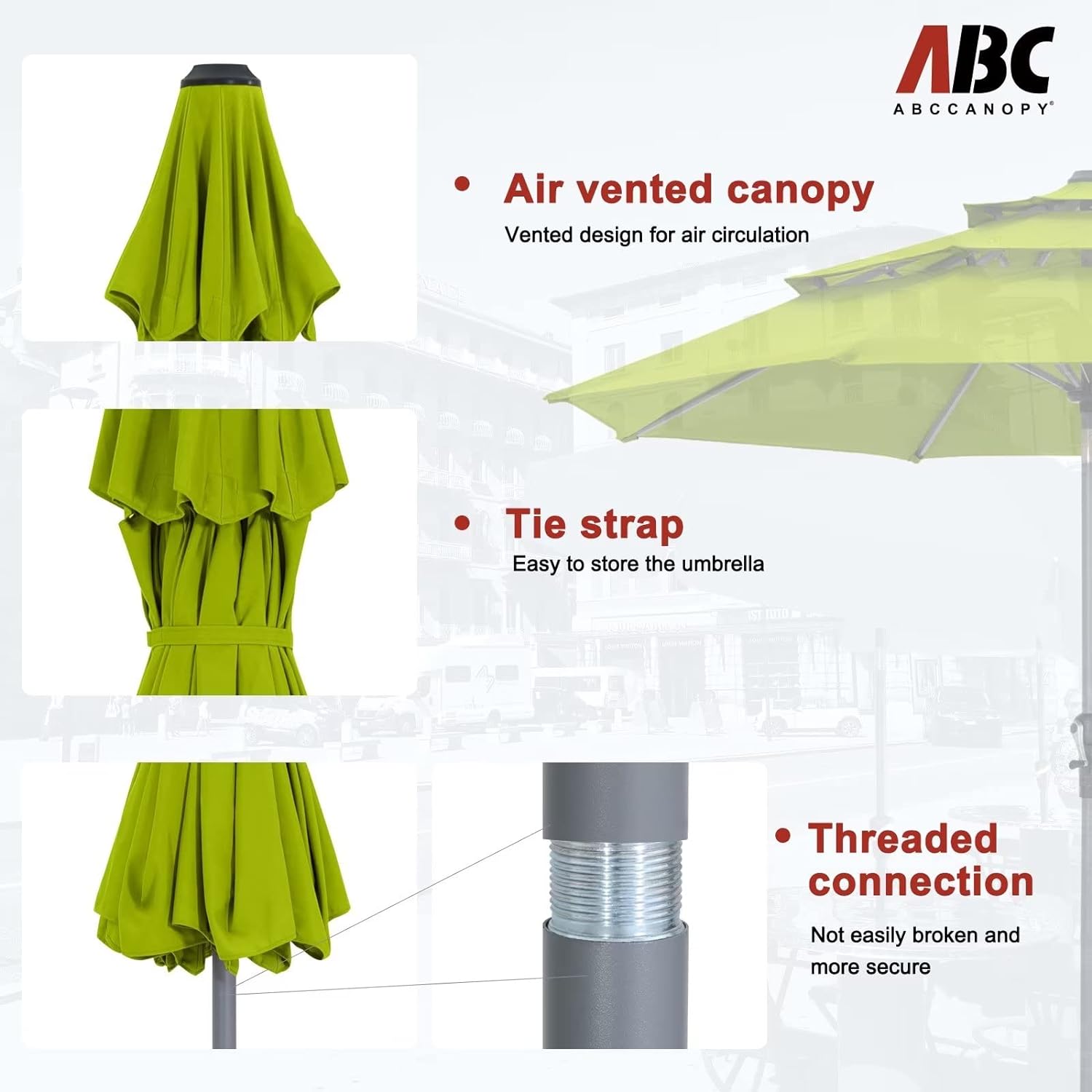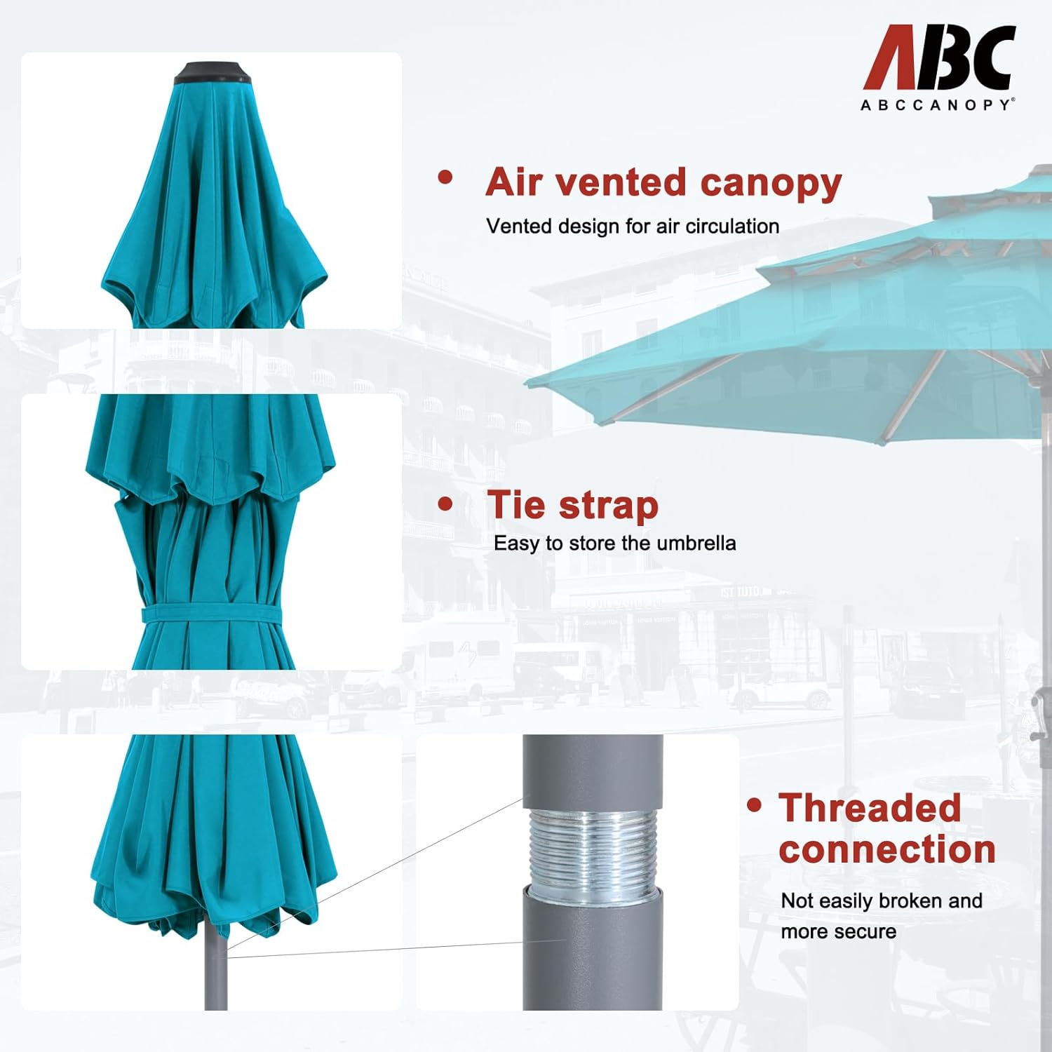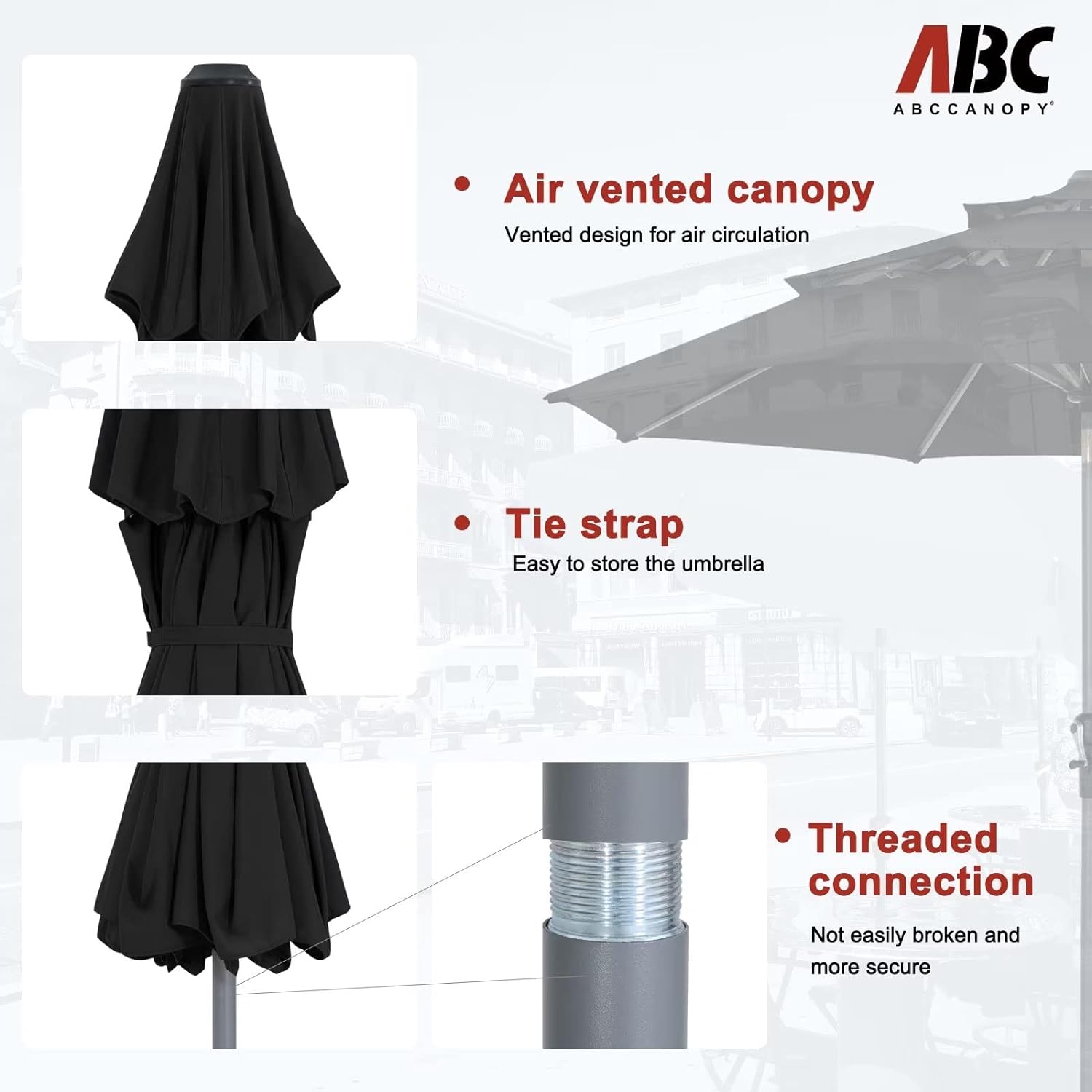 - Note: The umbrella base is not included in this item, please purchase separately if you need it or you can buy the ABCCANOPY umbrella base (ASIN:B0BNPRRXZJ) to match it. Suitable for various occasions, such as courtyards, gardens, restaurants, and swimming pool side.