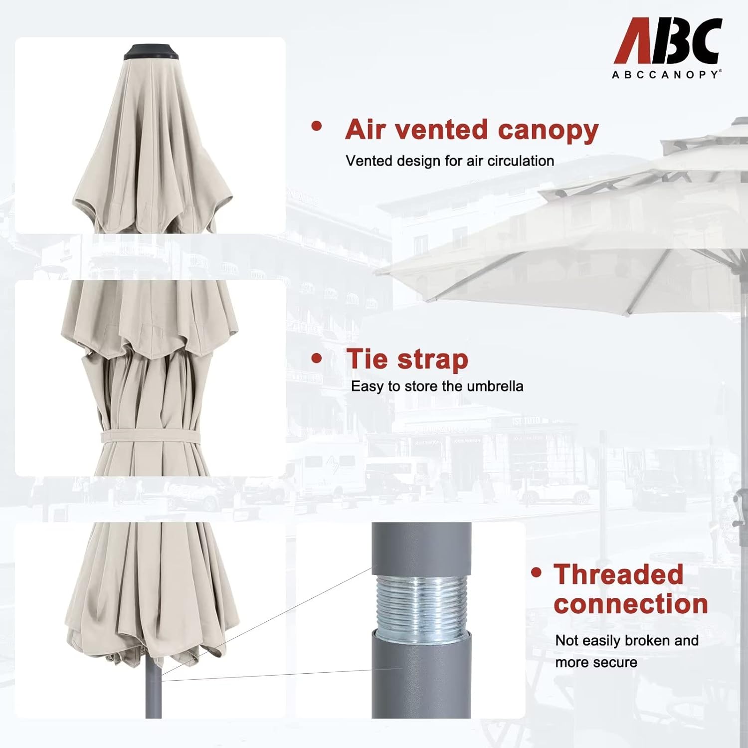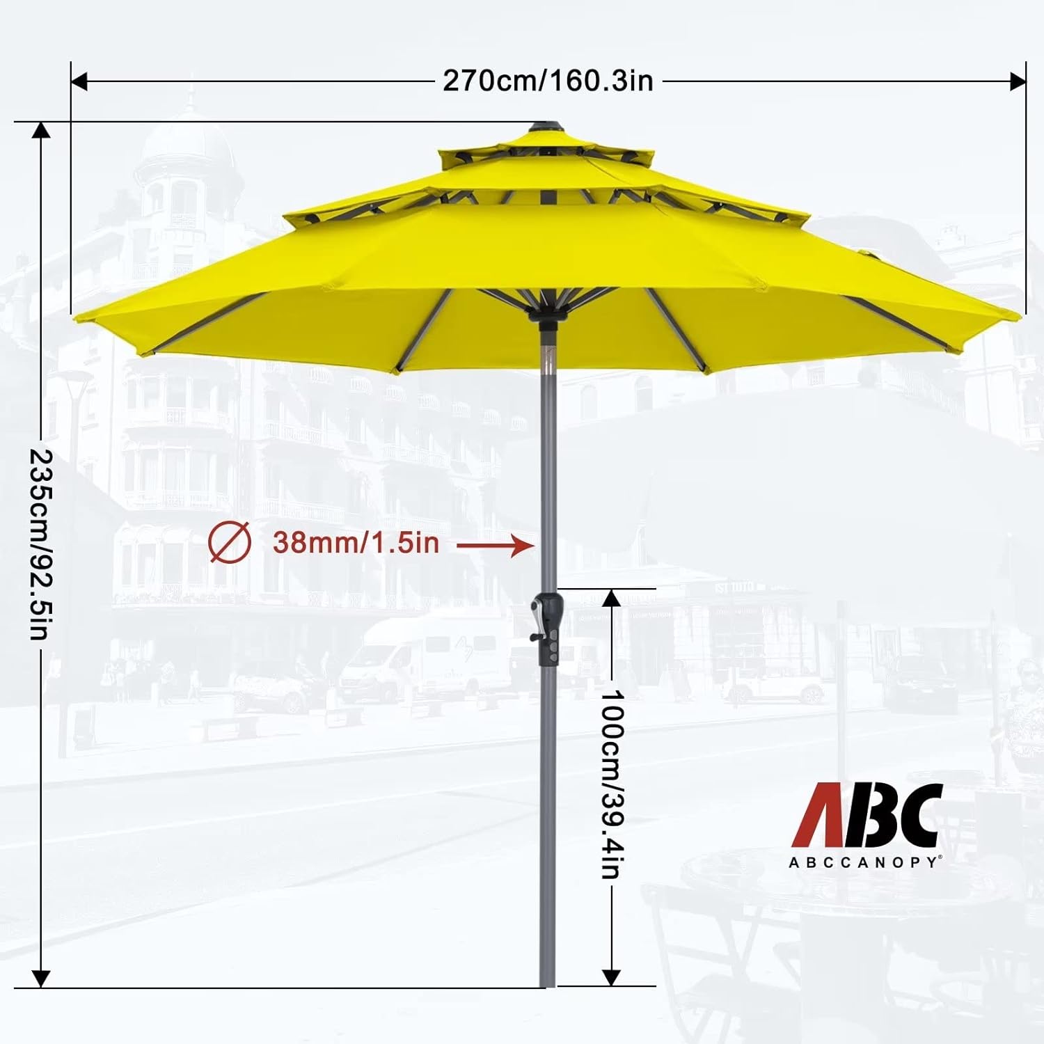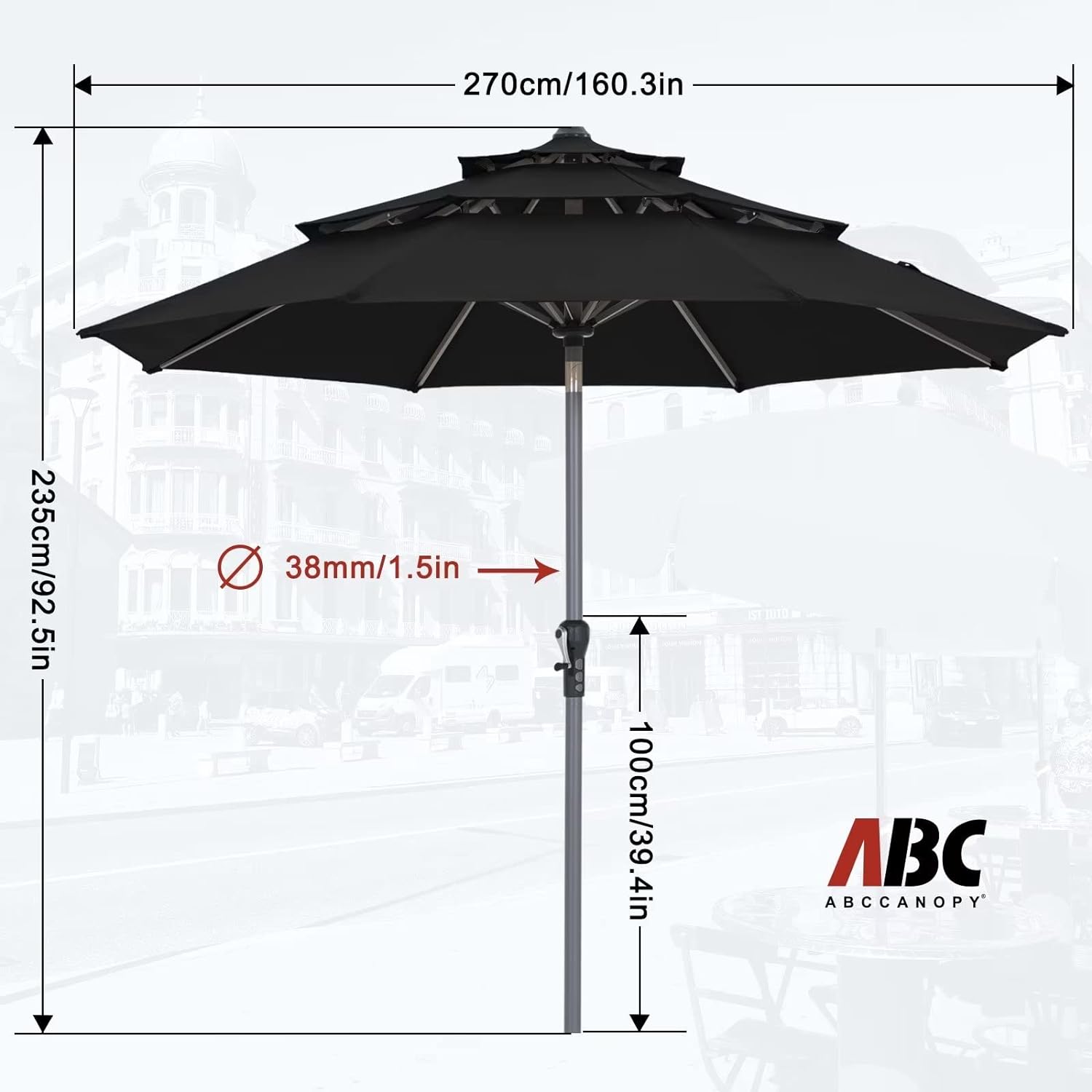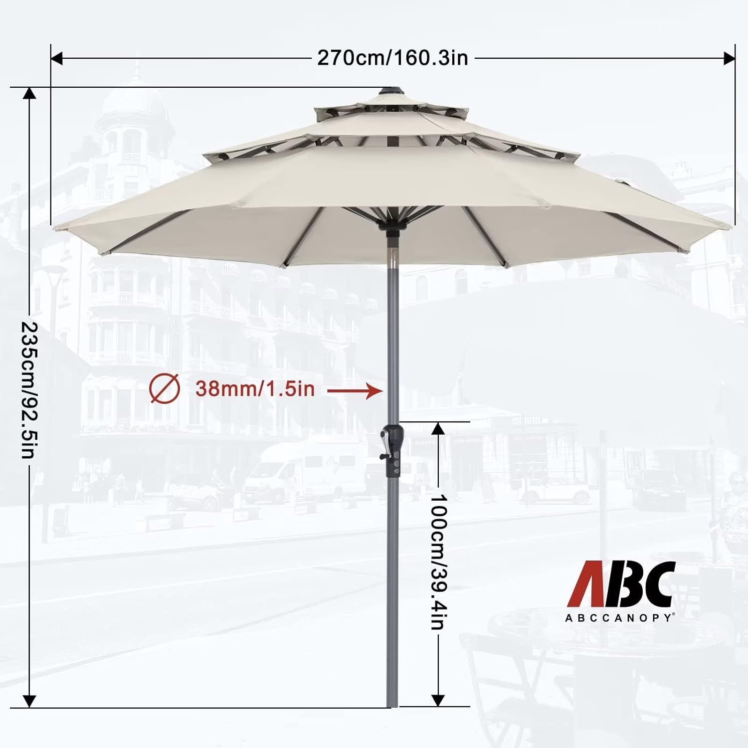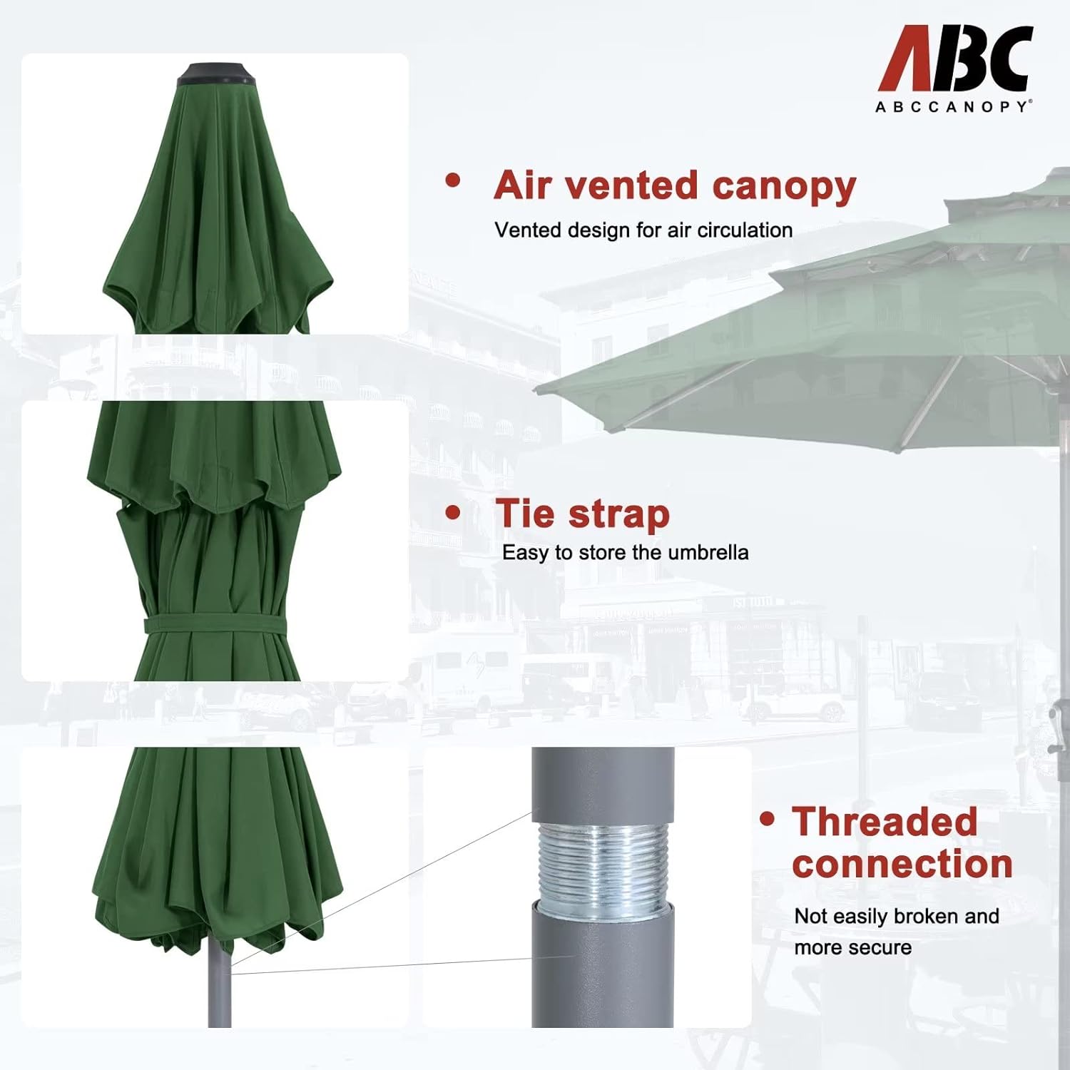 - Note: The umbrella base is not included in this item, please purchase separately if you need it or you can buy the ABCCANOPY umbrella base (ASIN:B0BNPRRXZJ) to match it. Suitable for various occasions, such as courtyards, gardens, restaurants, and swimming pool side.