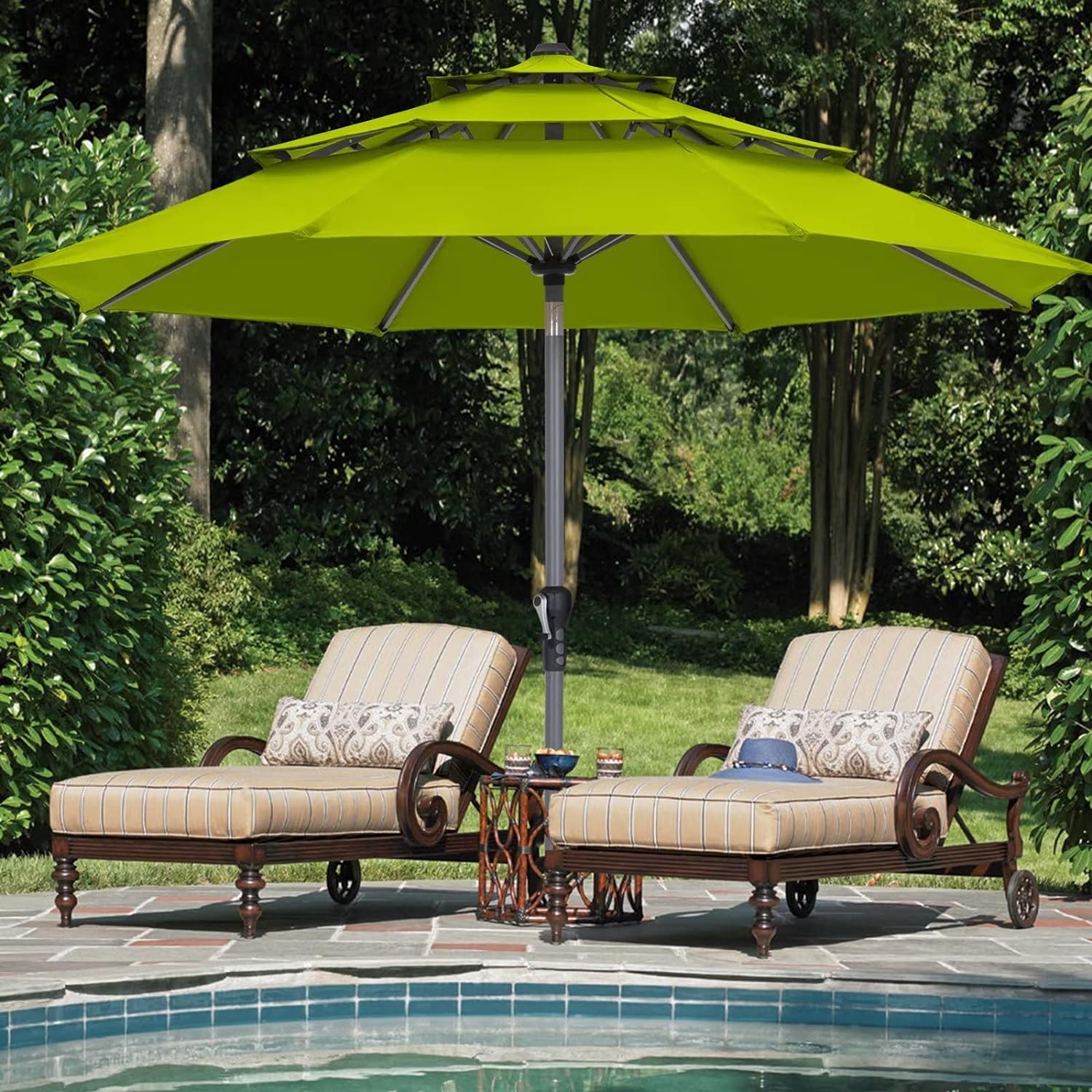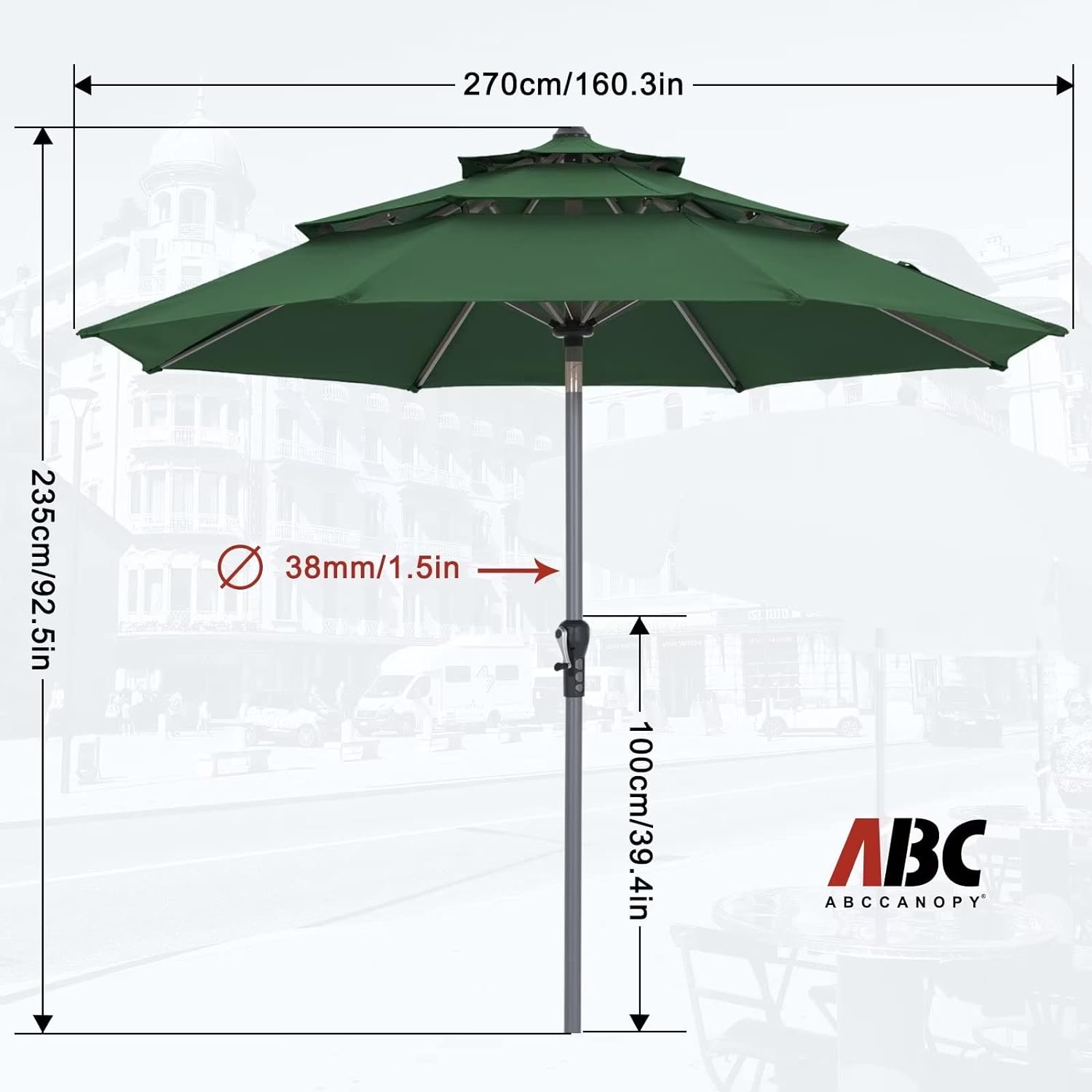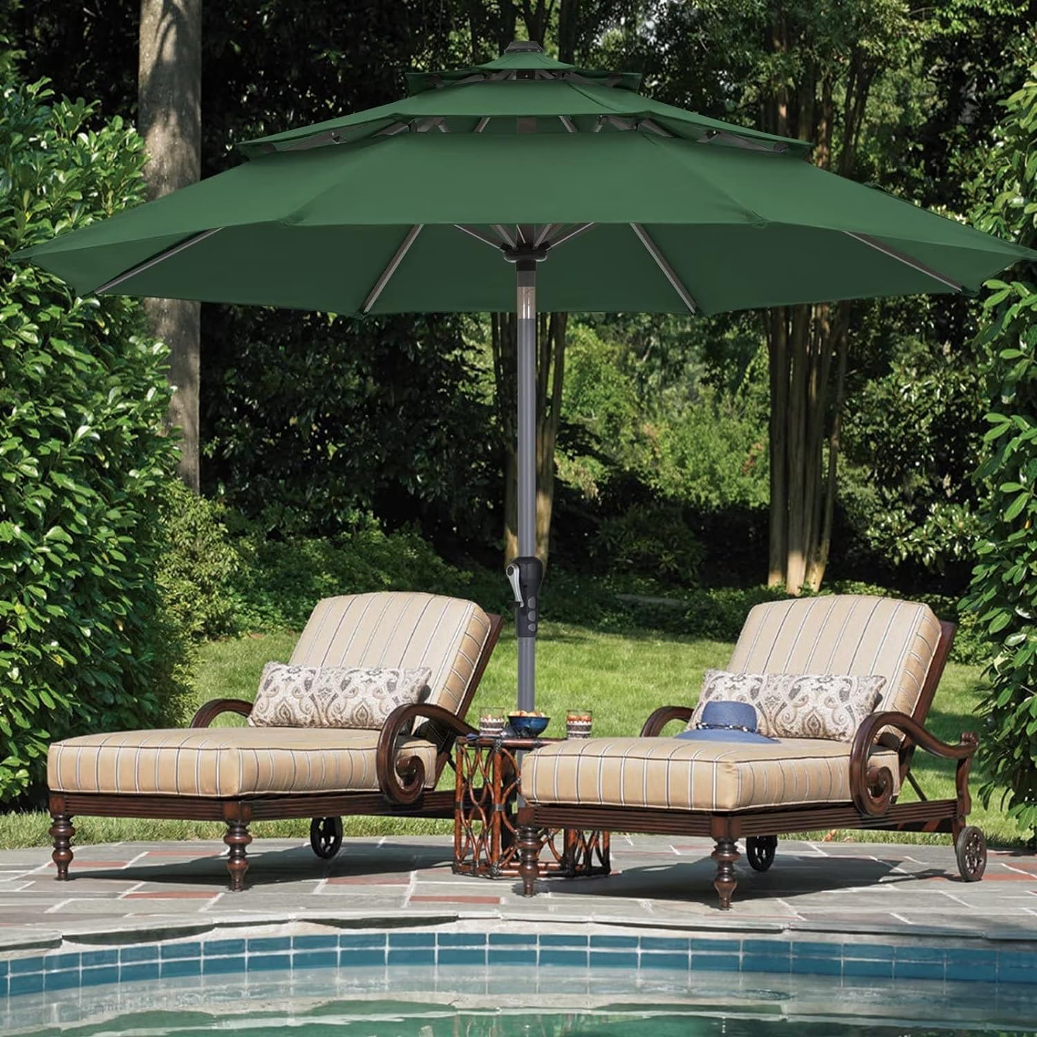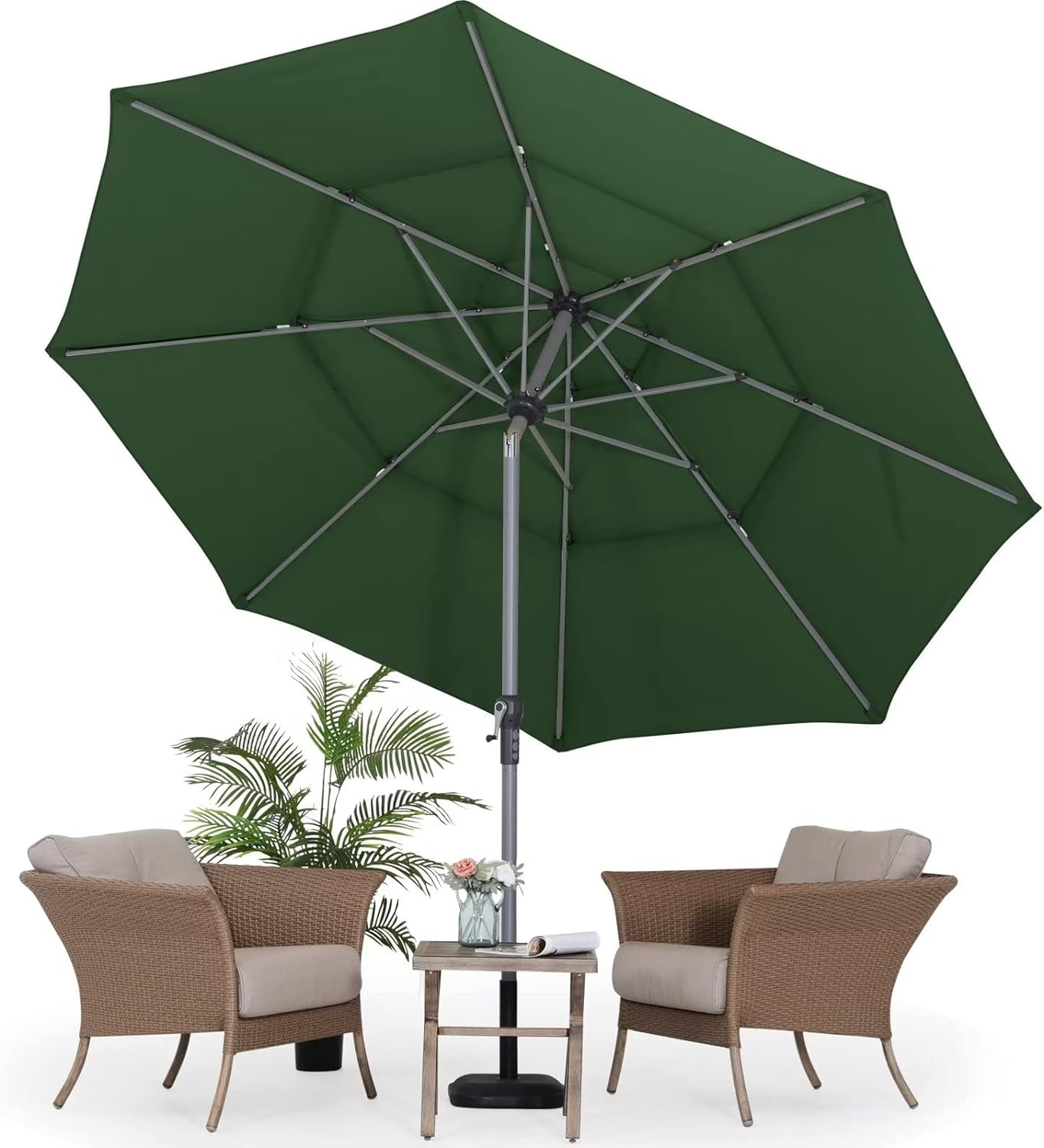 ABCCANOPY 9FT 3 Tiers Market Umbrella 3-Year-Non-Fading OLEFIN Canopy Patio Outdoor Aluminum Table Umbrella with 8 Sturdy Ribs, Forest Green
