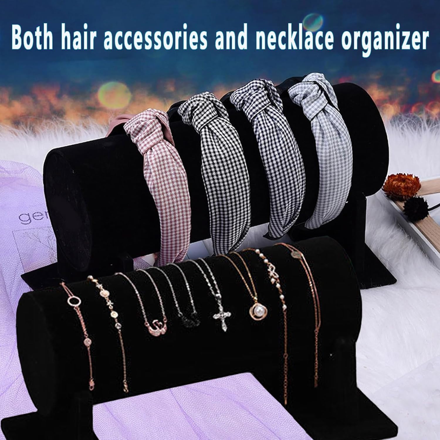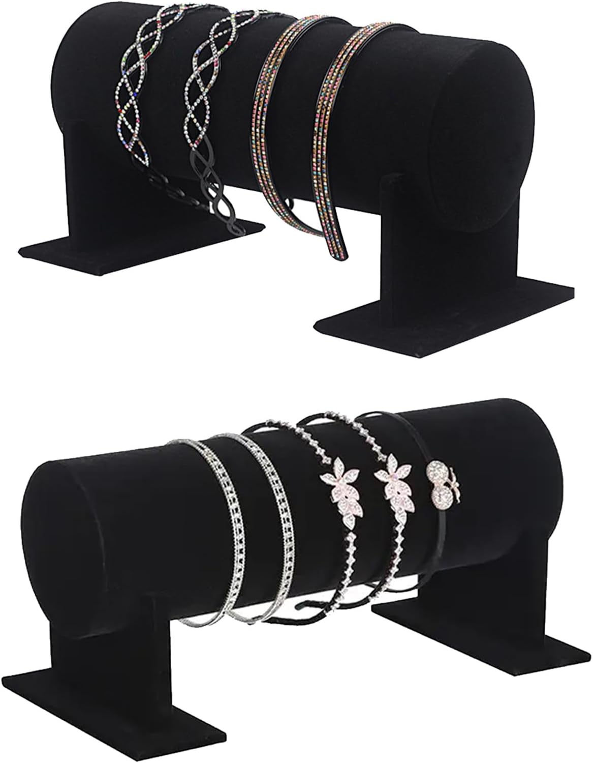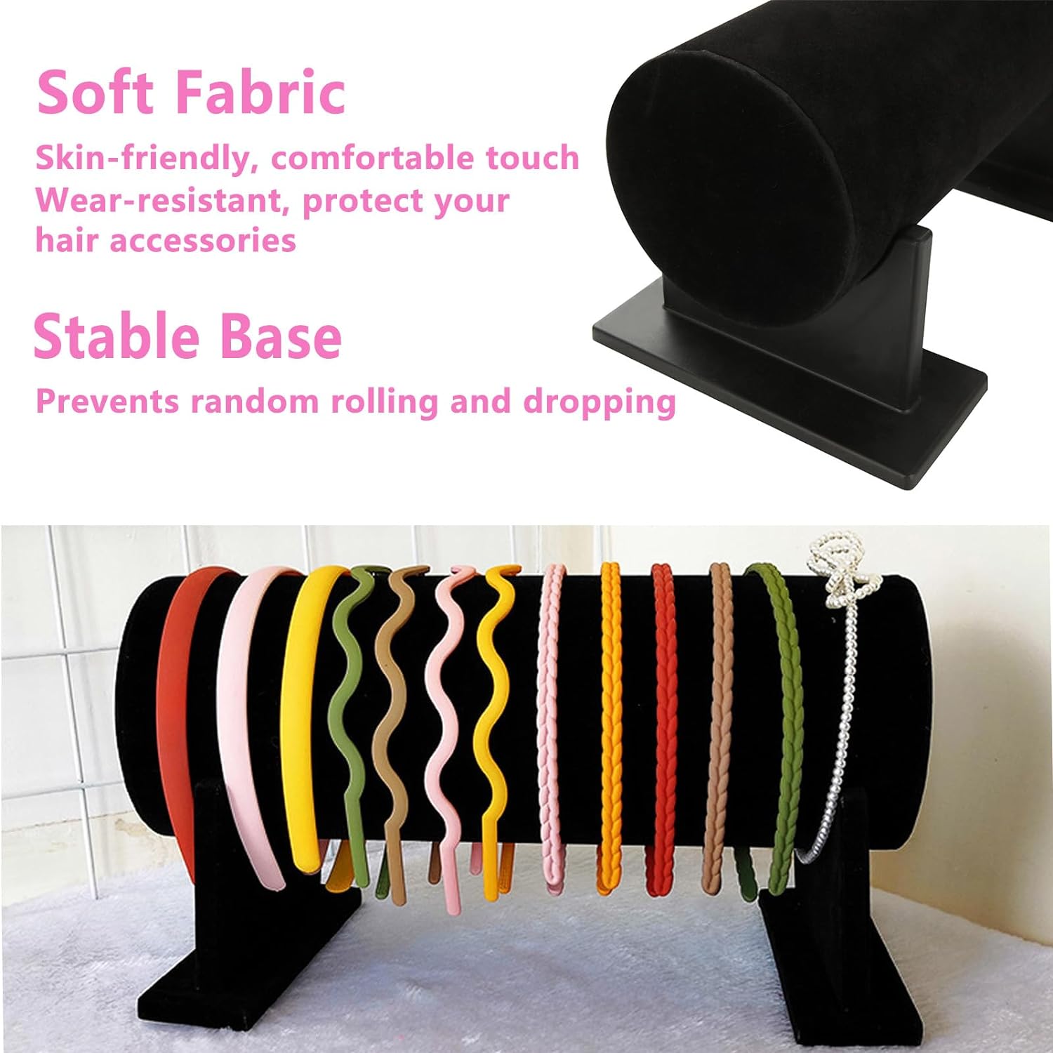 Acrux7 2 Pack Black Velvet Headband Holder Organizer for Girls and Women, 12 inch Detachable Headband Display Stand, Bracelet Storage Organizer for Jewelry, Bracelets, Hair Accessories, Hairband