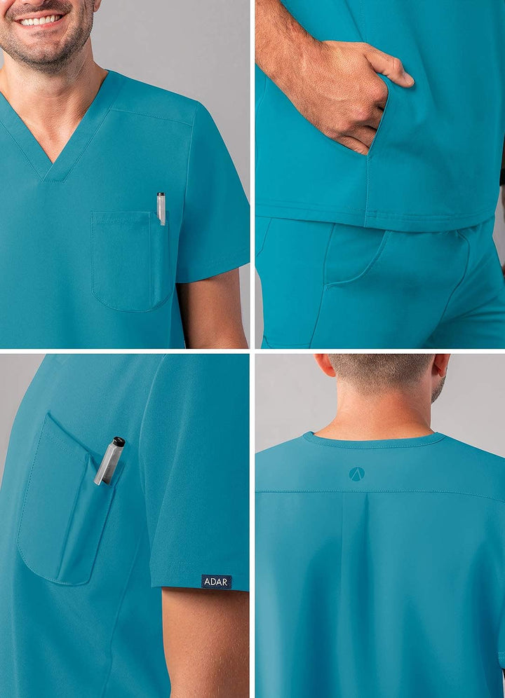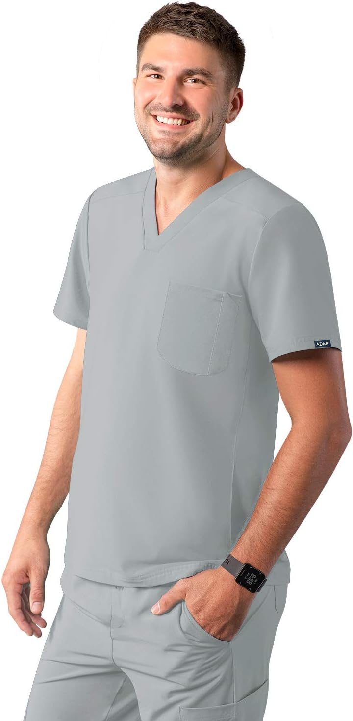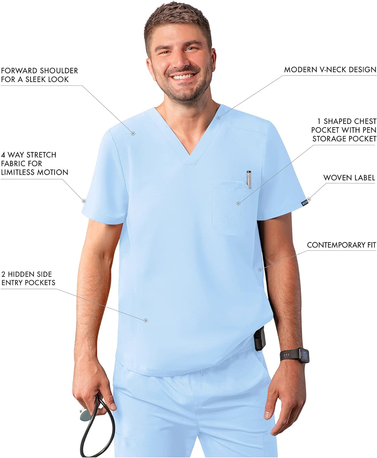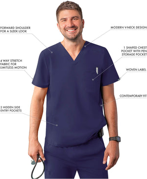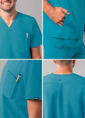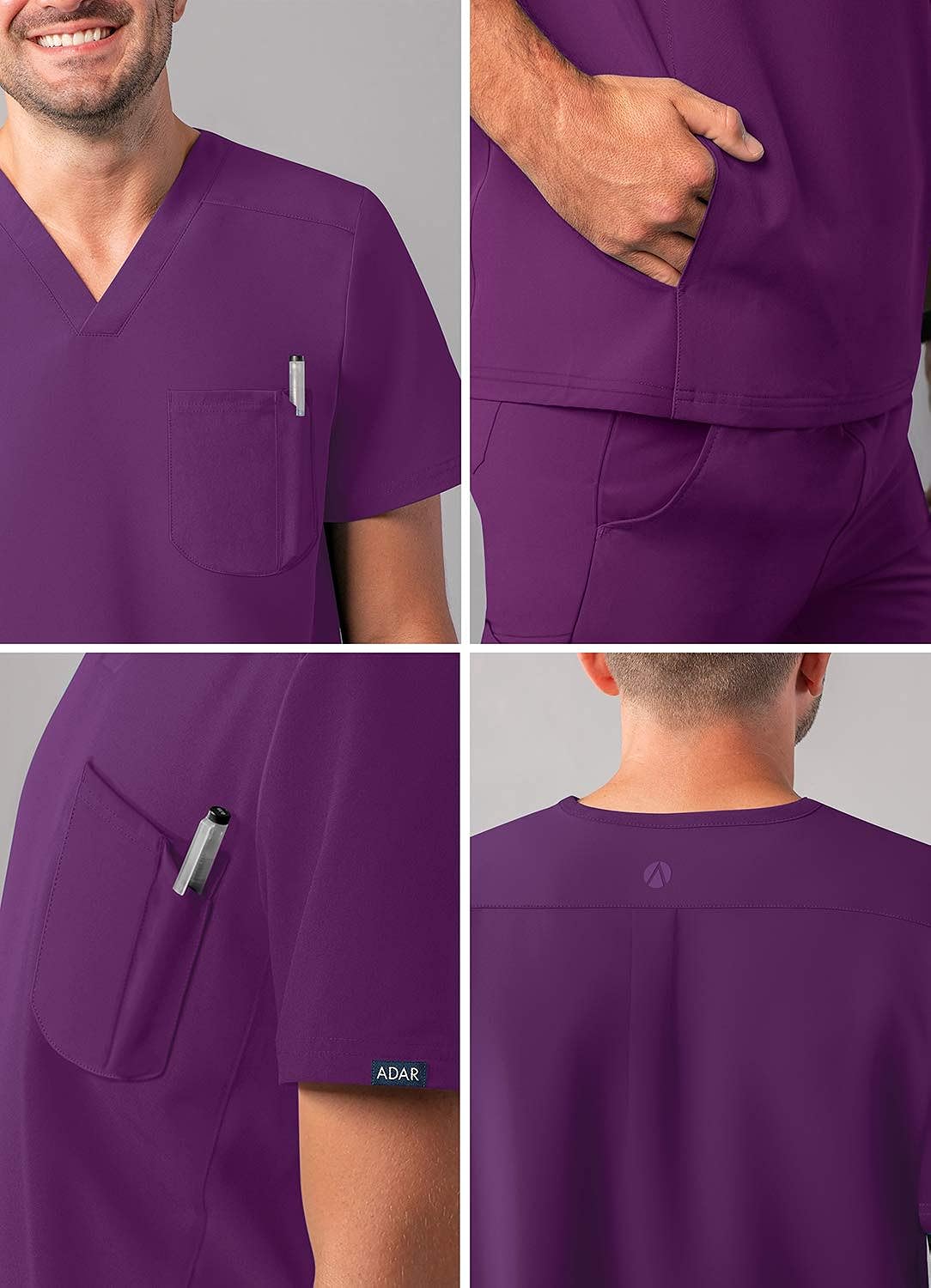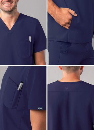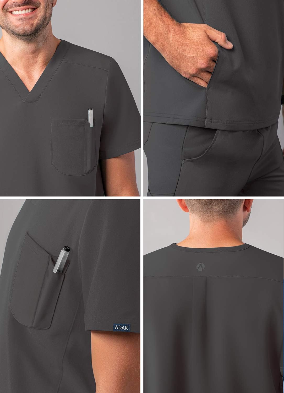 Adar Addition Scrubs for Men - Modern Multi Pocket V-Neck Scrub Top