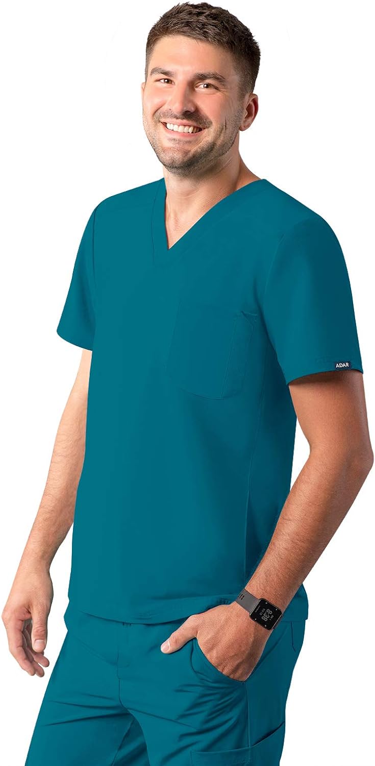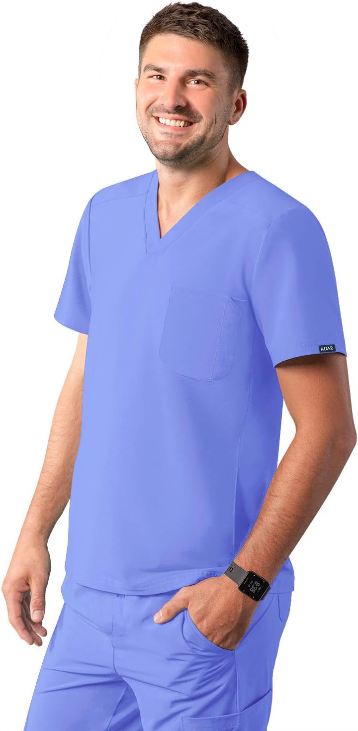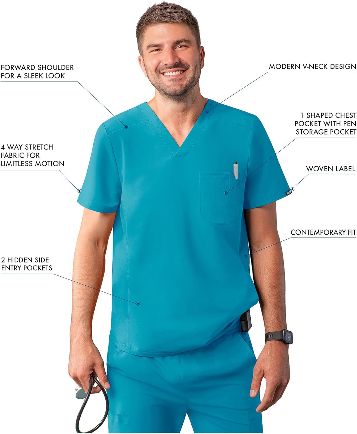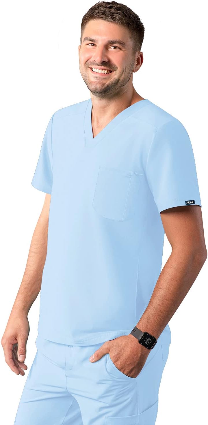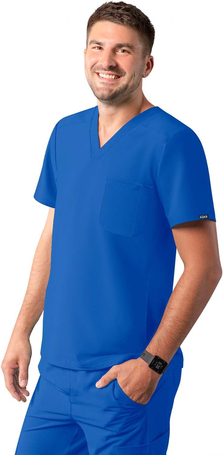 Adar Addition Scrubs for Men - Modern Multi Pocket V-Neck Scrub Top