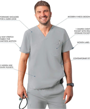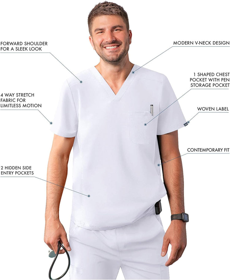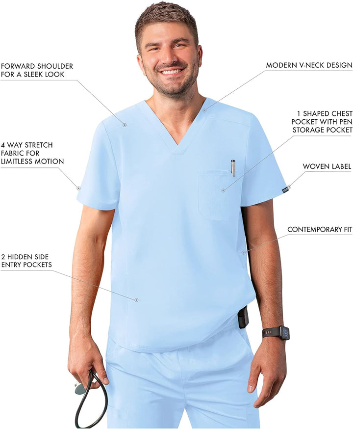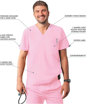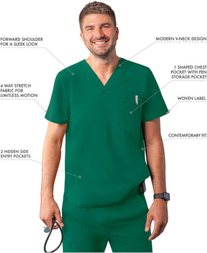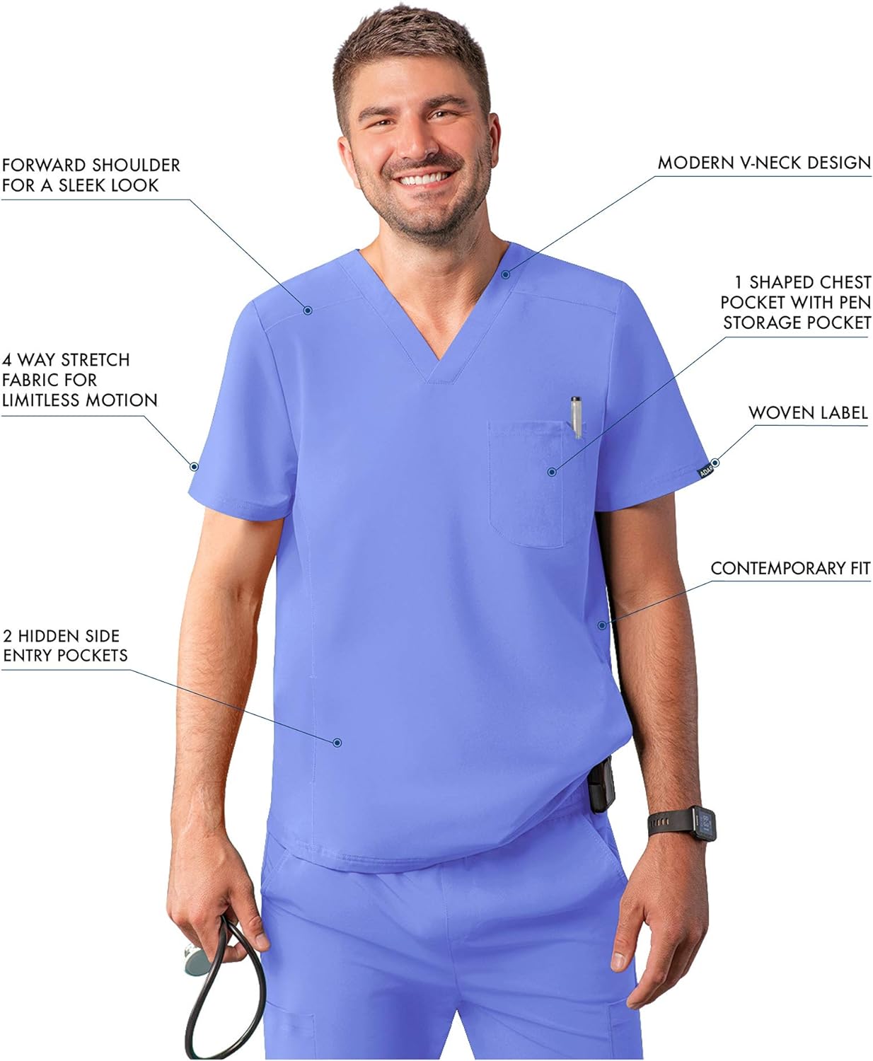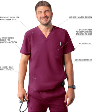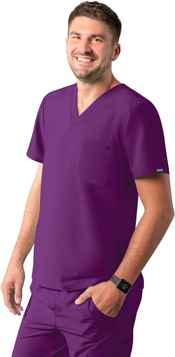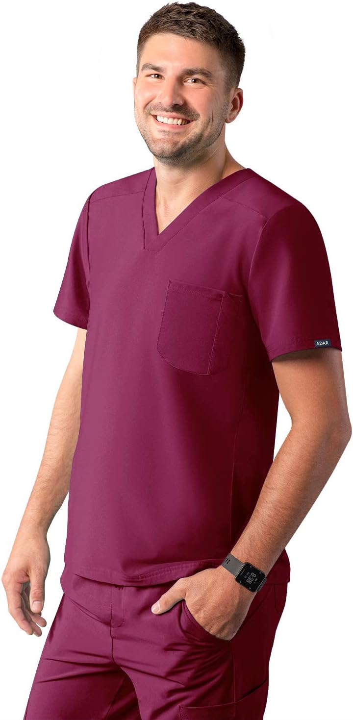 Adar Addition Scrubs for Men - Modern Multi Pocket V-Neck Scrub Top