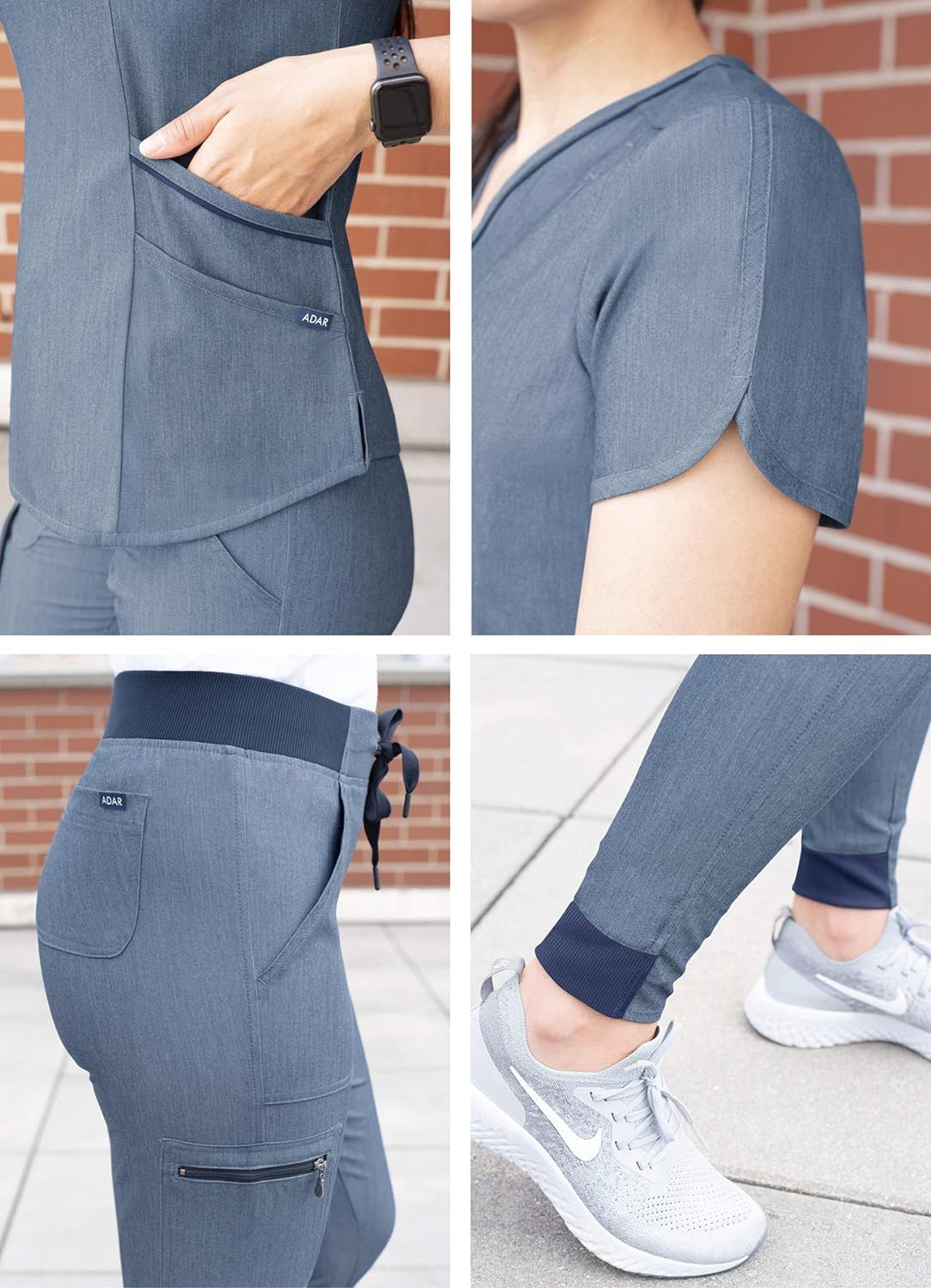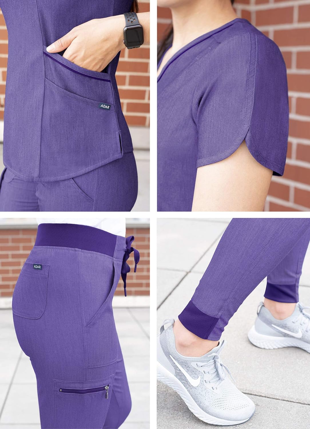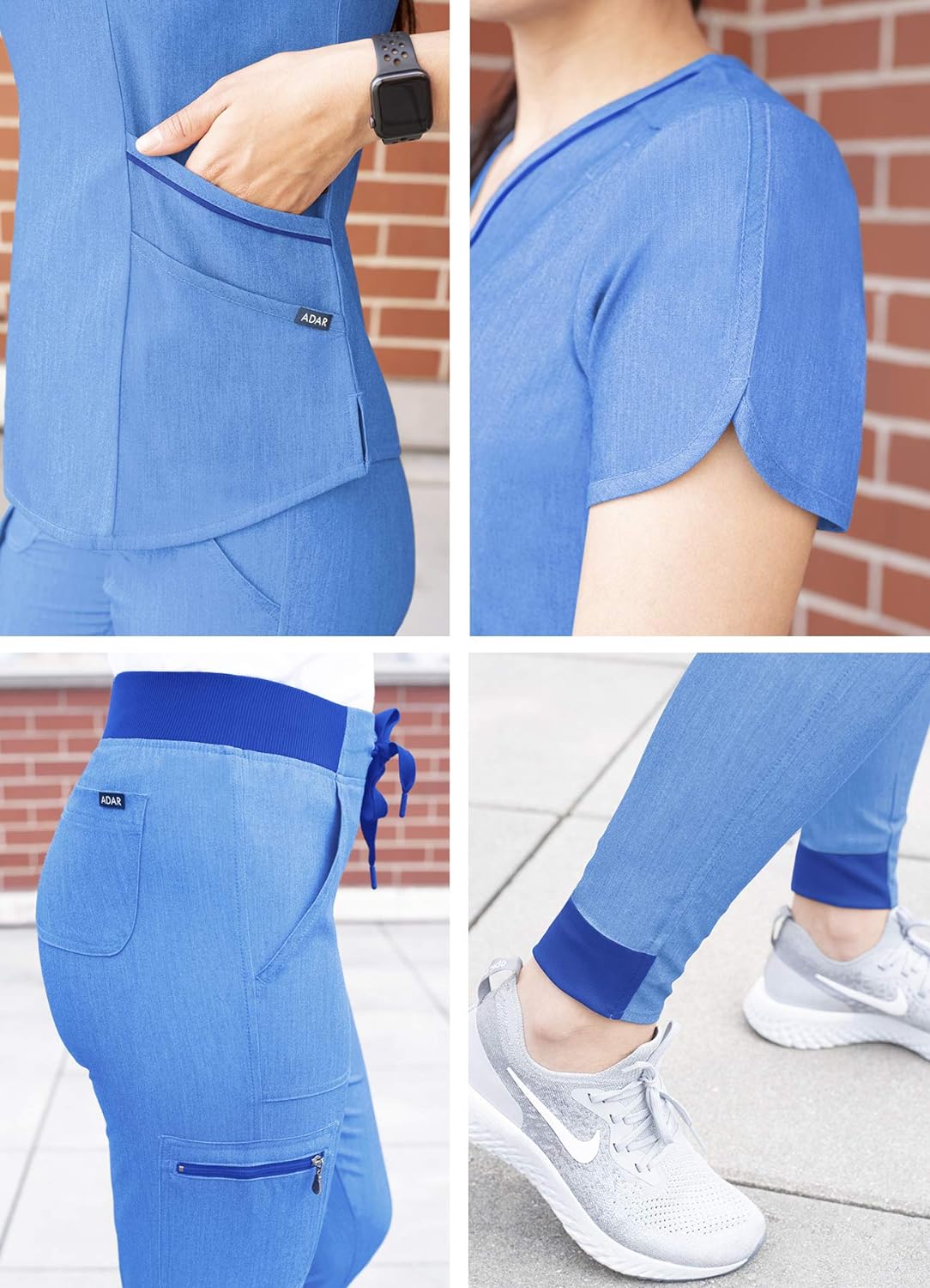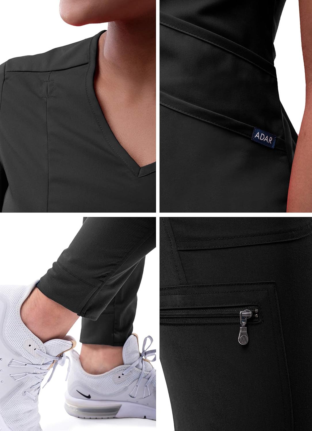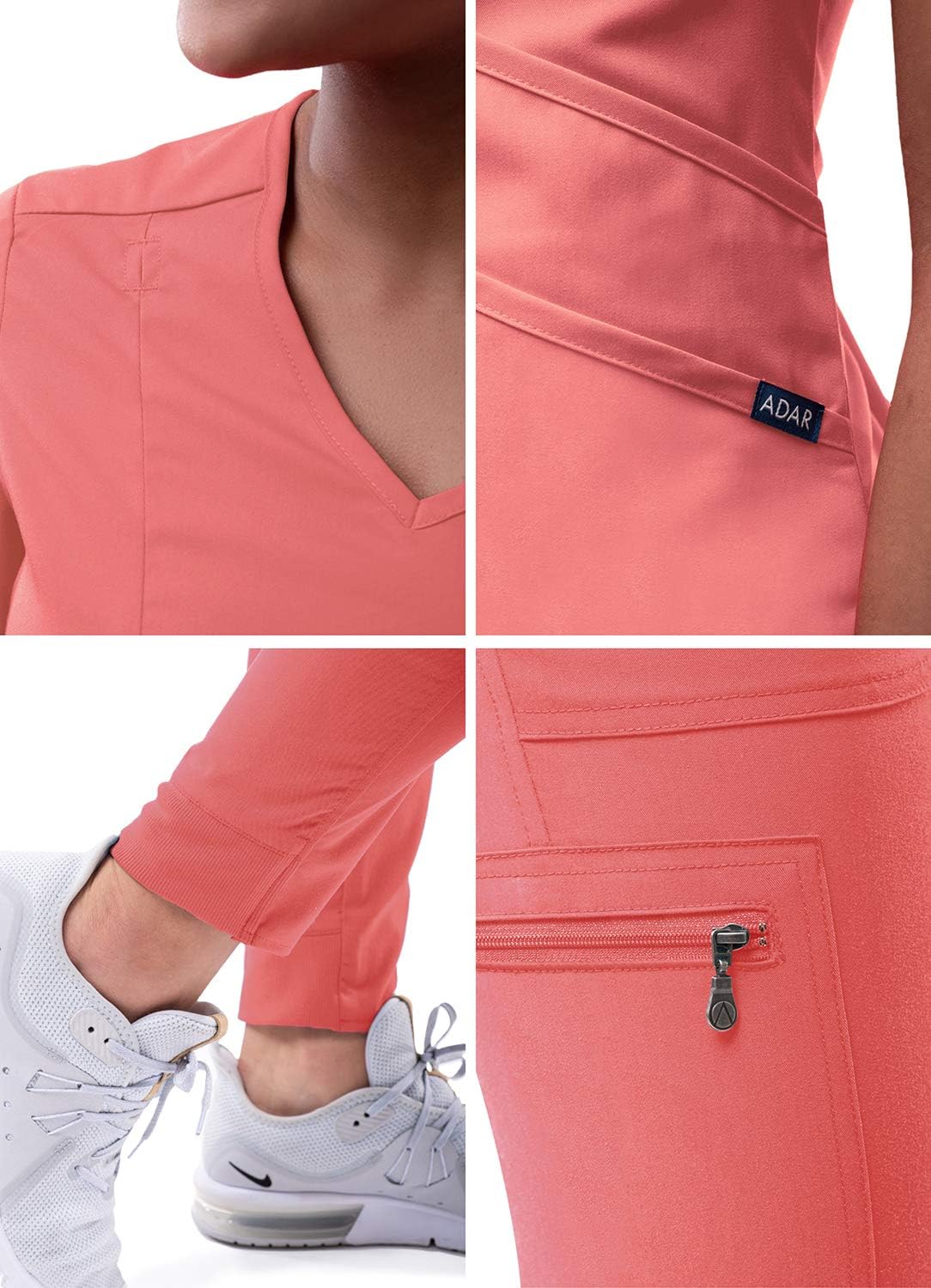 Adar Pro Modern Athletic Scrub Set for Women - Modern V-Neck Scrub Top & Yoga Jogger Scrub Pants