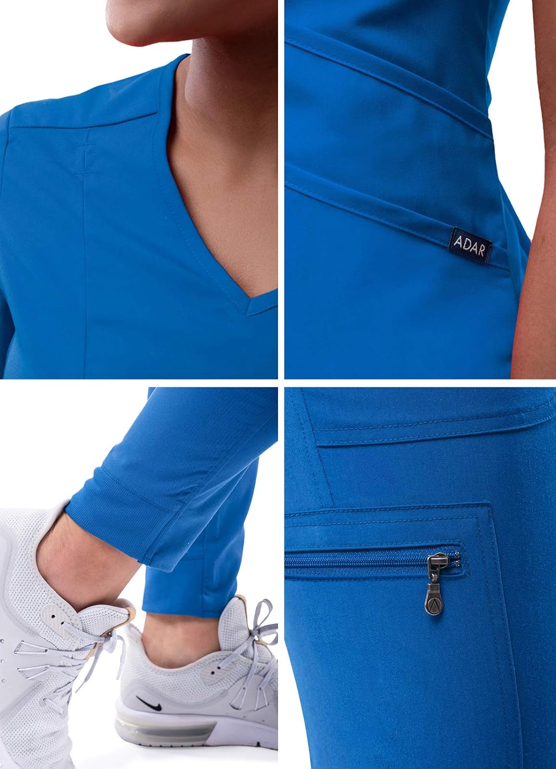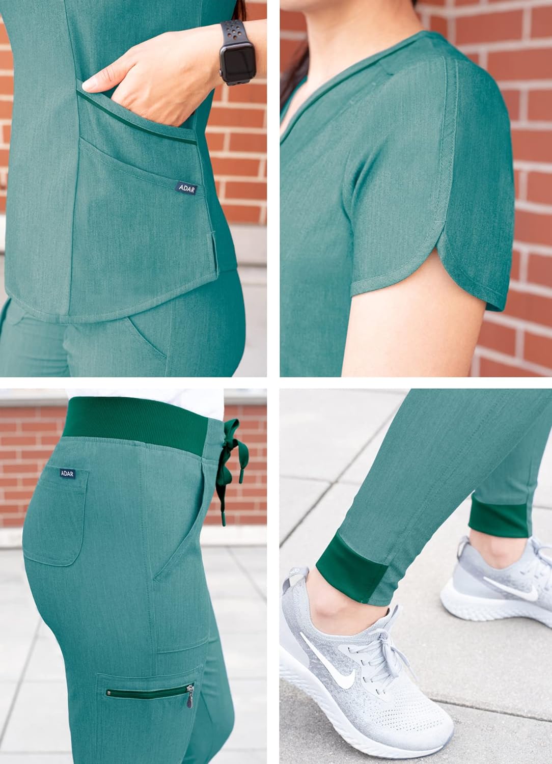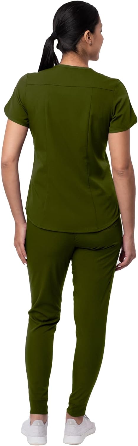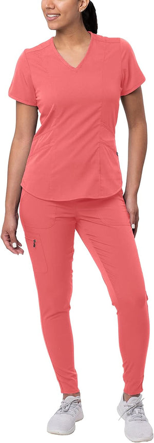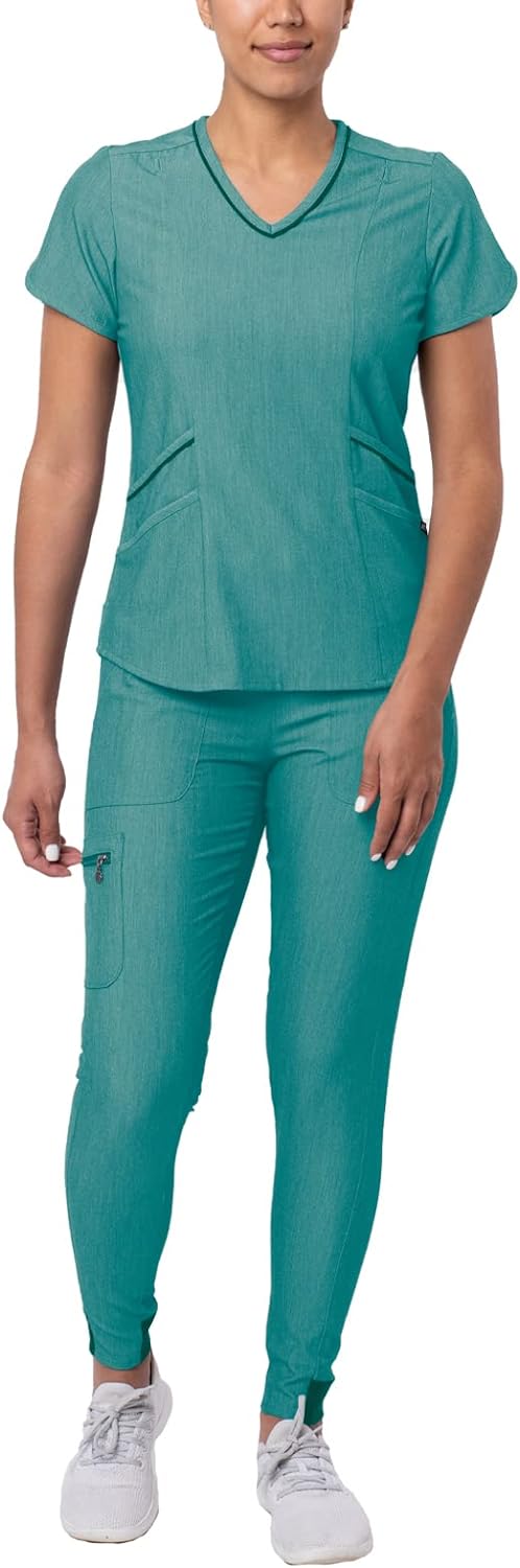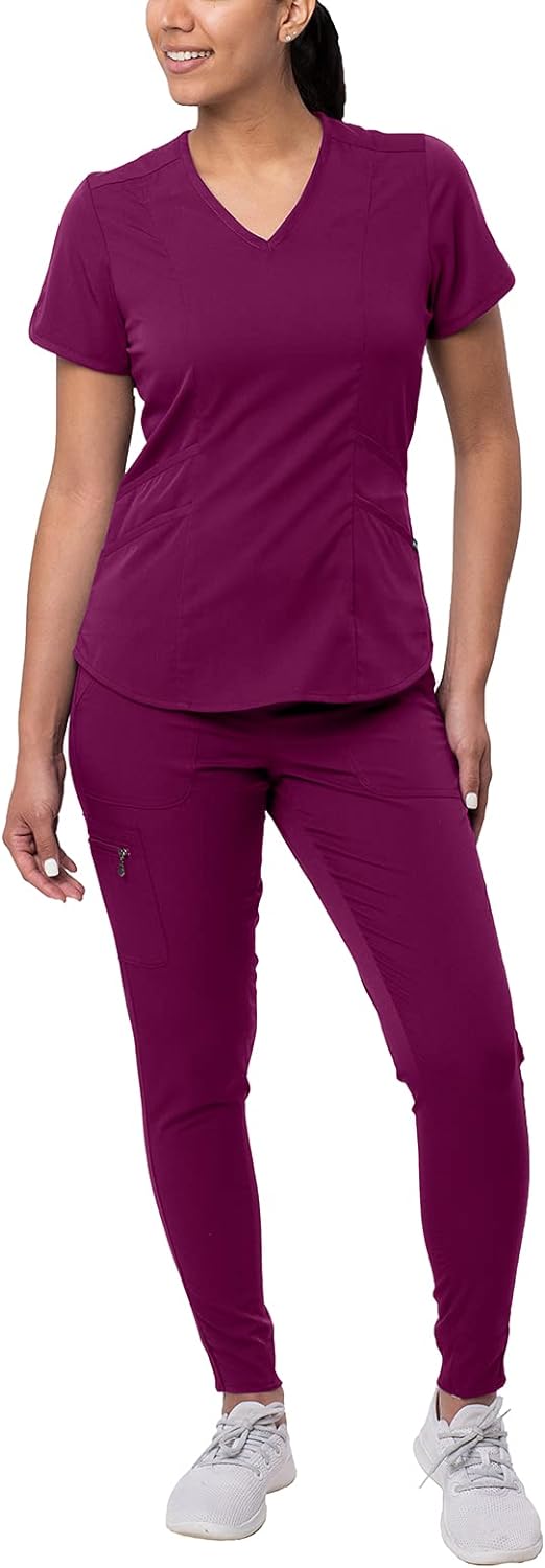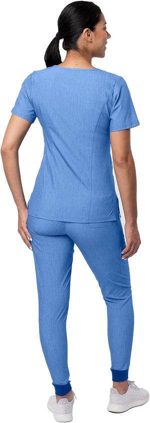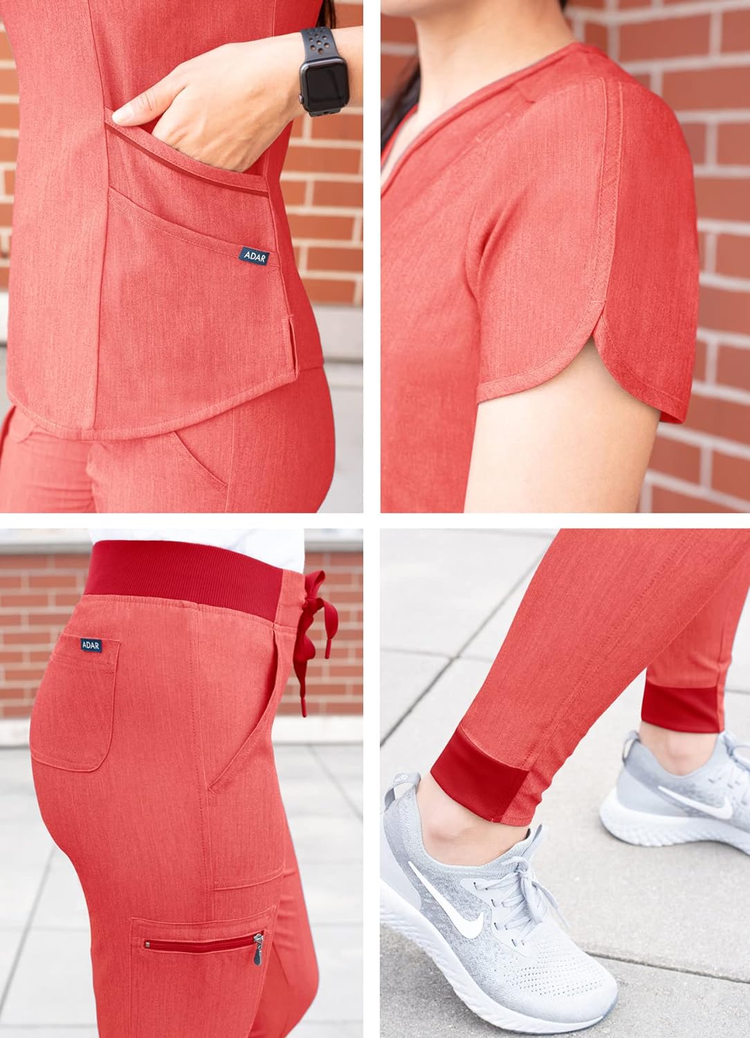 Adar Pro Modern Athletic Scrub Set for Women - Modern V-Neck Scrub Top & Yoga Jogger Scrub Pants