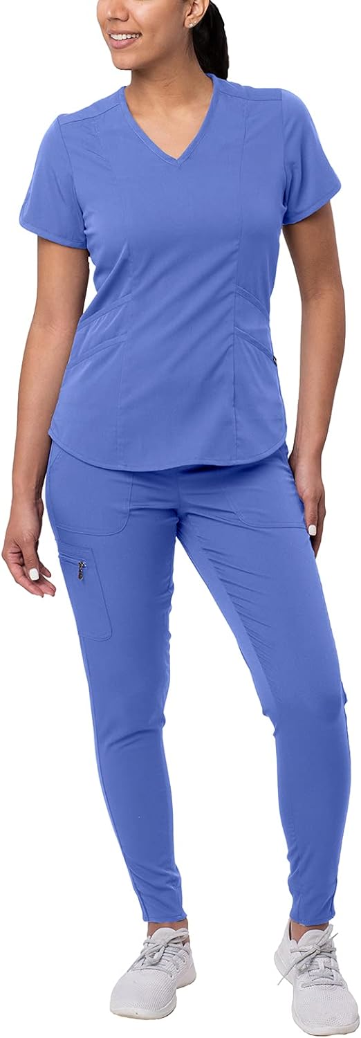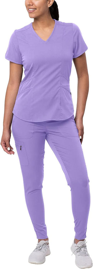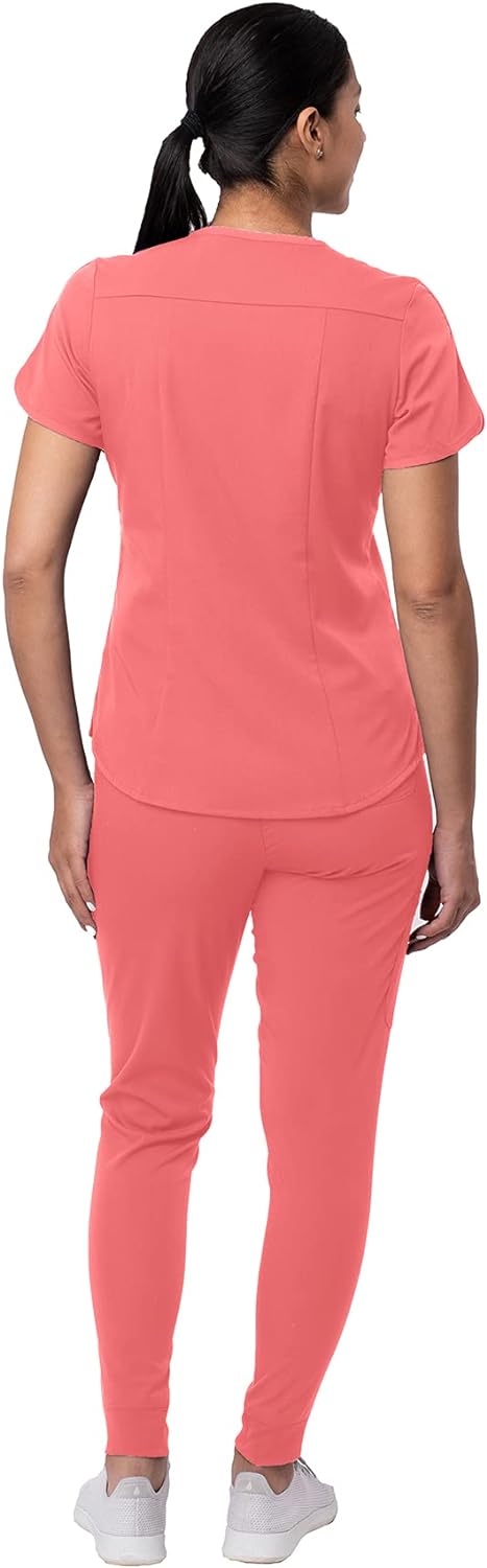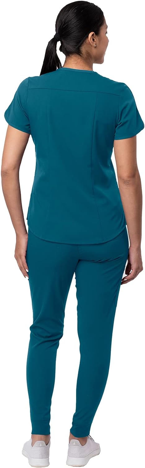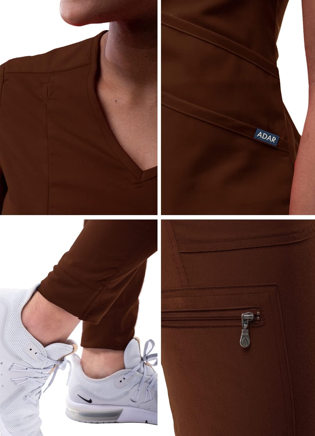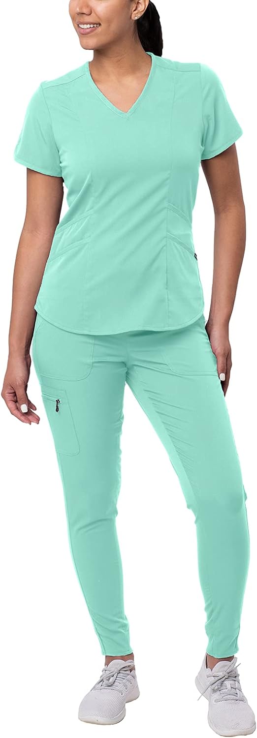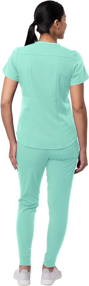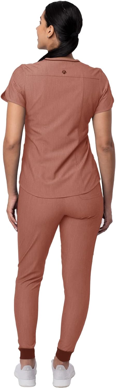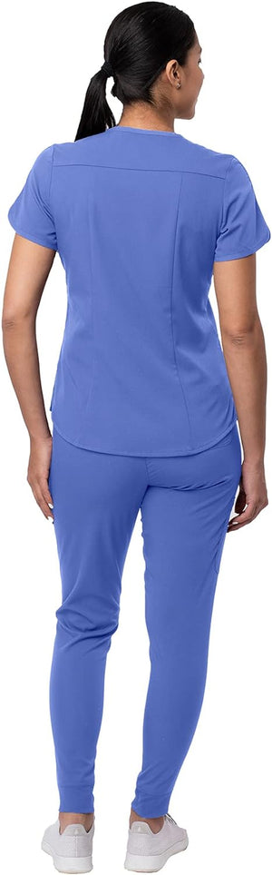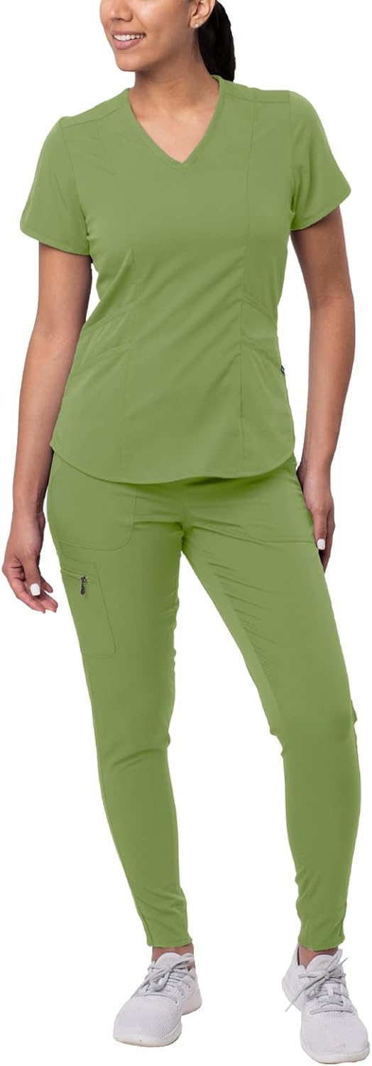 Adar Pro Modern Athletic Scrub Set for Women - Modern V-Neck Scrub Top & Yoga Jogger Scrub Pants