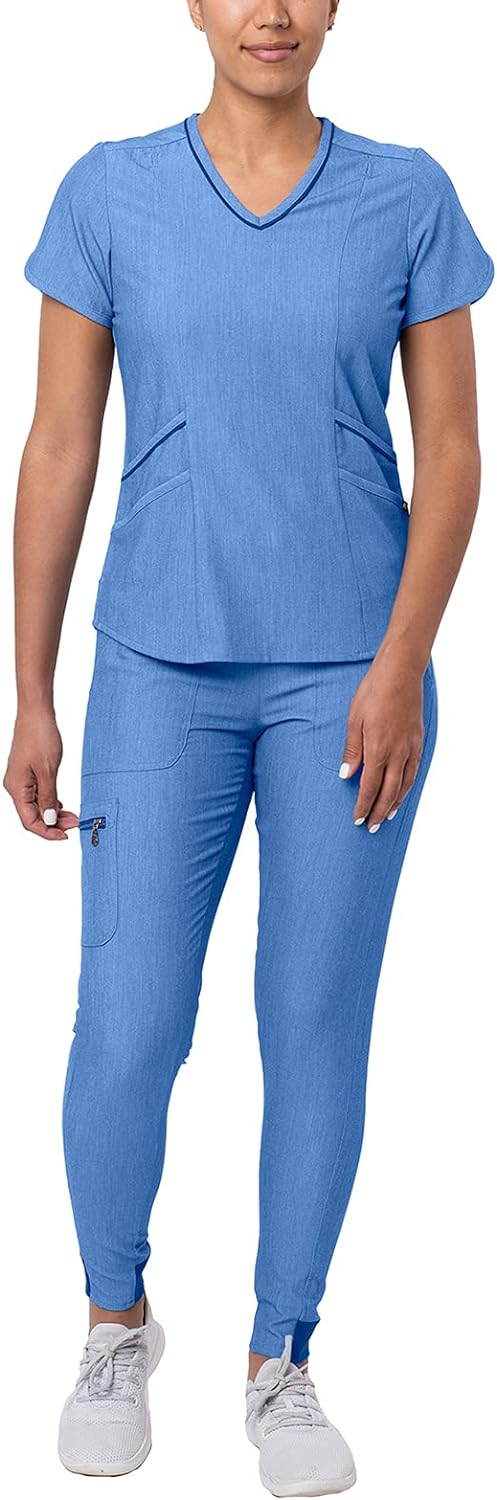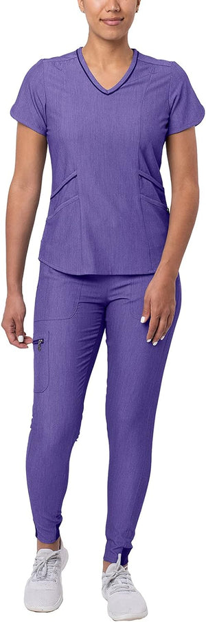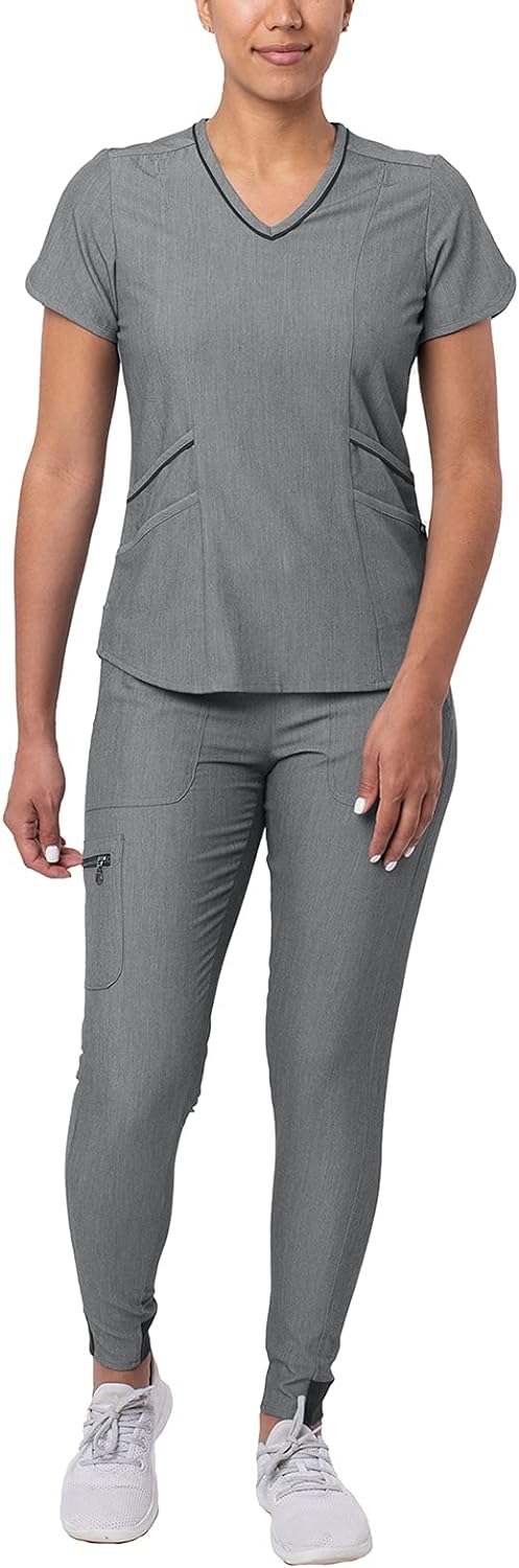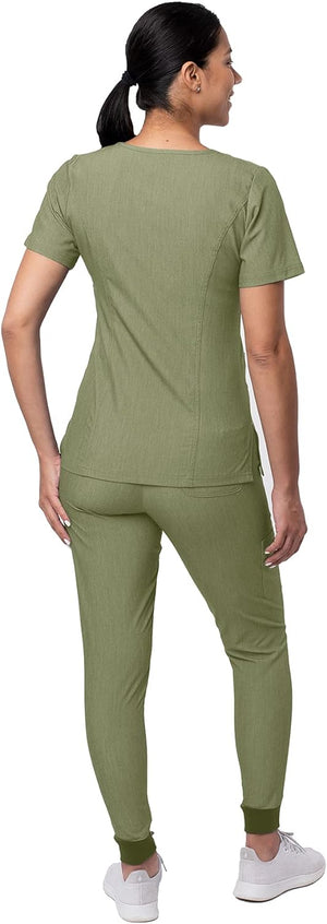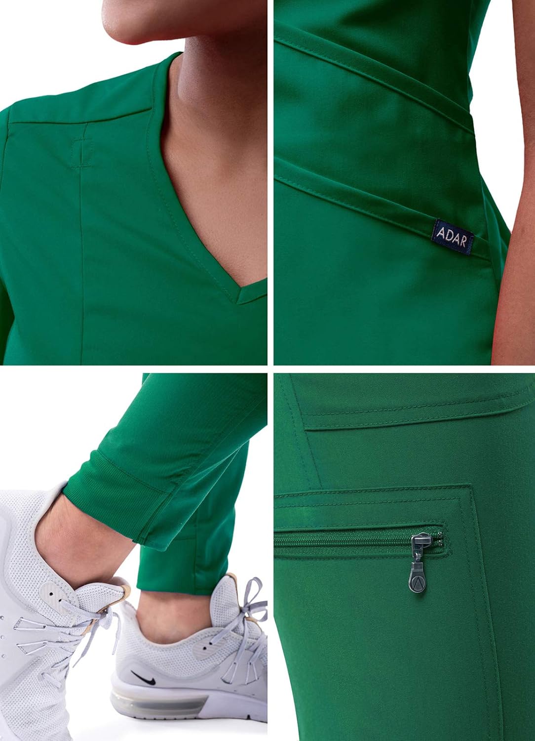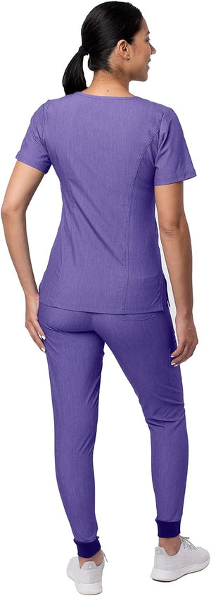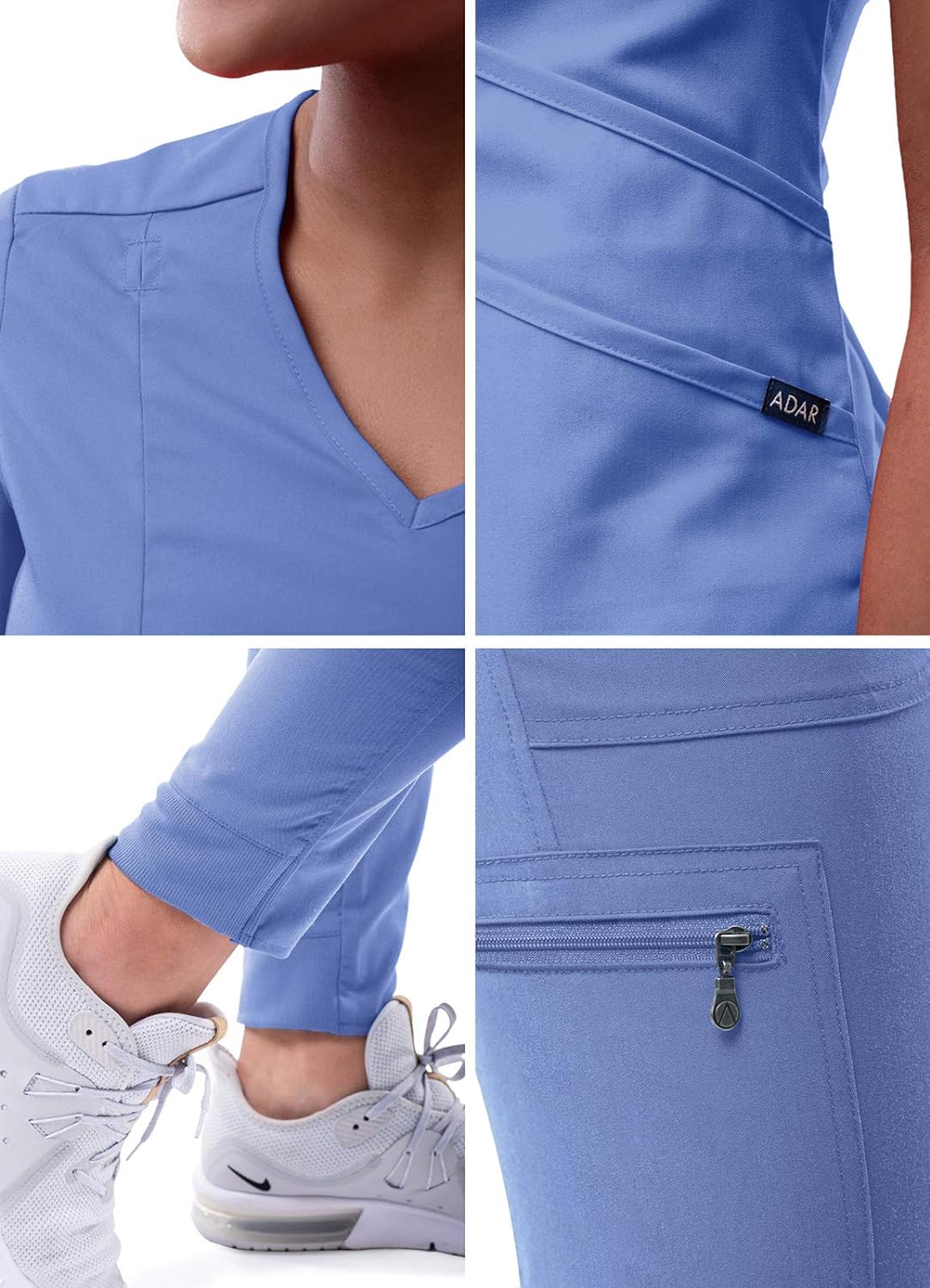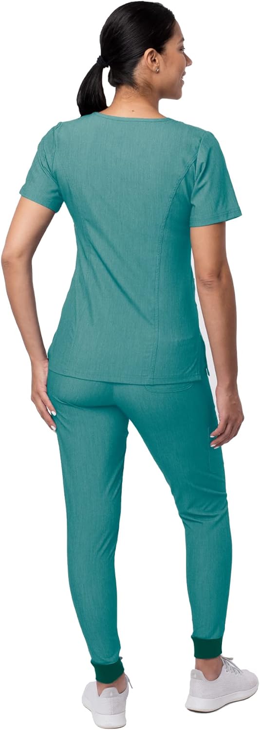 Adar Pro Modern Athletic Scrub Set for Women - Modern V-Neck Scrub Top & Yoga Jogger Scrub Pants