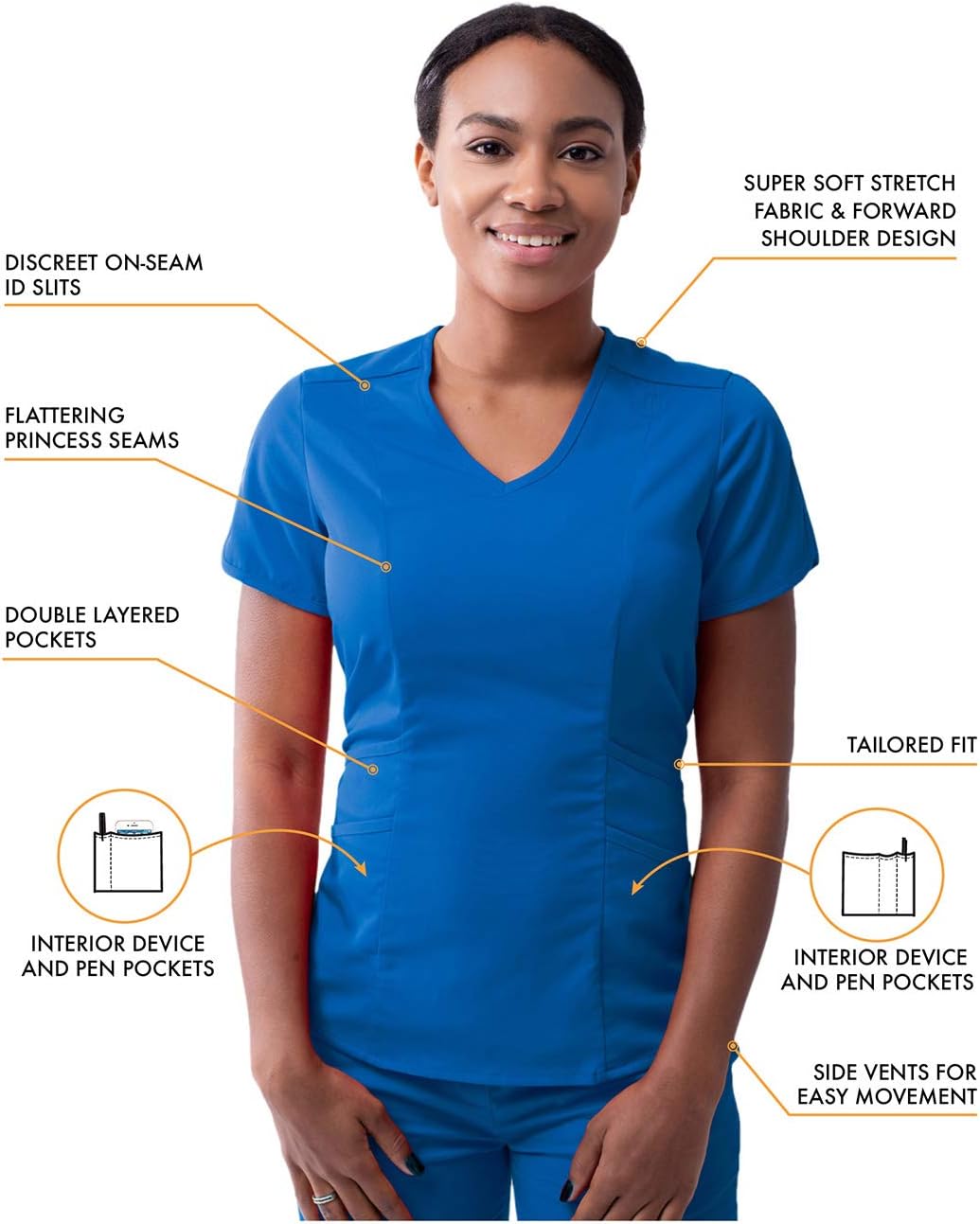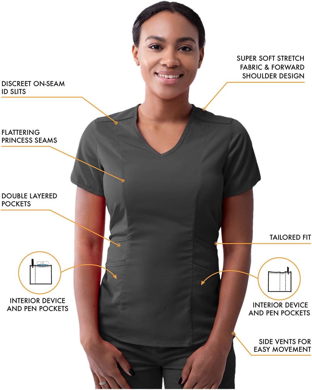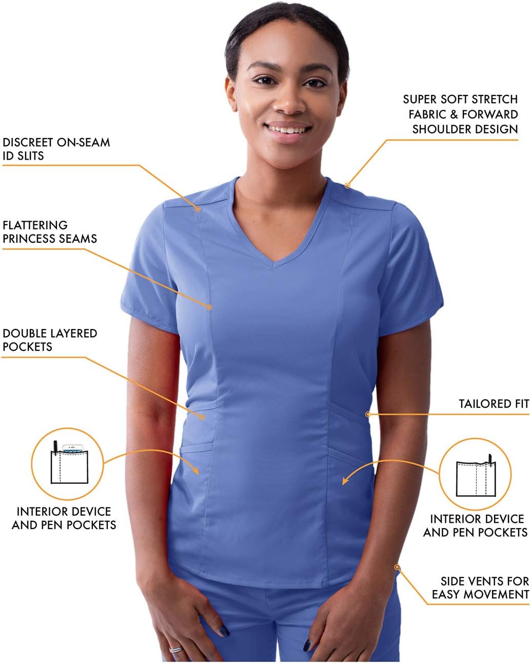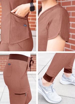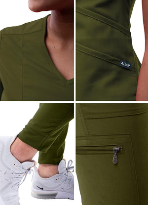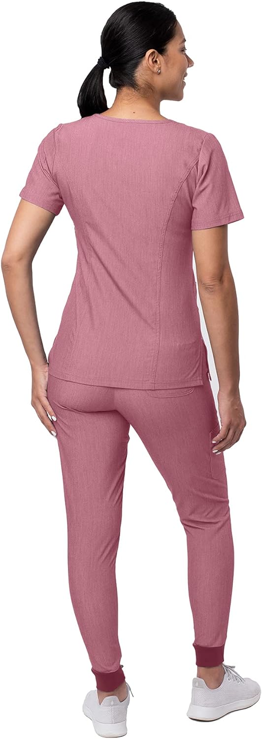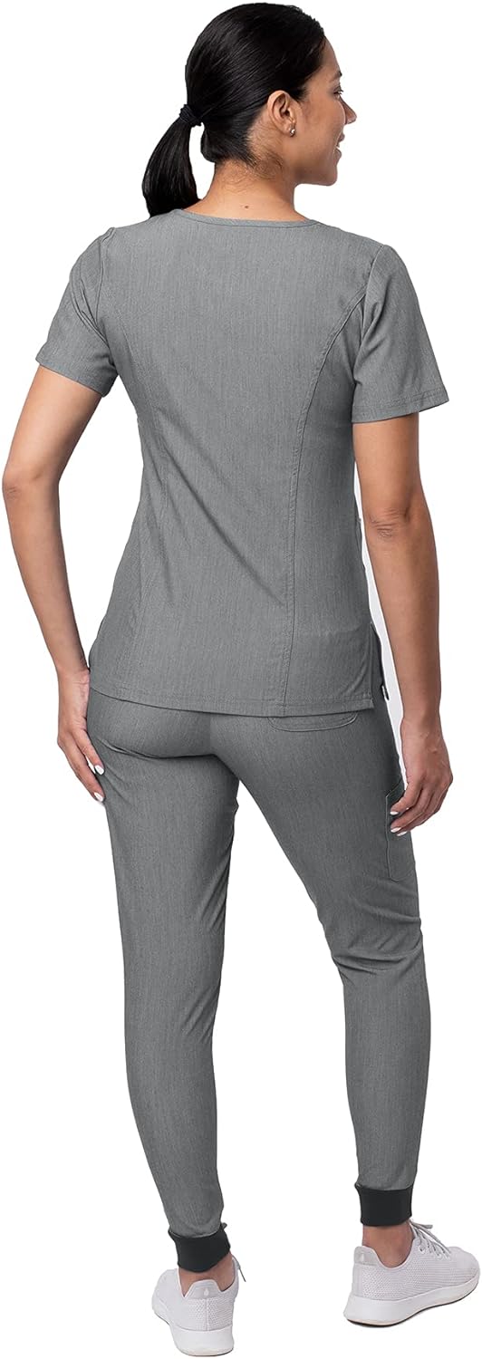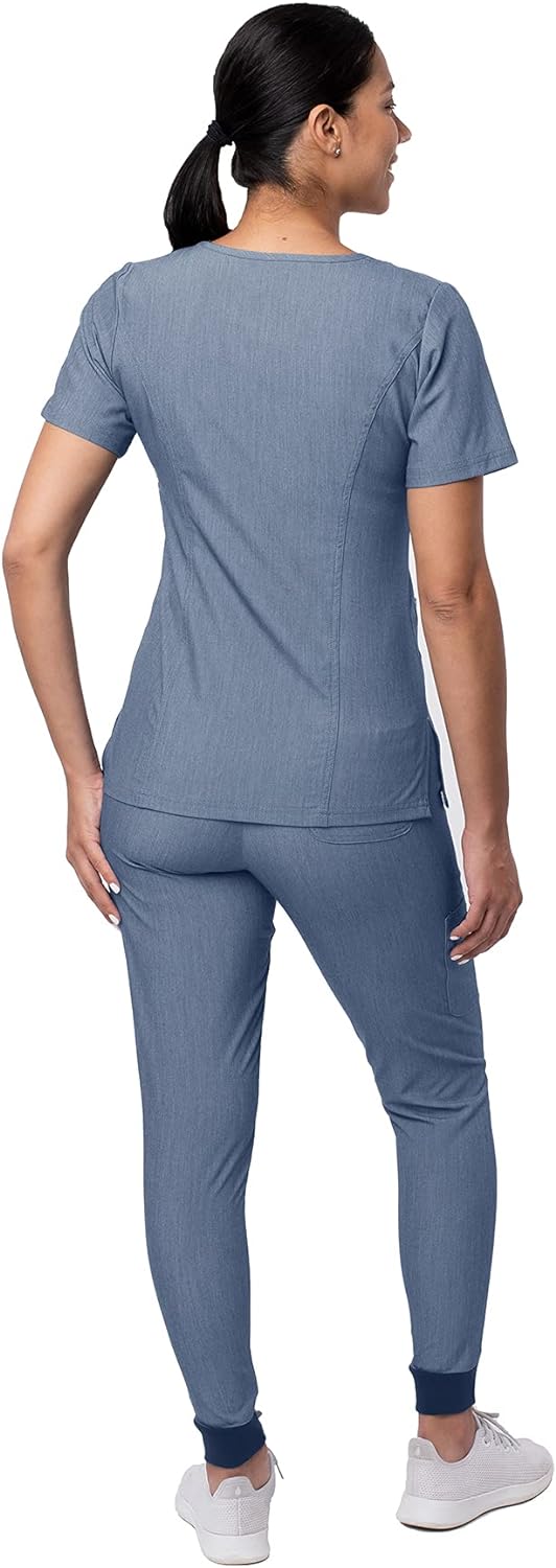 Adar Pro Modern Athletic Scrub Set for Women - Modern V-Neck Scrub Top & Yoga Jogger Scrub Pants
