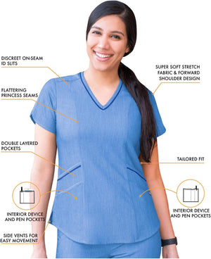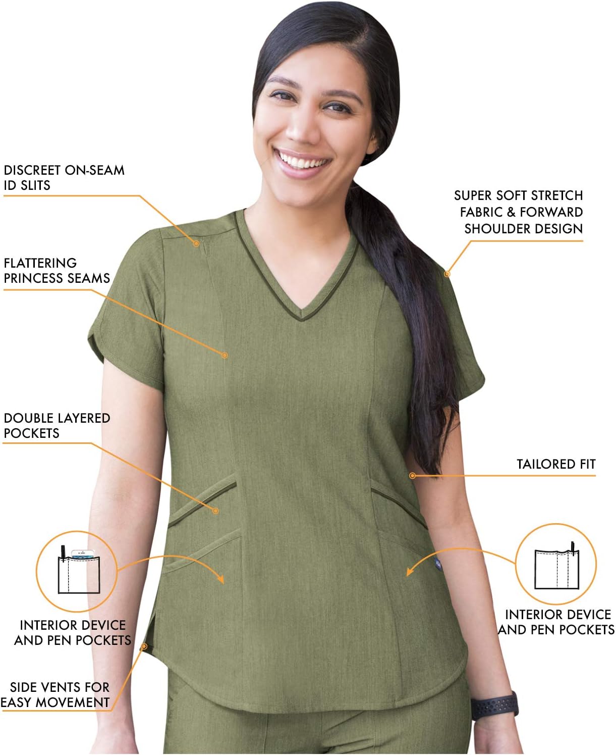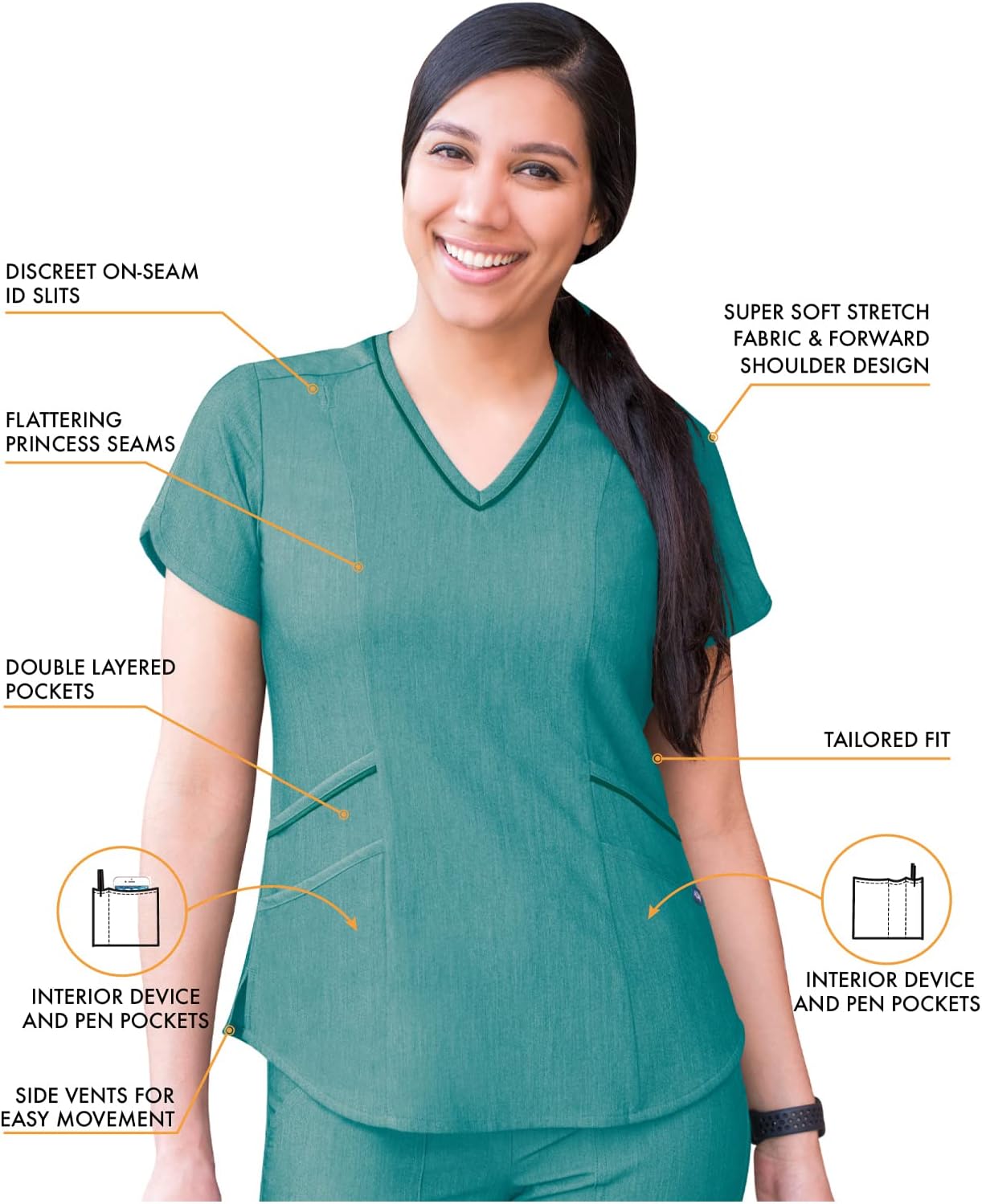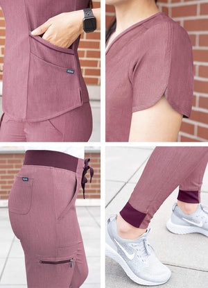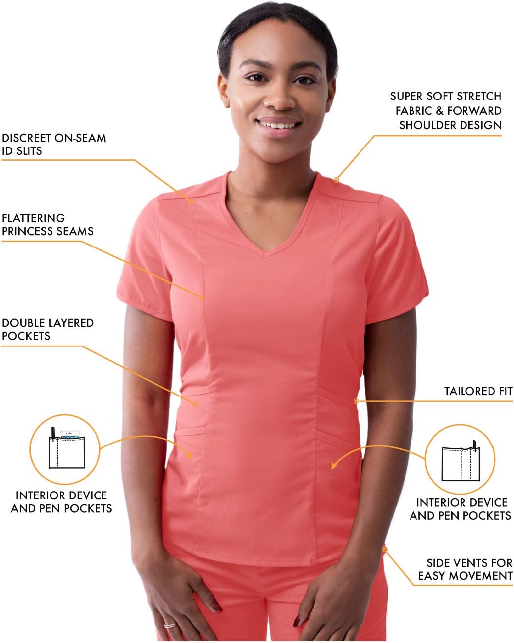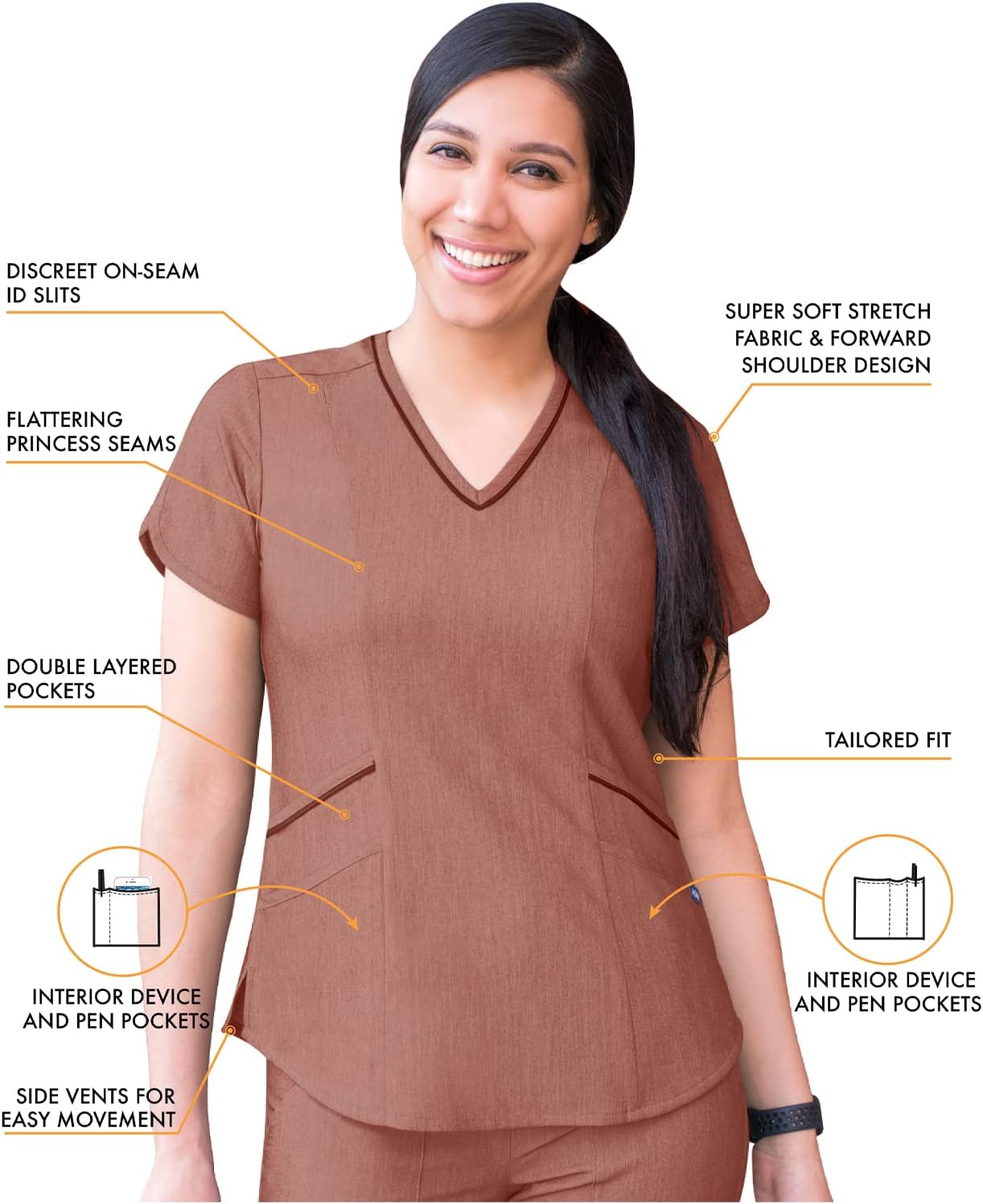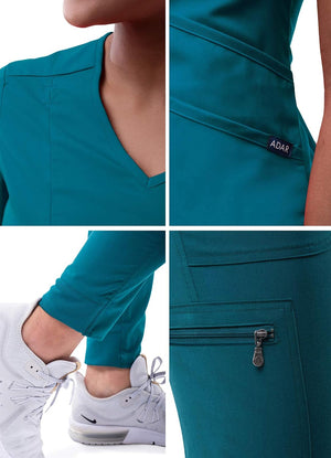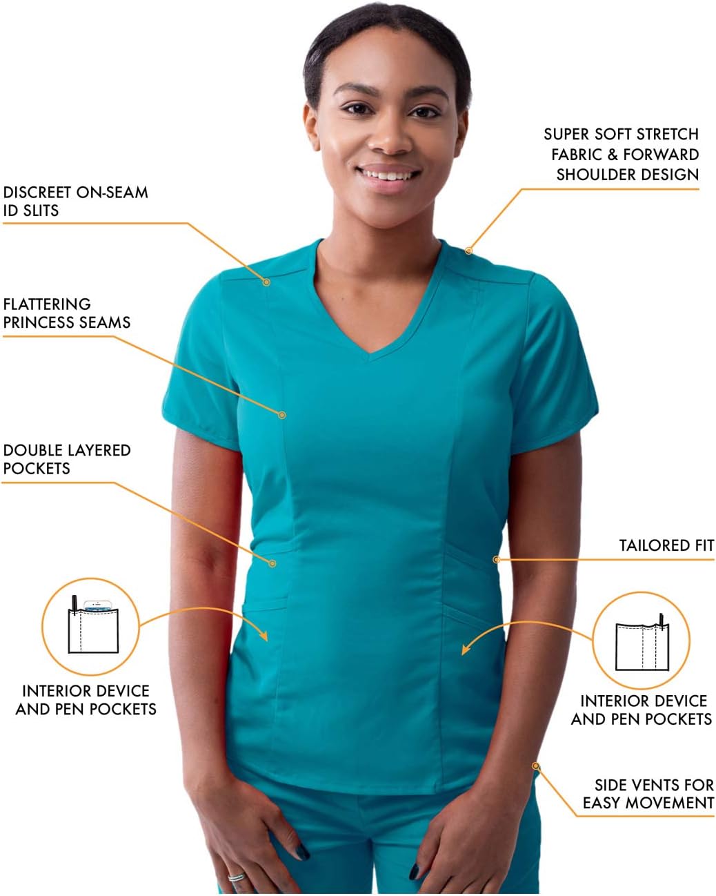 Adar Pro Modern Athletic Scrub Set for Women - Modern V-Neck Scrub Top & Yoga Jogger Scrub Pants