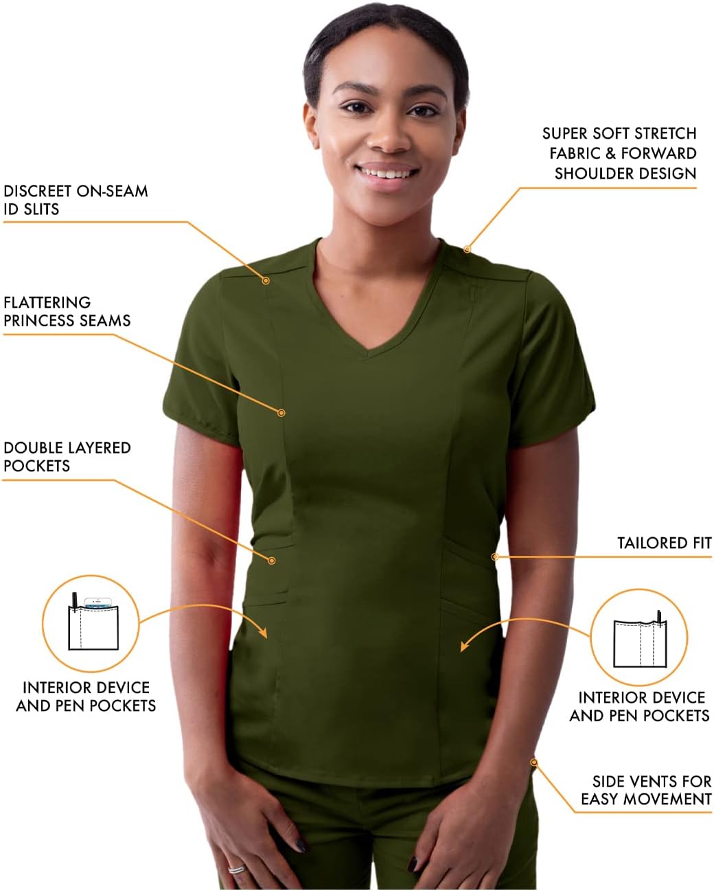 Adar Pro Scrubs for Women - Modern V-Neck Scrub Top