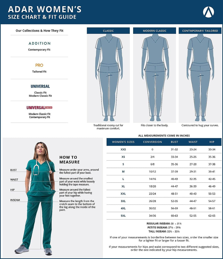 Adar Pro Scrubs for Women - Skinny Leg Yoga Scrub Pants