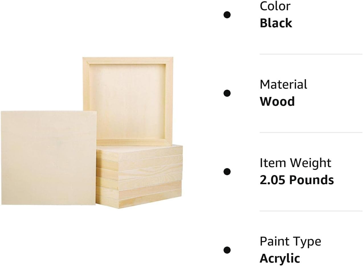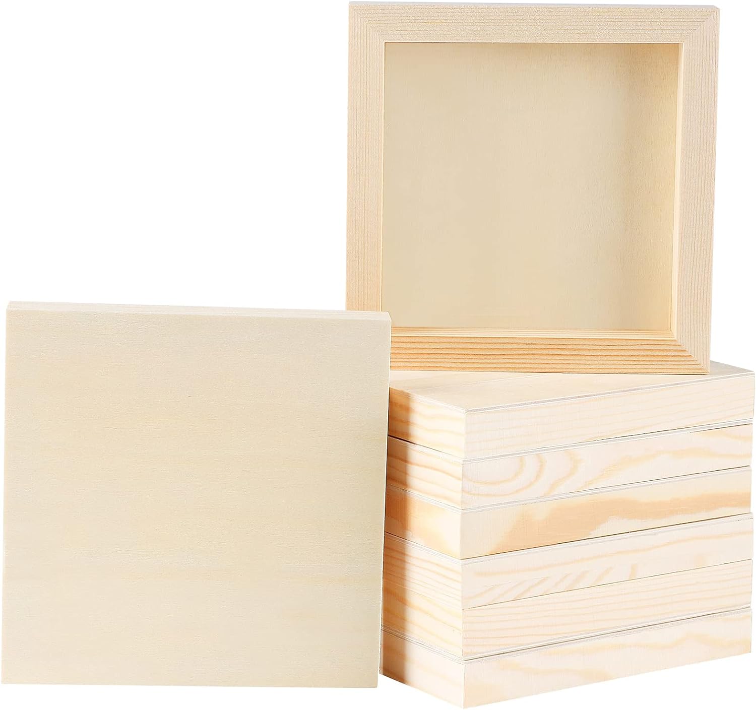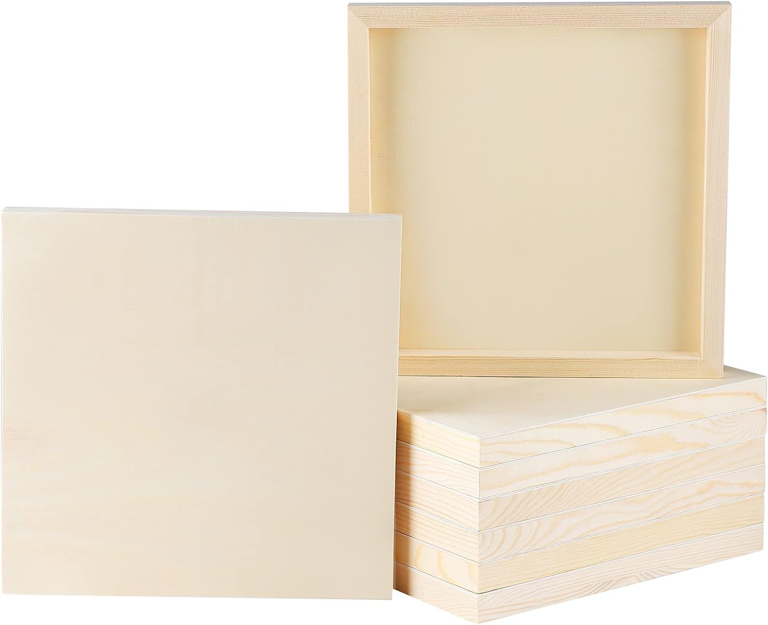 ADXCO 8 Pack Wood Panels 5 x 5 Inch Unfinished Wood Canvas Wooden Panel Boards for Painting, Pouring, Arts Use with Oils, Acrylics