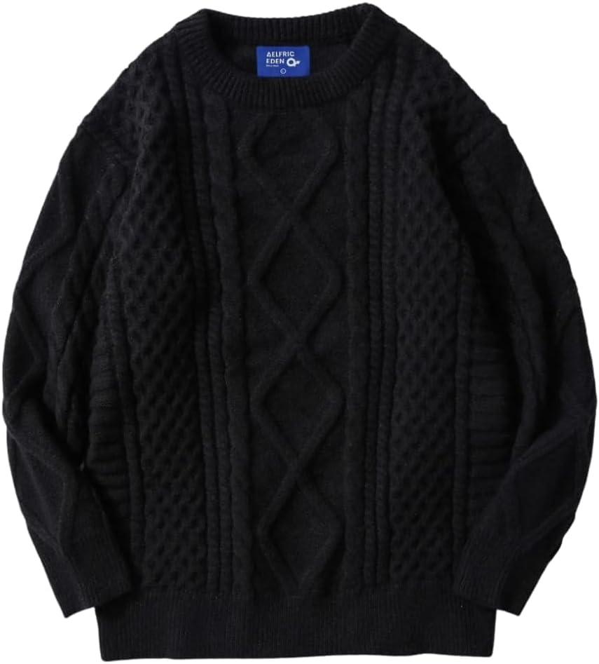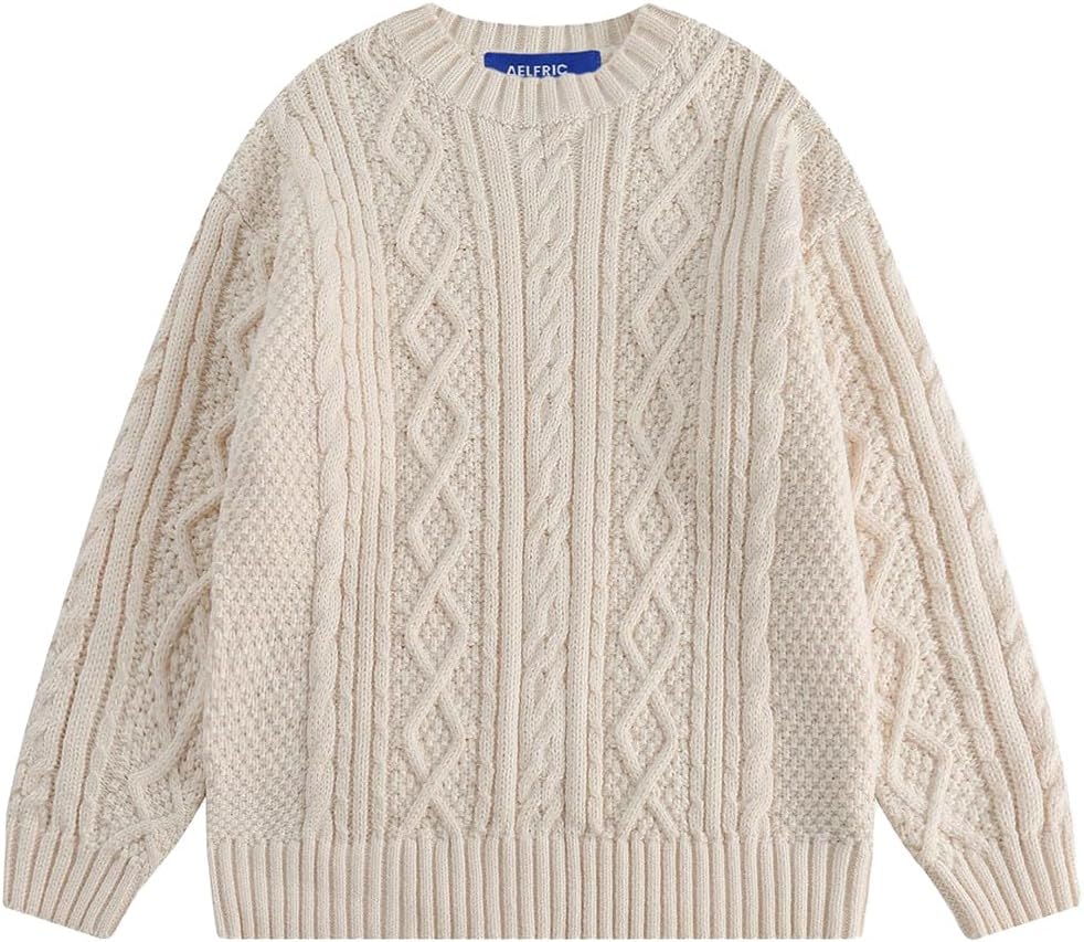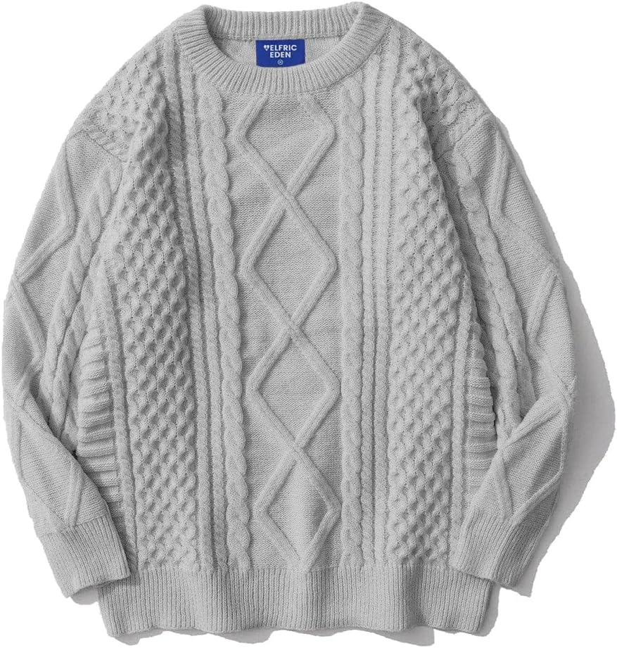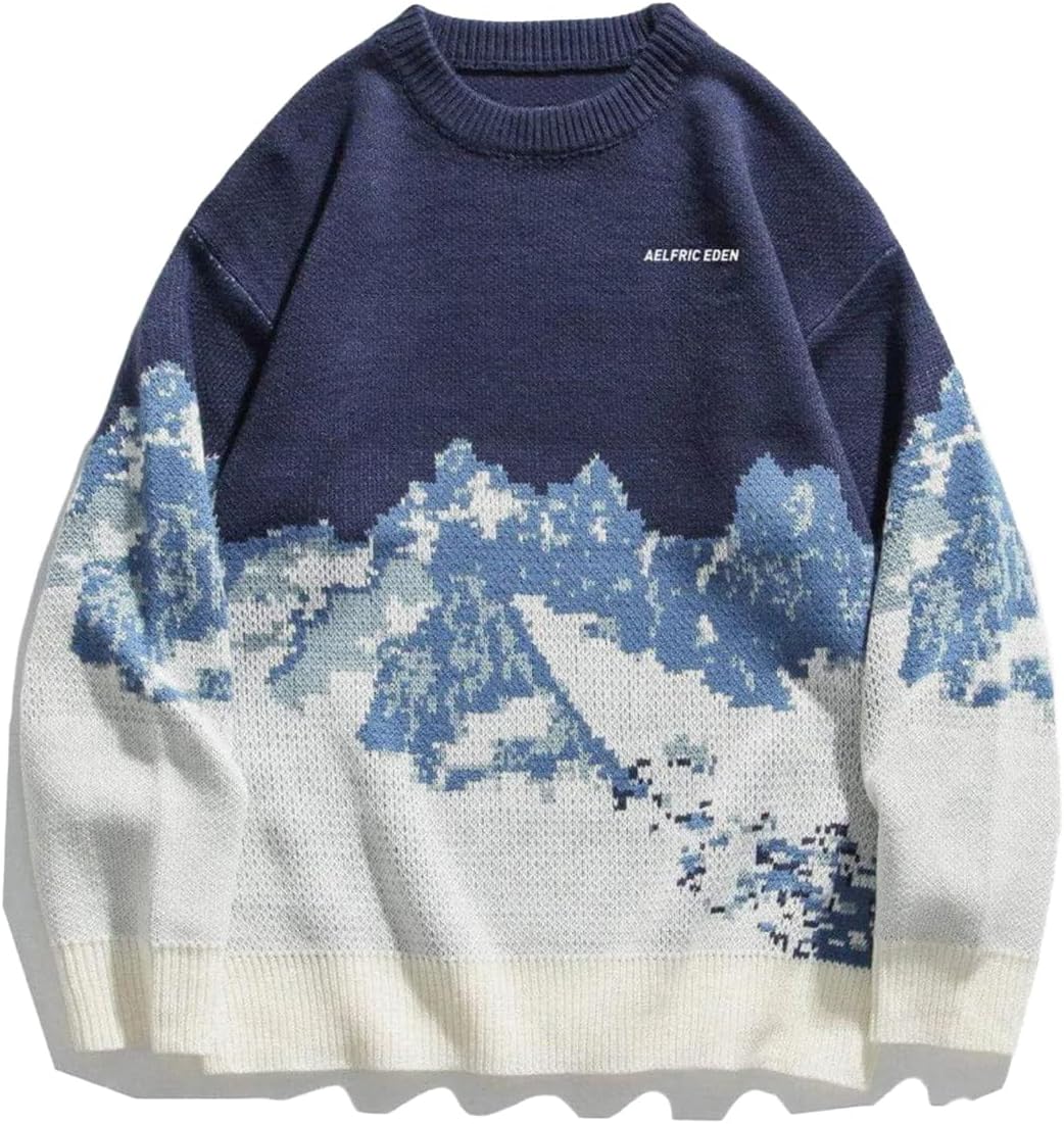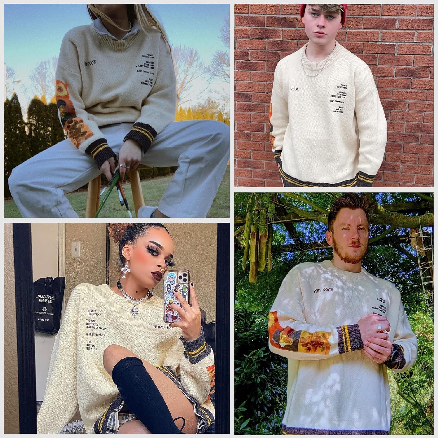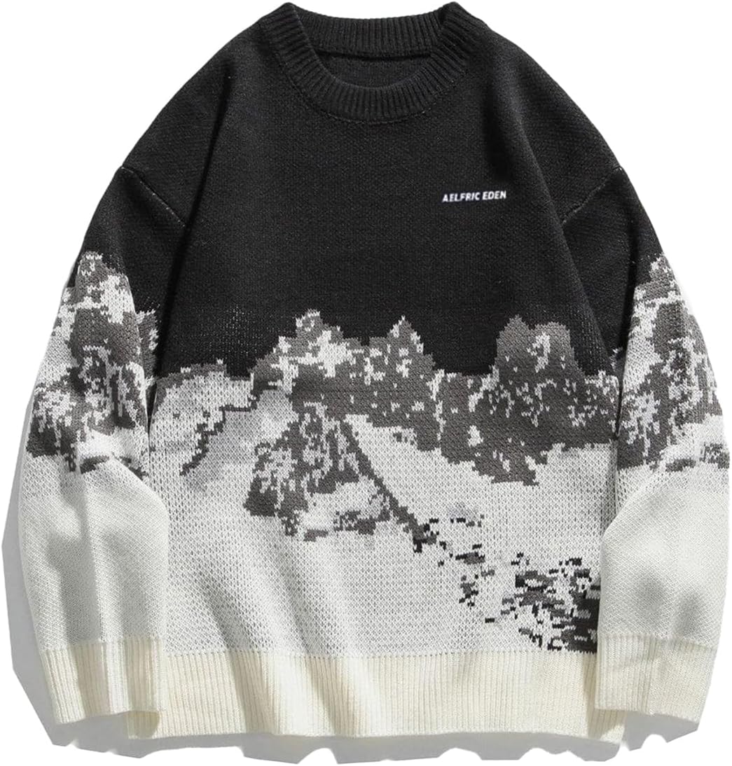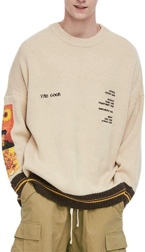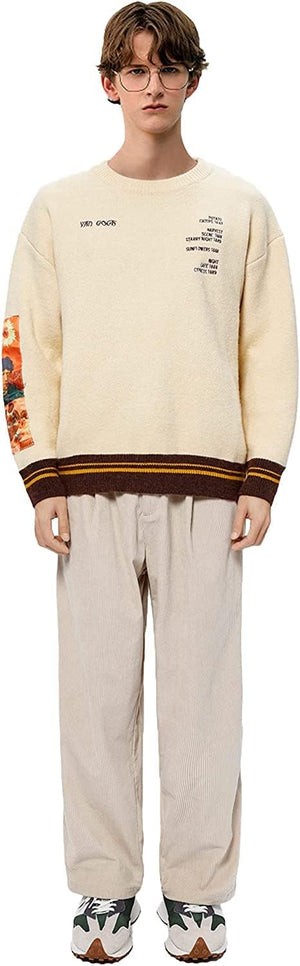 Aelfric Eden Mens Long Sleeve Van Gogh Printed Cable Knit Sweaters Casual Oversized Sweater Pullover