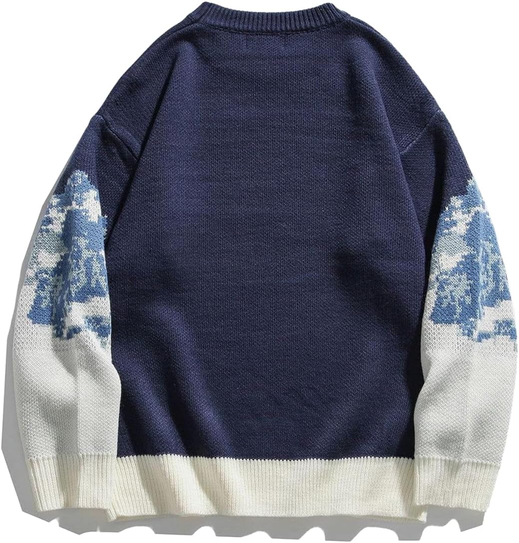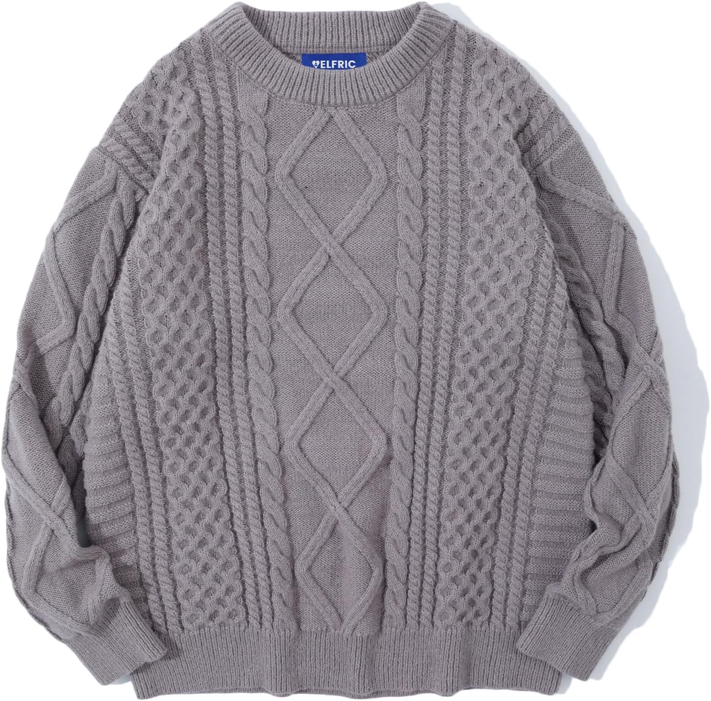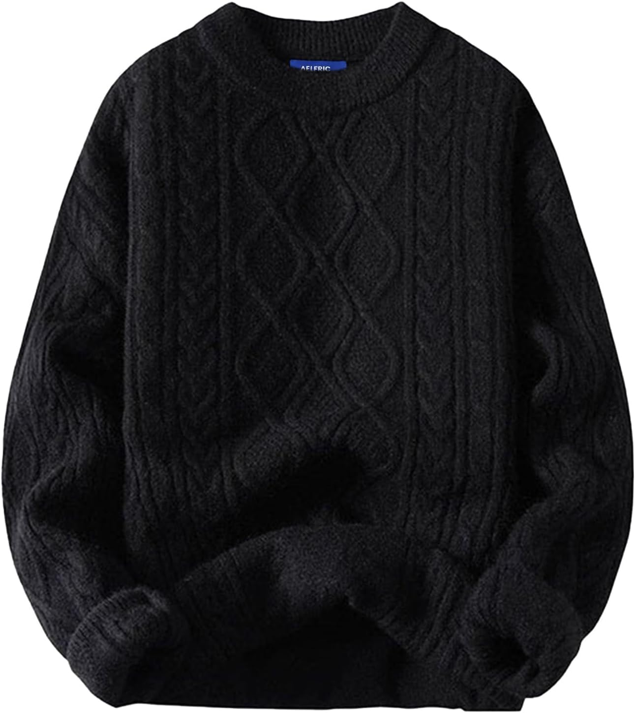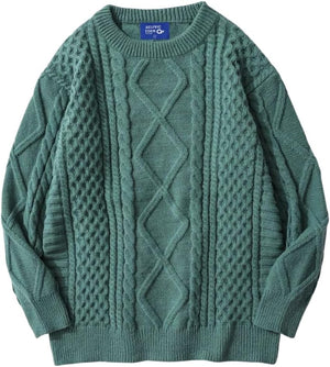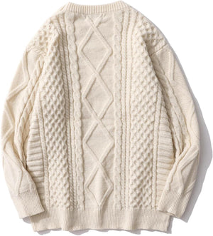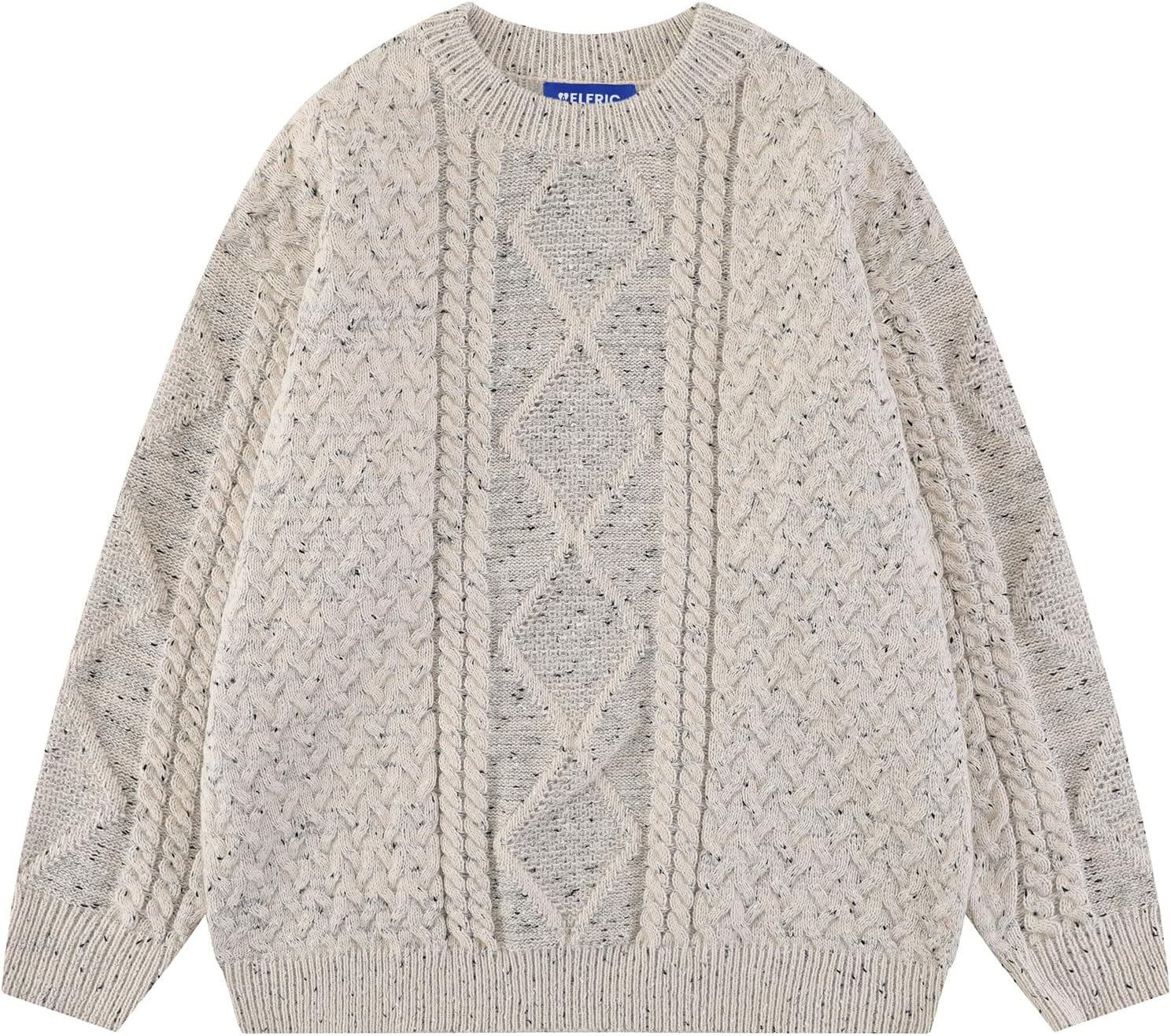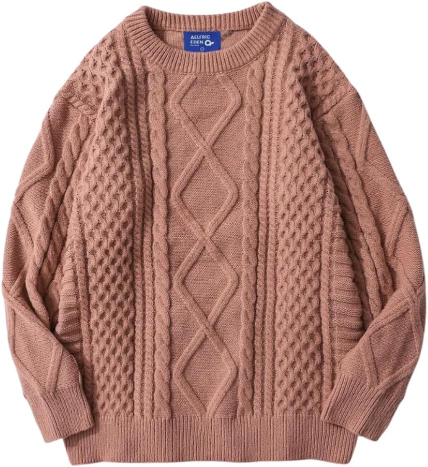 Aelfric Eden Mens Long Sleeve Van Gogh Printed Cable Knit Sweaters Casual Oversized Sweater Pullover